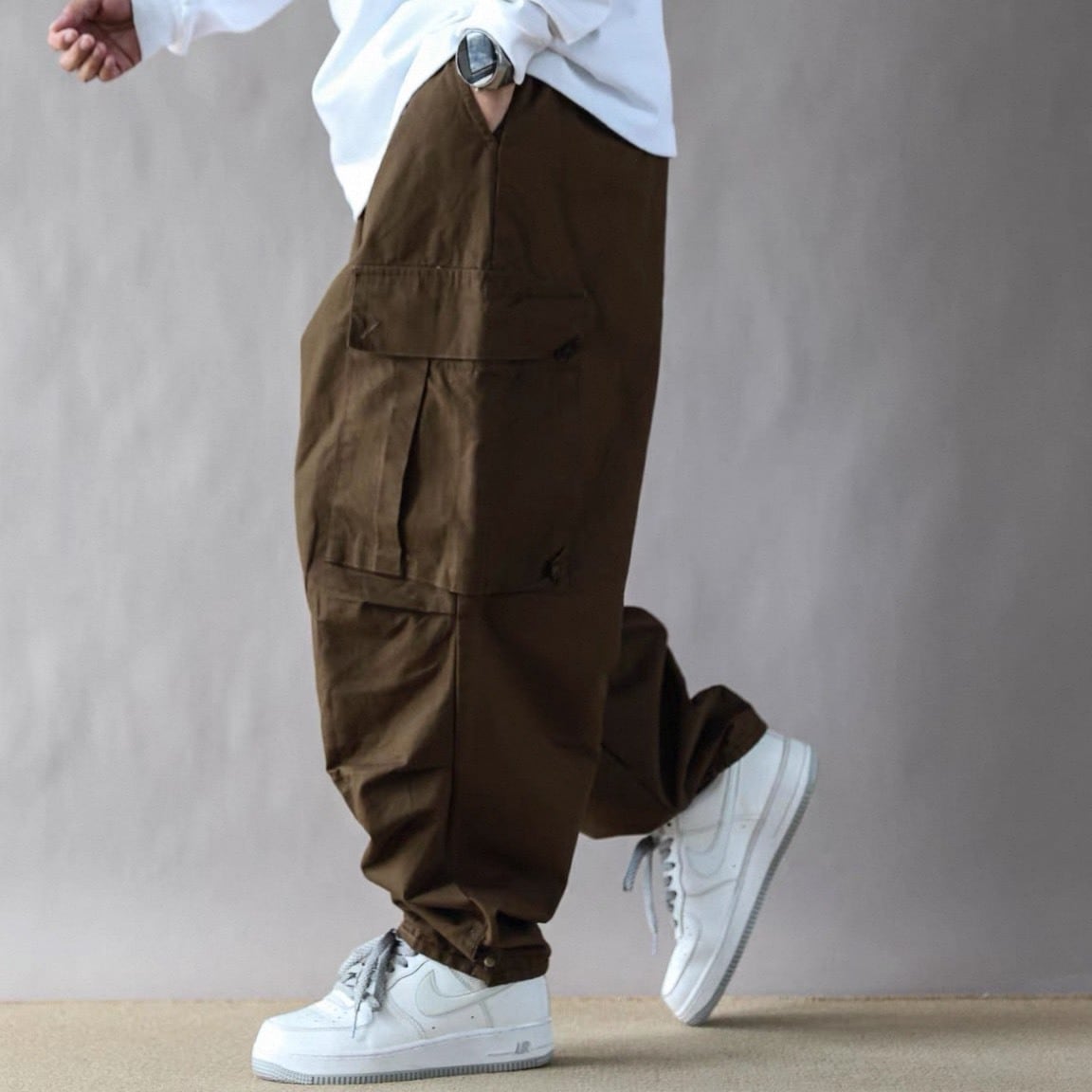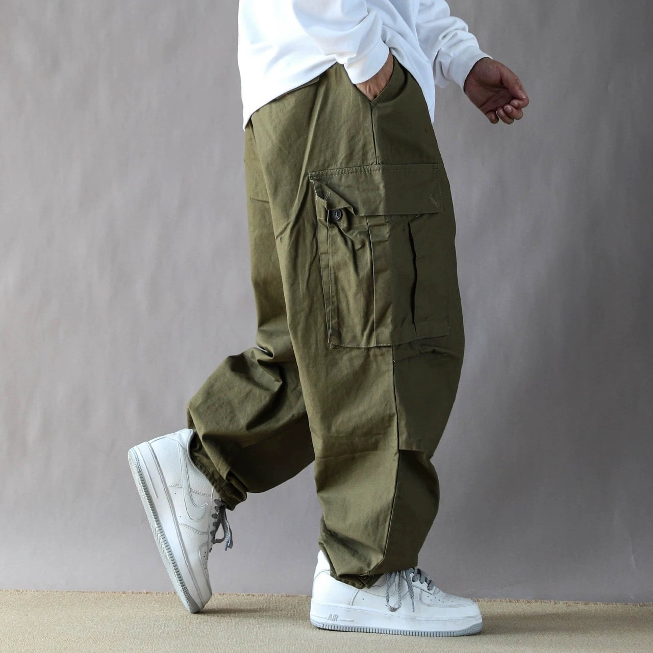 立体感のあるカーゴポケットがアクセントとなり、シンプルなトップスと合わせるだけでストリート感のあるスタイリングが完成します。