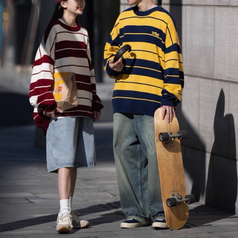 存在感のある太ボーダーが目を惹くオーバーサイズニット。