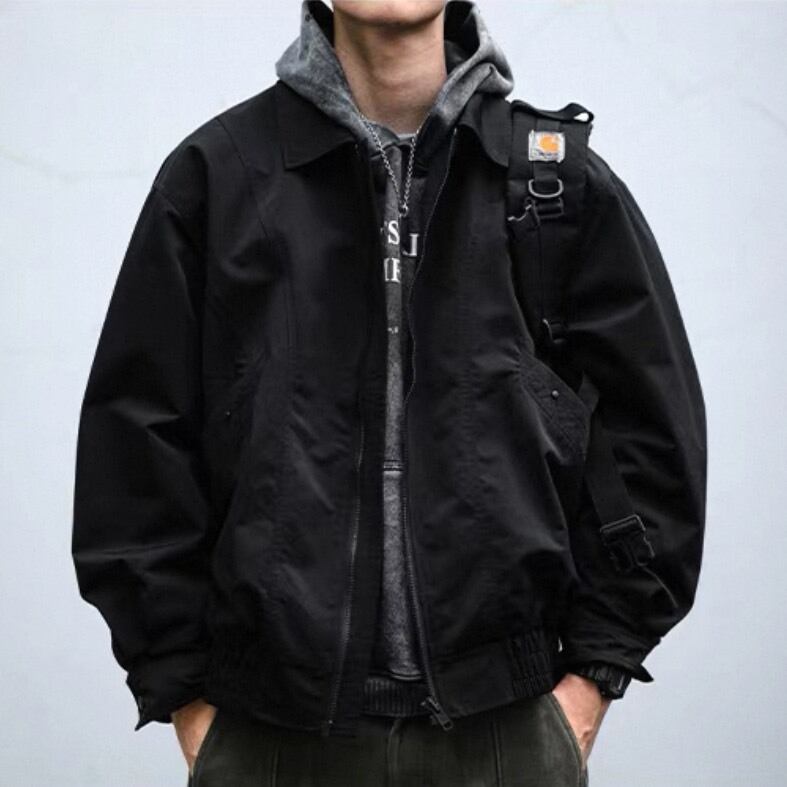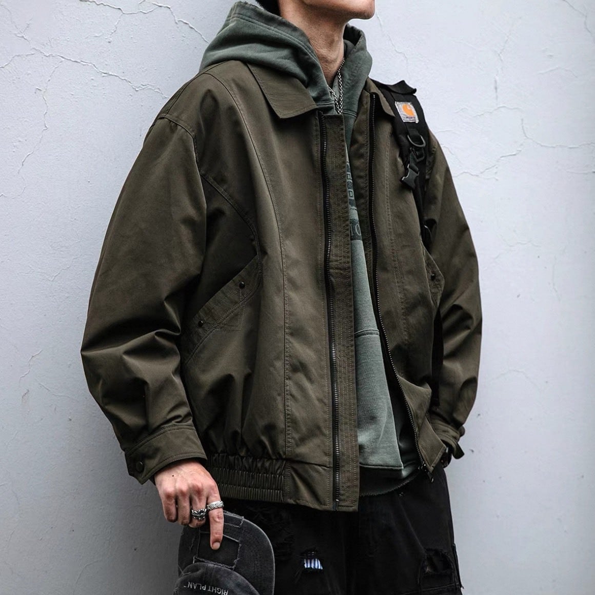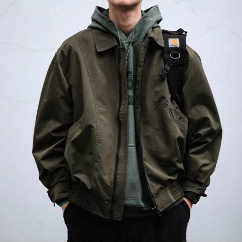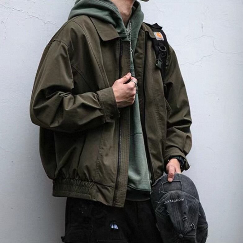 落ち着いたトーンで仕上げたジップアップジャケット。