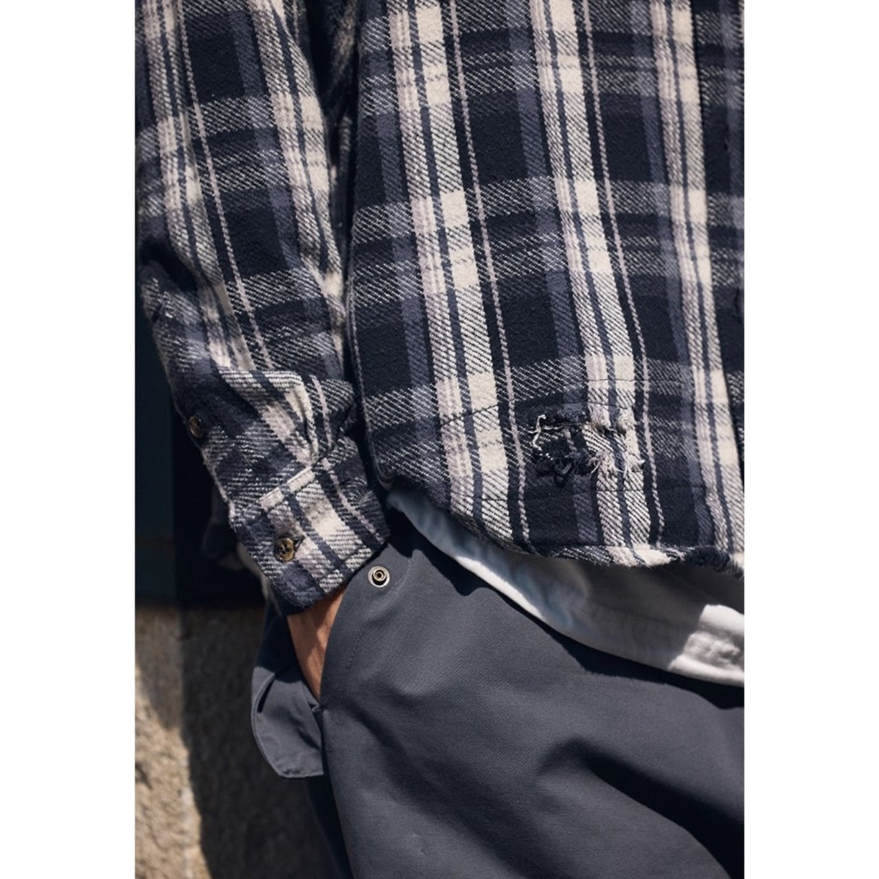 インナーにTシャツやロンTを合わせるだけで簡単にレイヤードスタイルが完成。