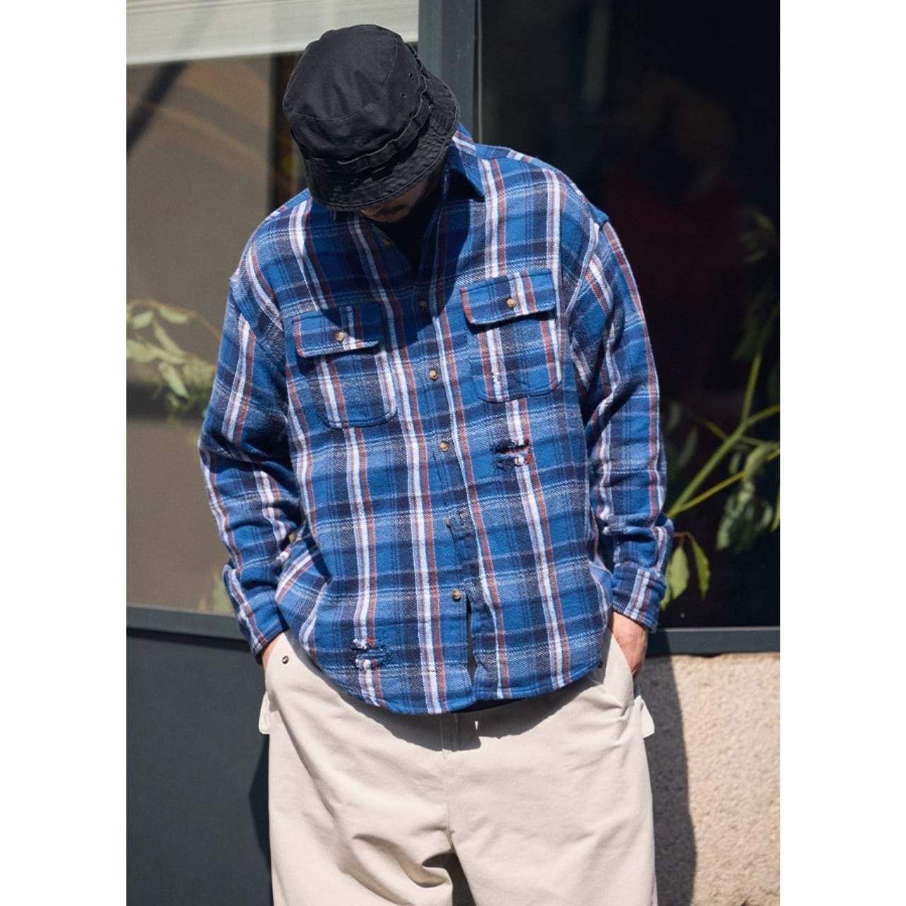 ゆとりあるシルエットで、シャツとしてもライトアウターとしても活躍するチェックシャツ。