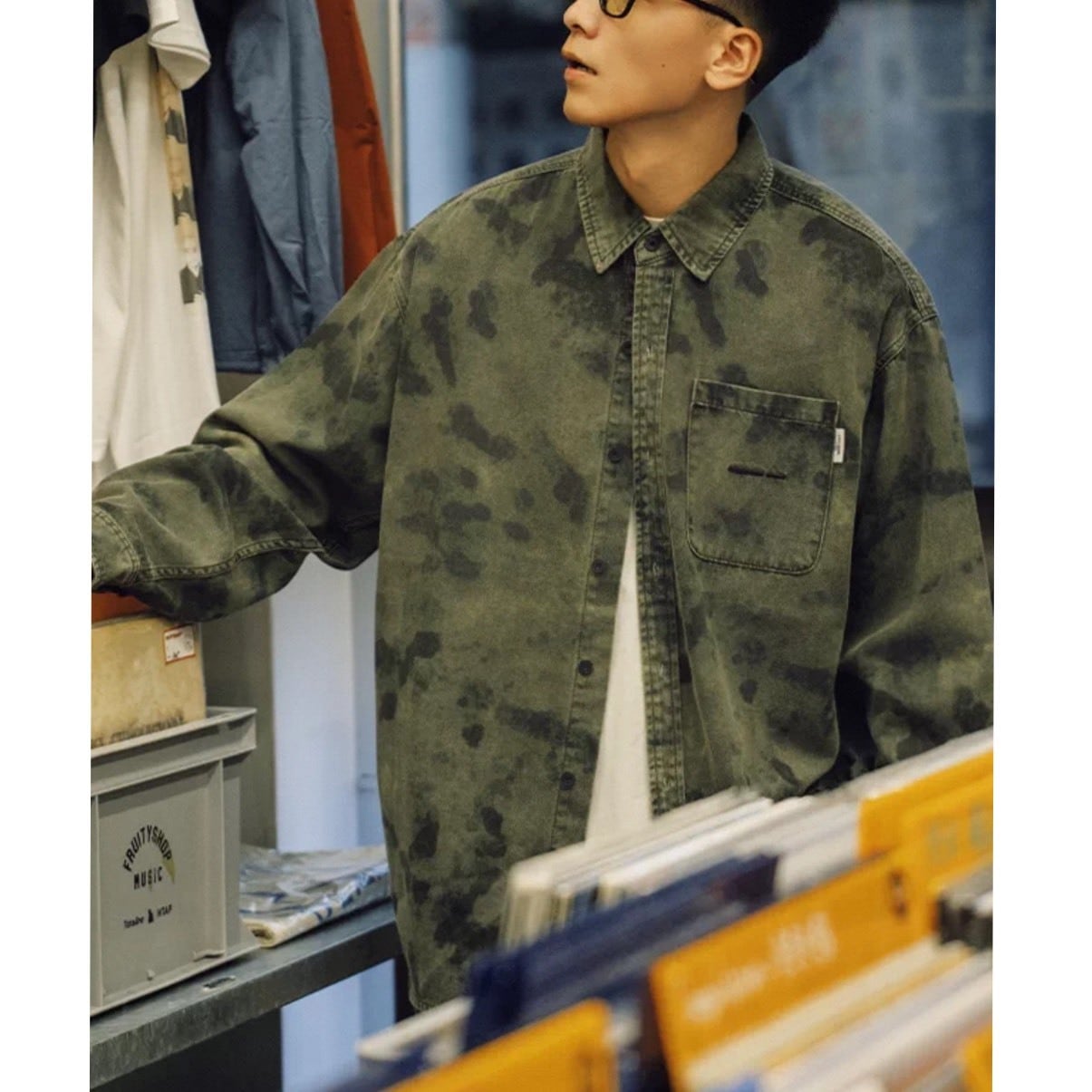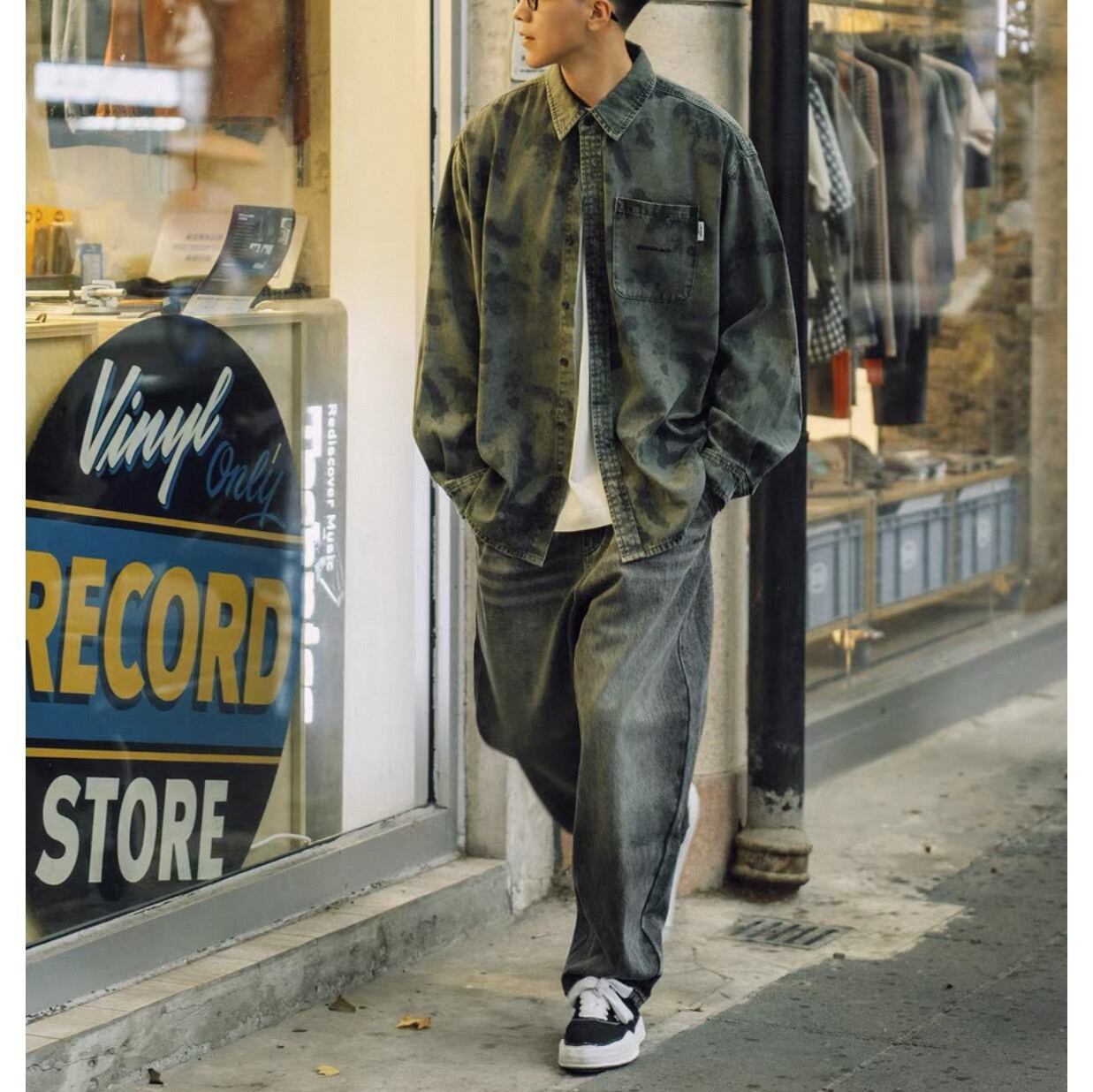 存在感のあるパターンがストリートらしい空気感を引き立てるオーバーサイズシャツ。