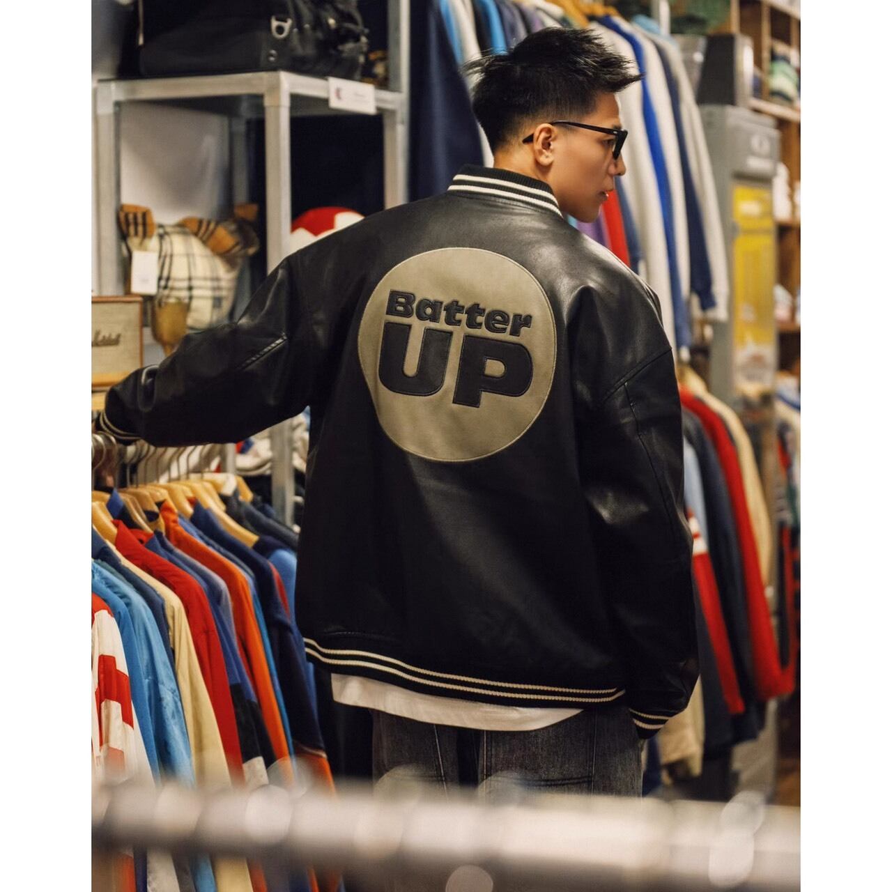 バックに施された存在感のあるロゴが目を引くスタジアムジャケット。