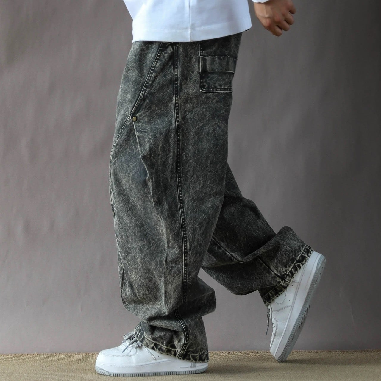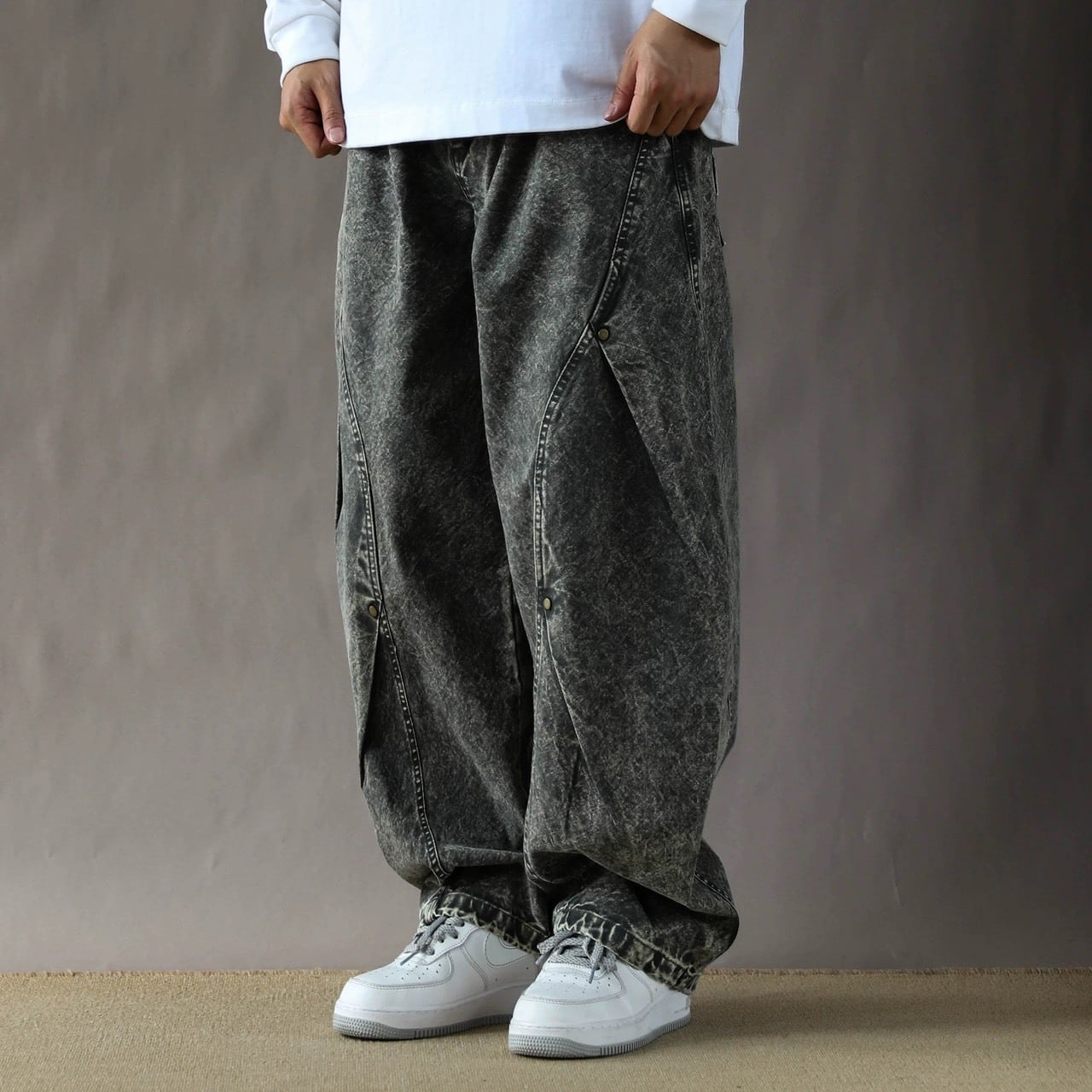 大胆なワイドシルエットに、立体裁断のようなパネルデザインを取り入れたデニムパンツ。