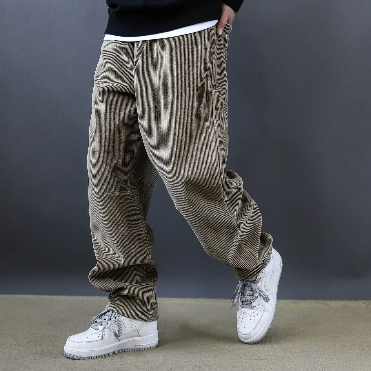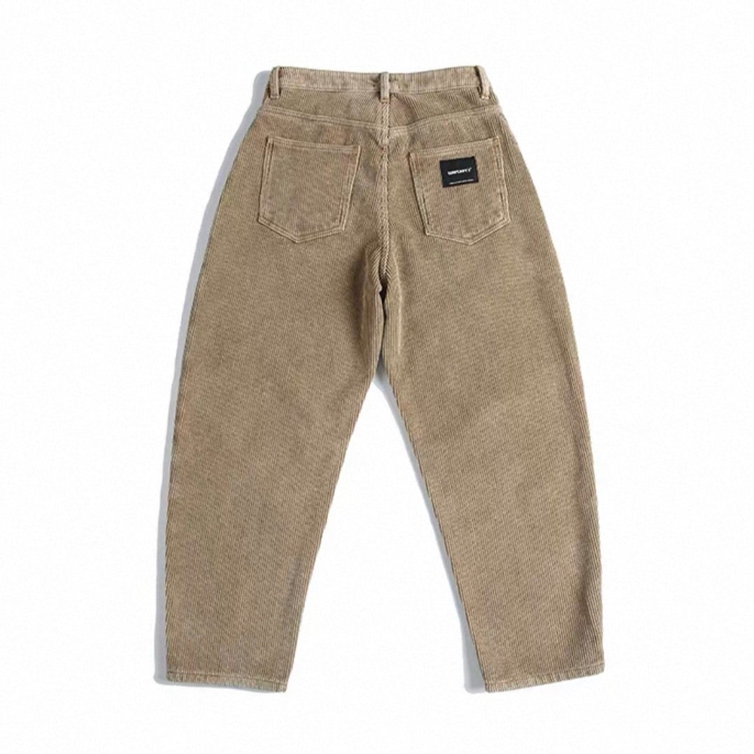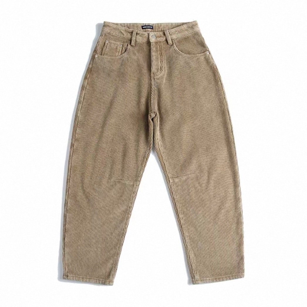 深みのあるカラーと独特の丸みを帯びたシルエットが印象的なコーデュロイワイドパンツ。