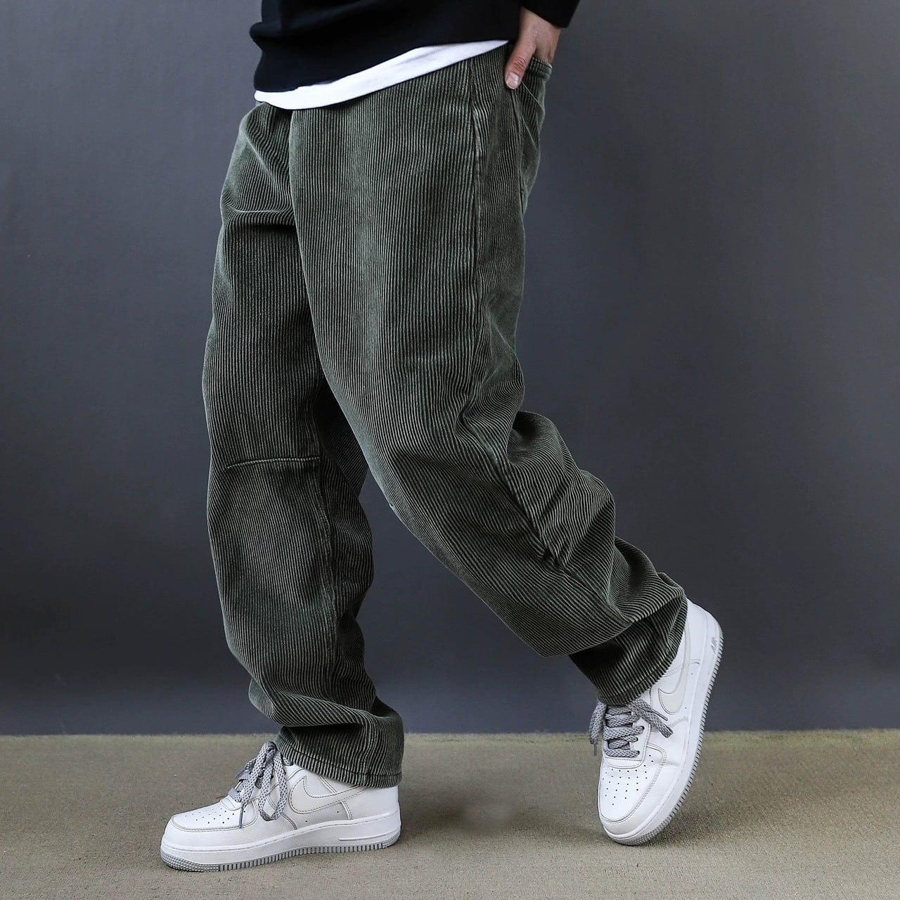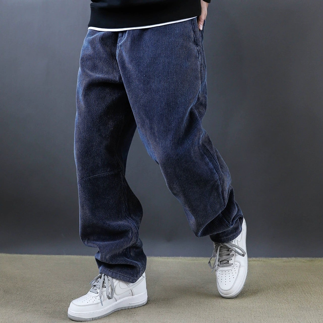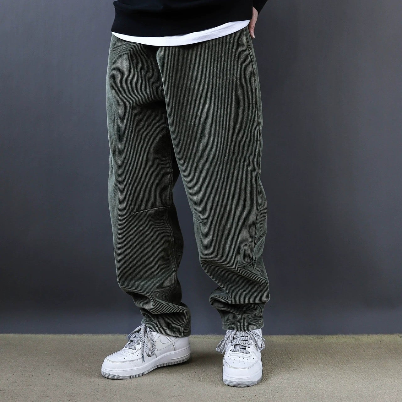 深みのあるカラーと独特の丸みを帯びたシルエットが印象的なコーデュロイワイドパンツ。