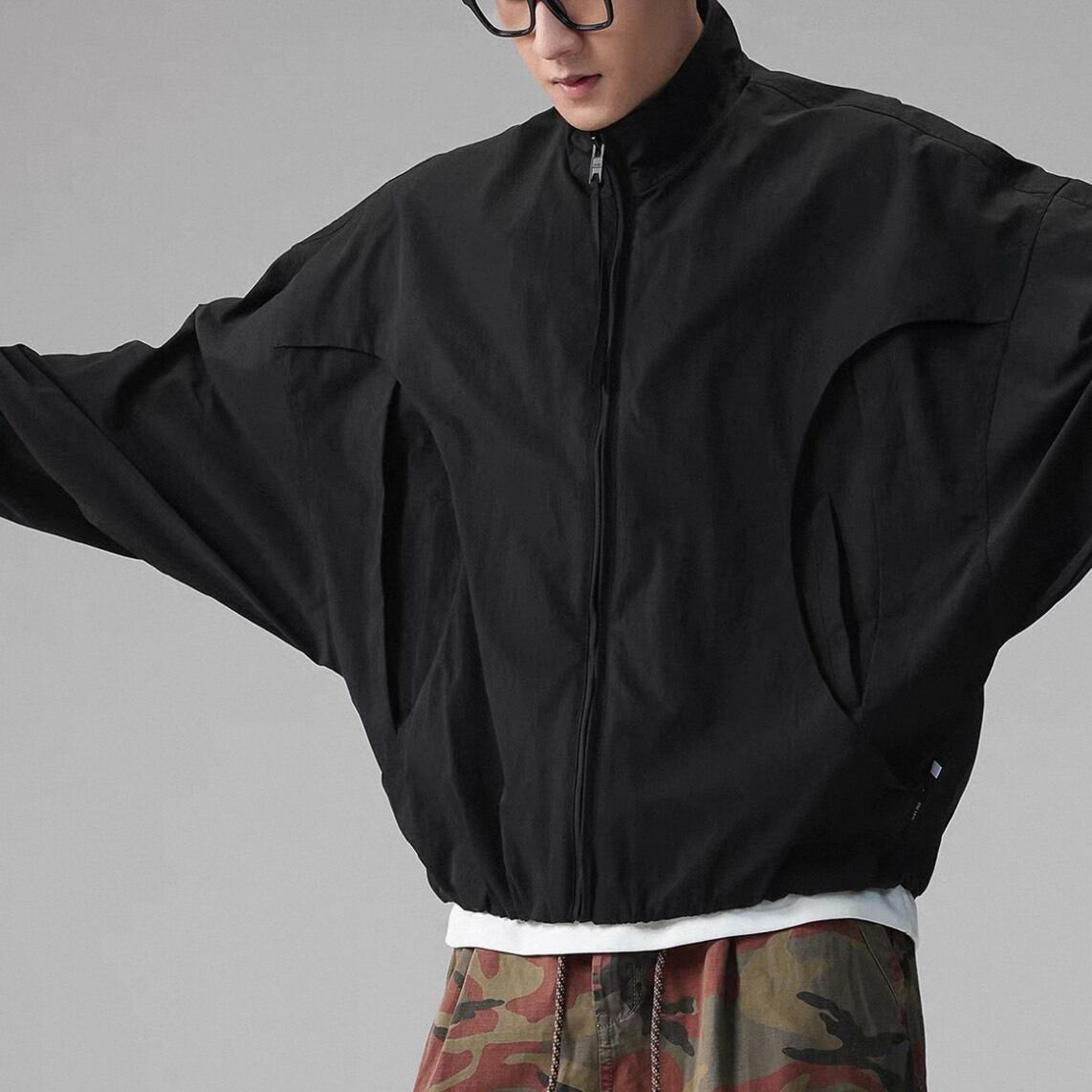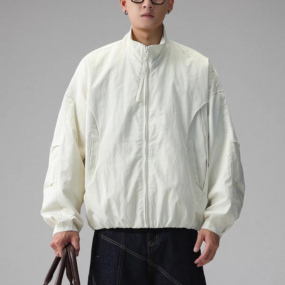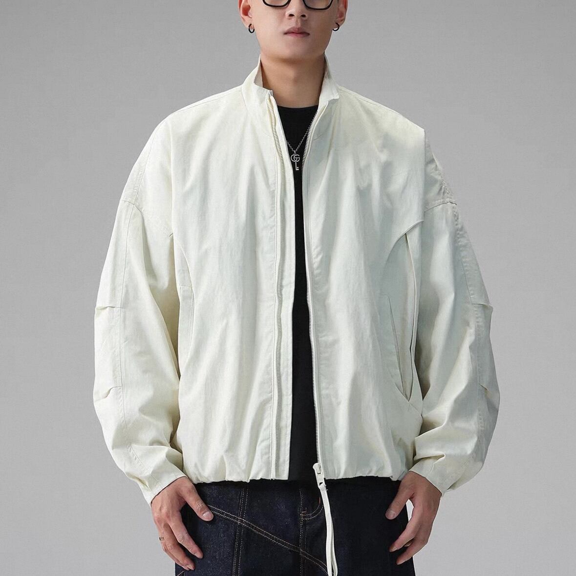 丸みを帯びたフォルムが特徴のジップアップジャケット。