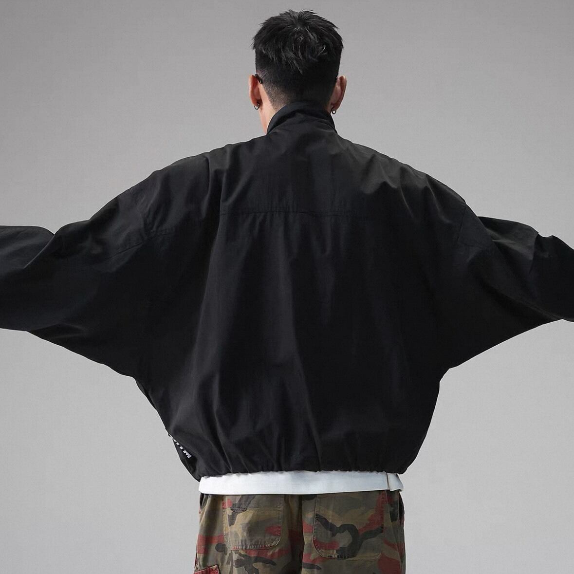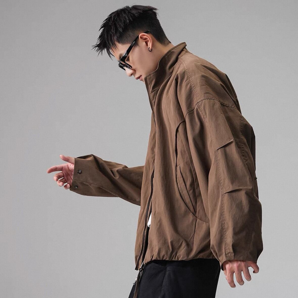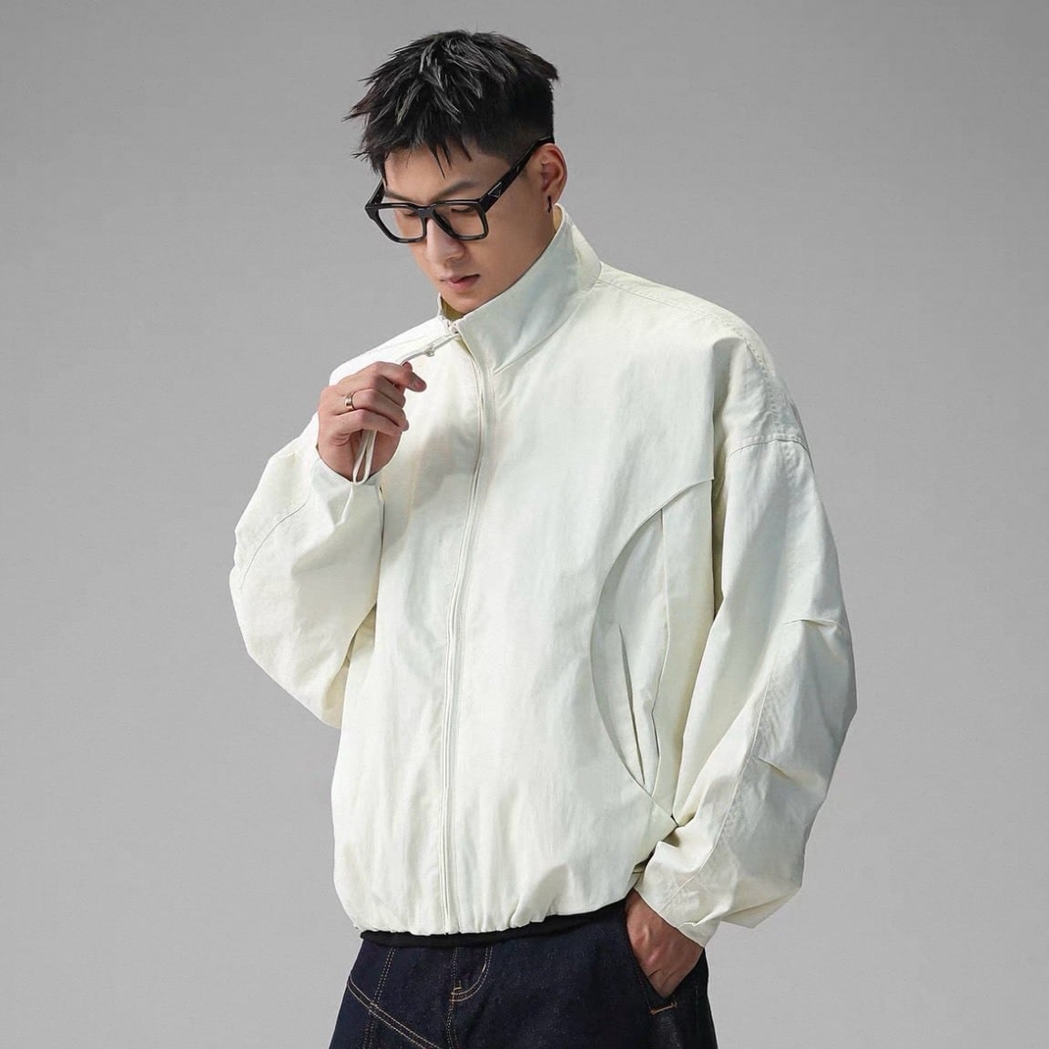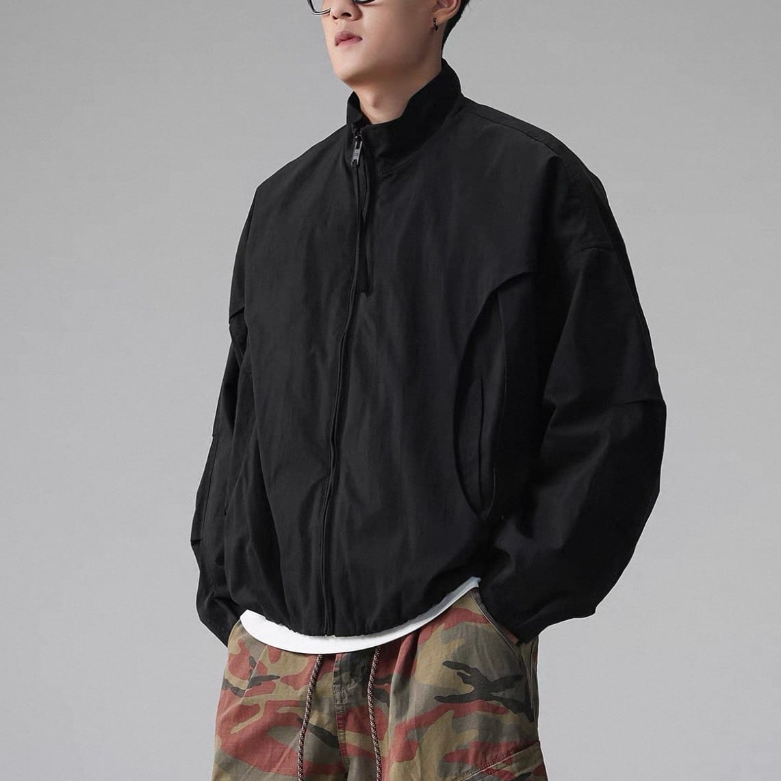 丸みを帯びたフォルムが特徴のジップアップジャケット。