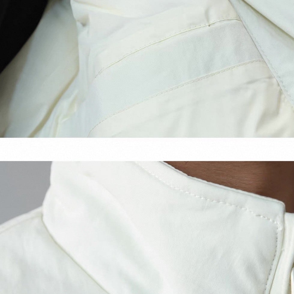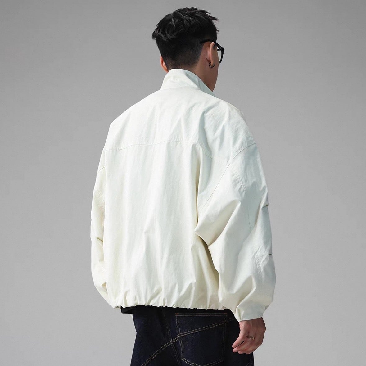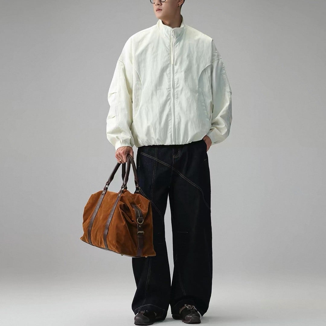 立ち襟デザインがコーデ全体を引き締め、カジュアル過ぎない印象に。