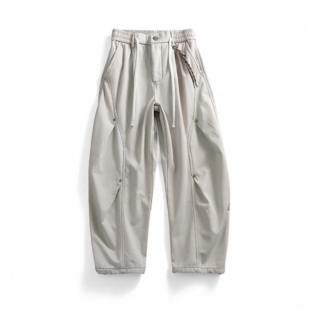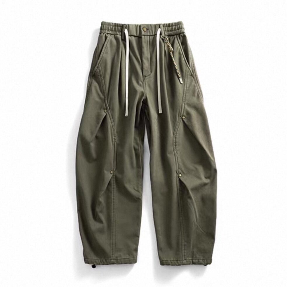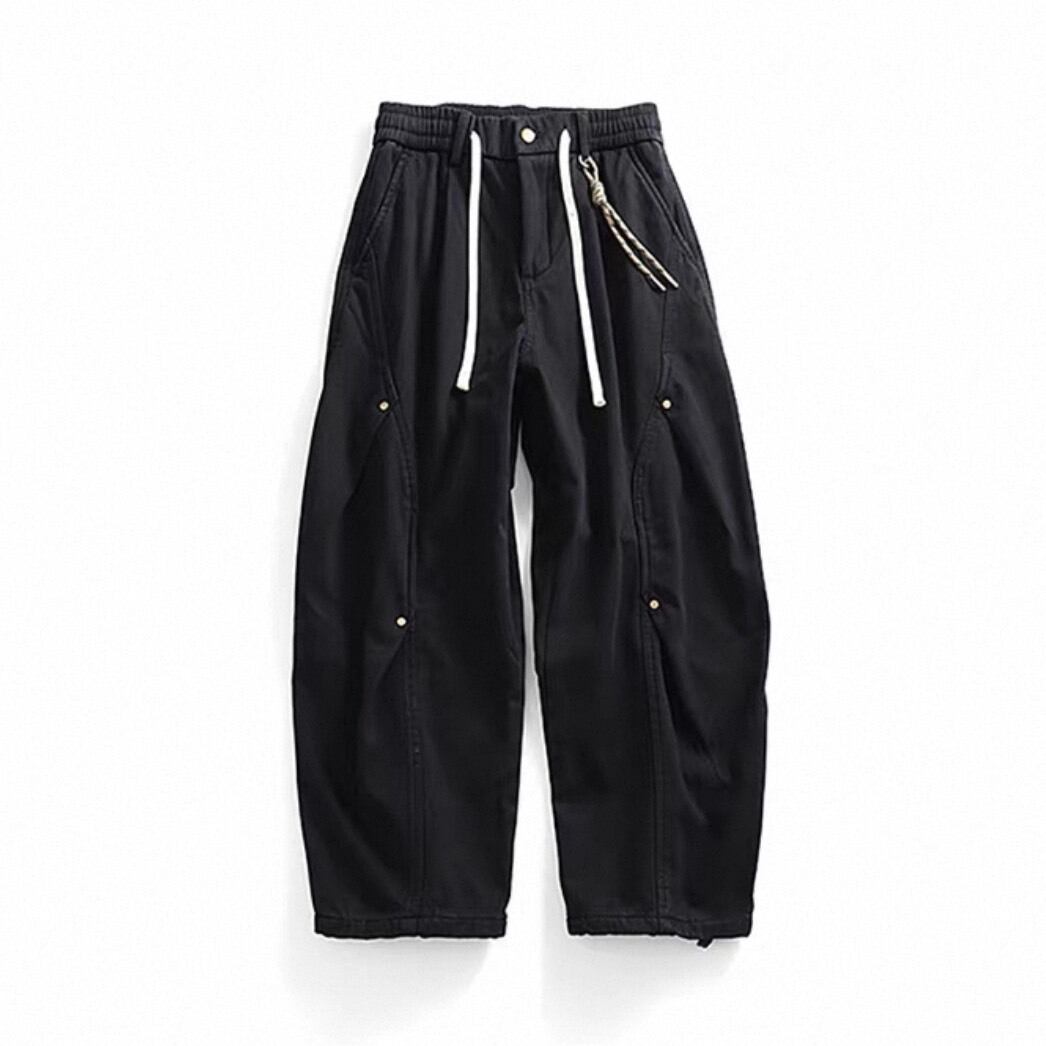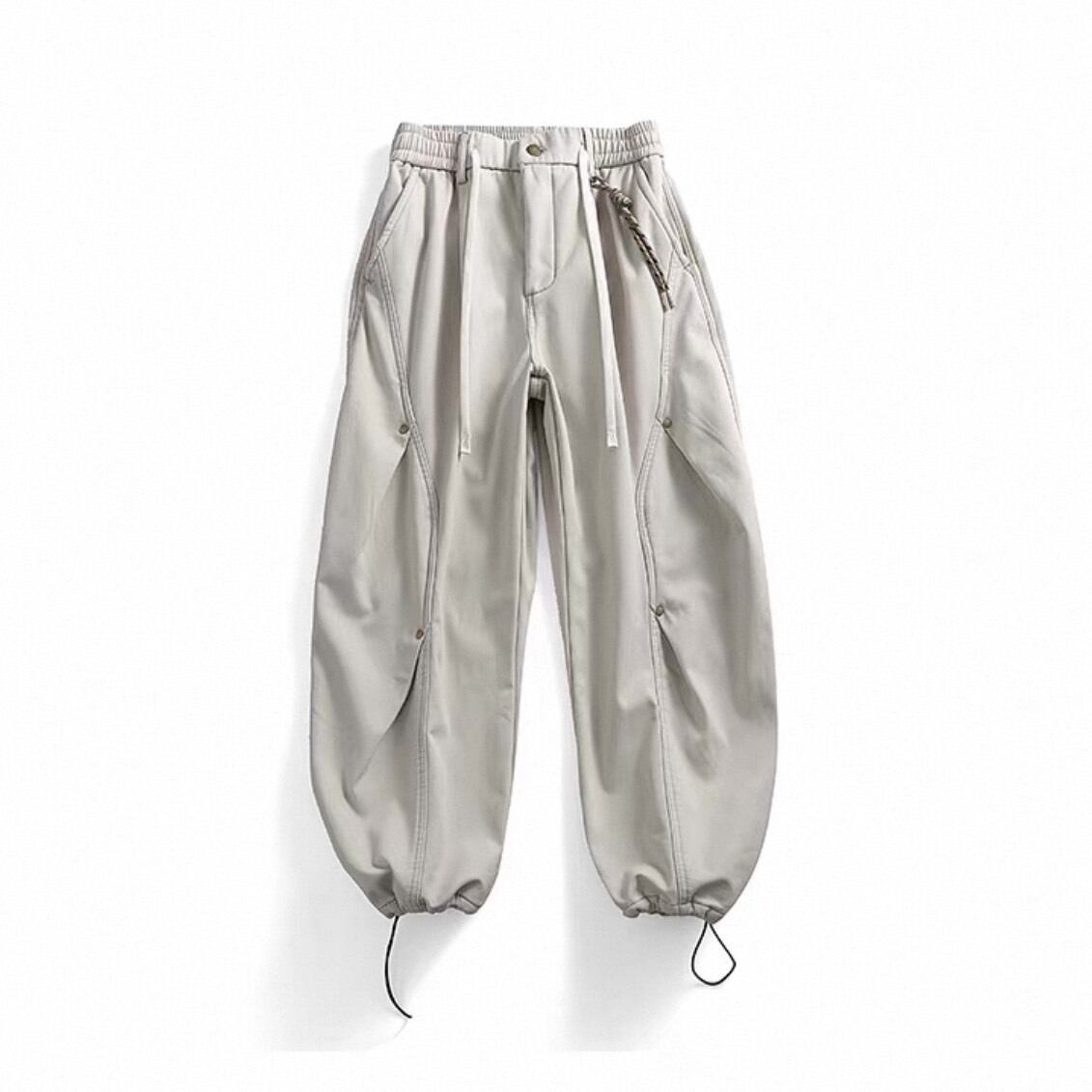 立体的なカーブシームが印象的なワイドシルエットパンツ。