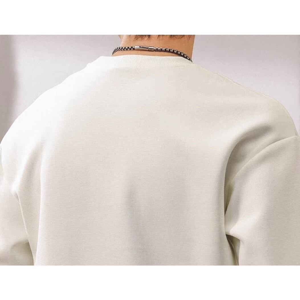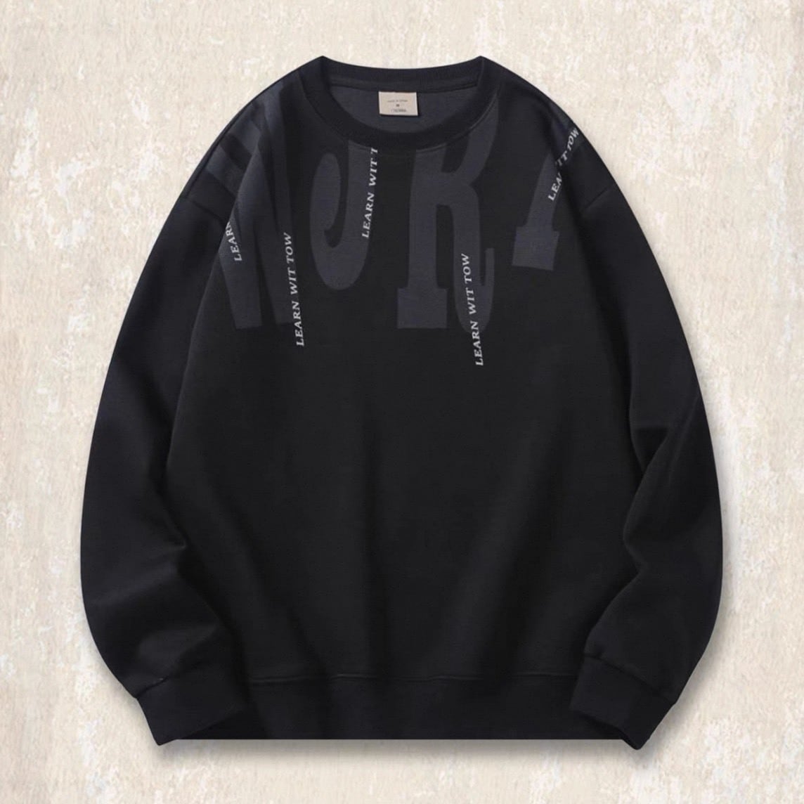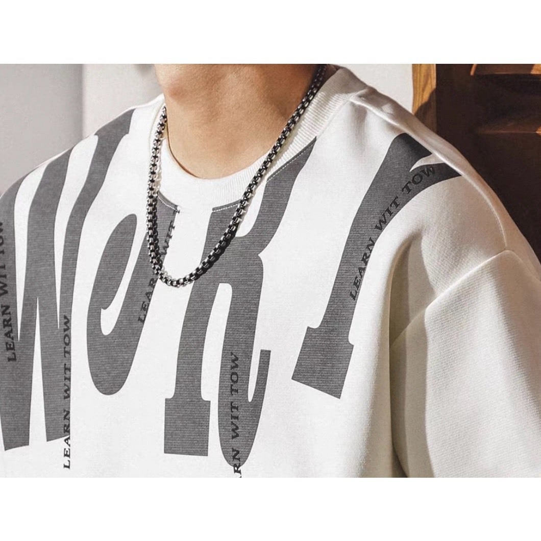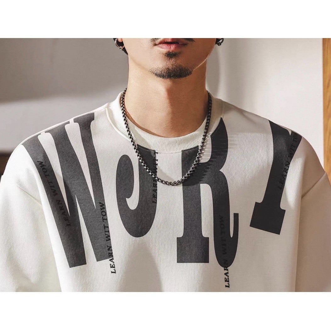 フロントに大胆に配したタイポグラフィが印象的なクルーネックスウェット。