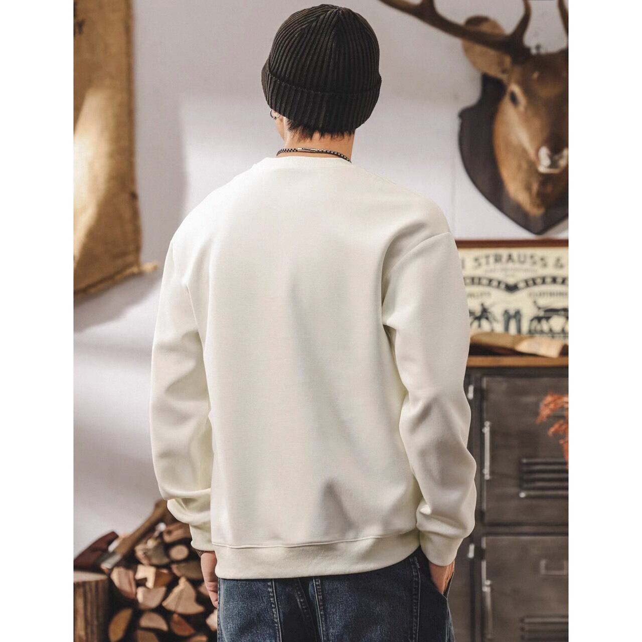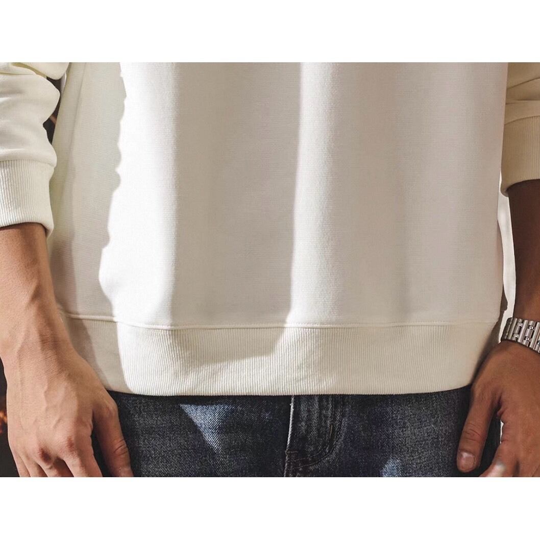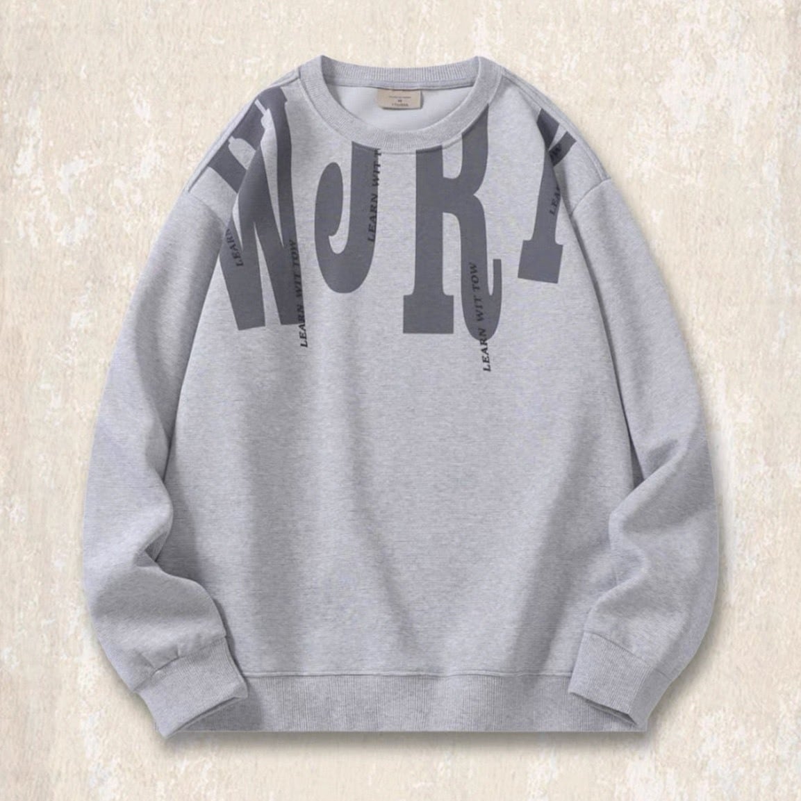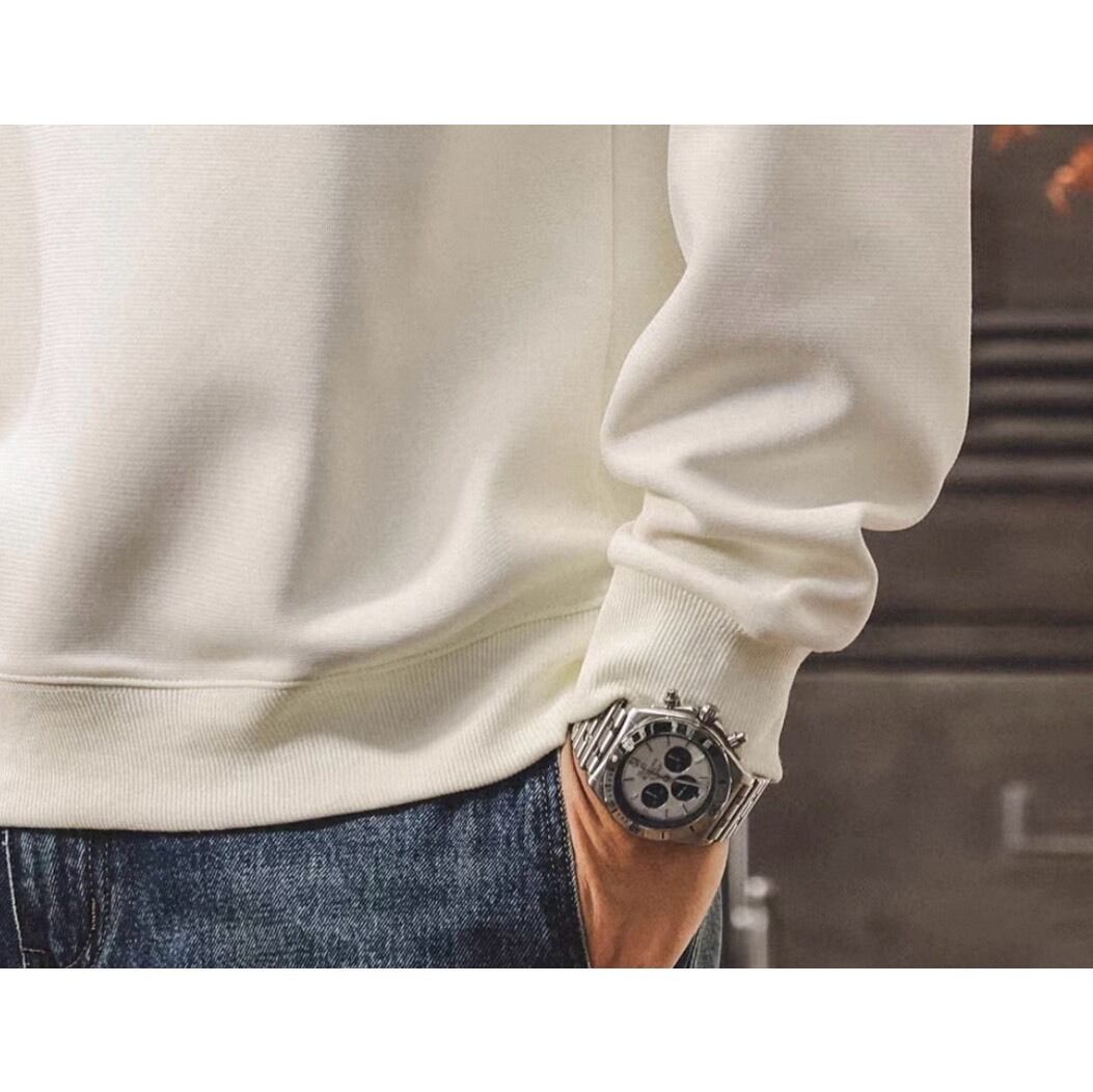 フロントに大胆に配したタイポグラフィが印象的なクルーネックスウェット。