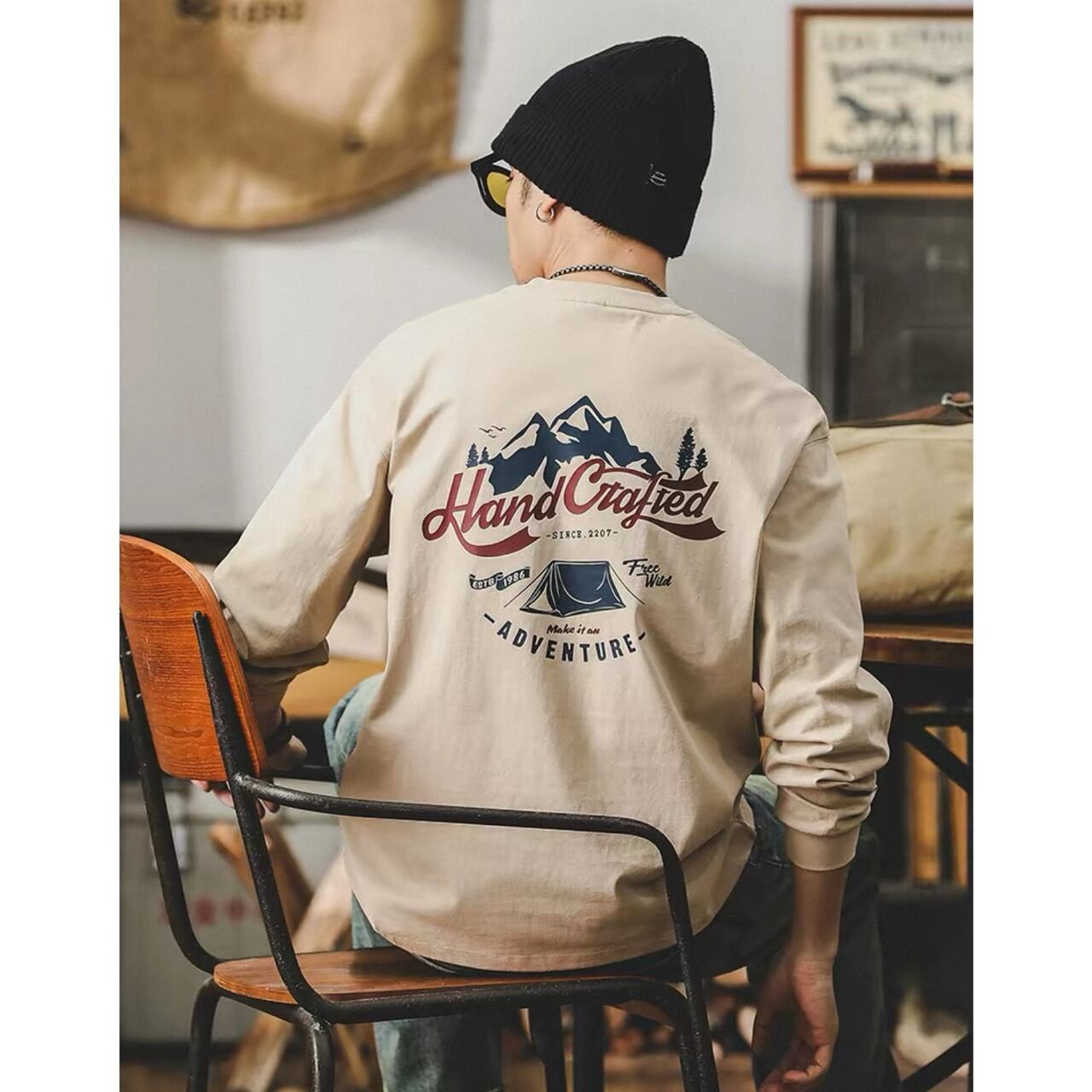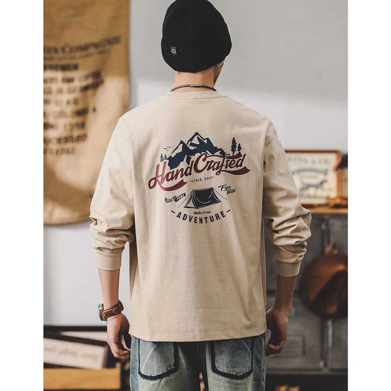 派手になりすぎないデザインで、大人が取り入れやすいバックプリントトップス。