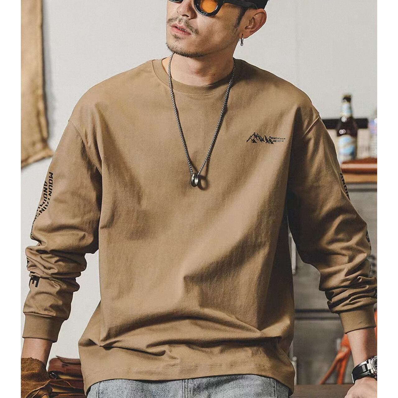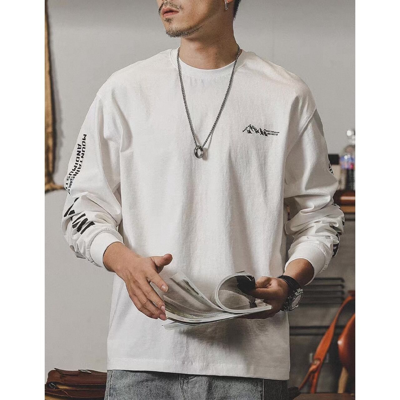 胸元のロゴと袖のグラフィックが程よいアクセントになるロングスリーブトップス。