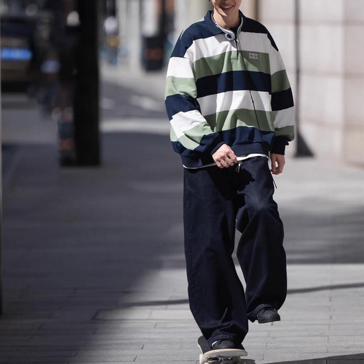 大胆なボーダーデザインが目を引くオーバーサイズトップス。