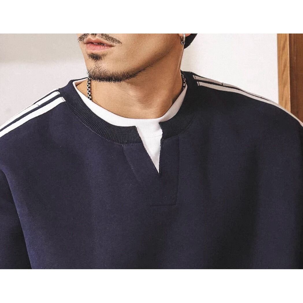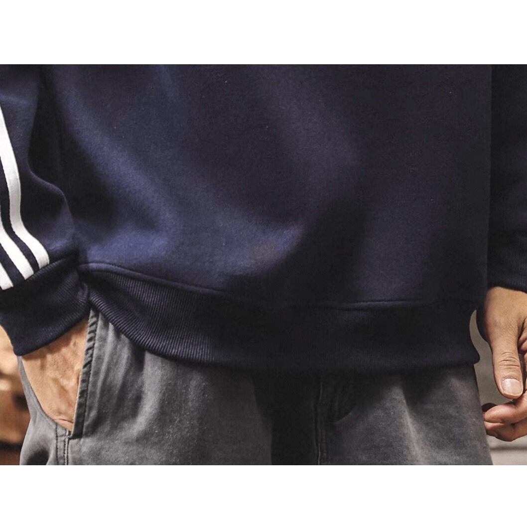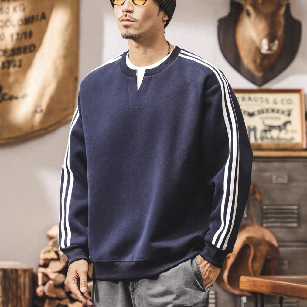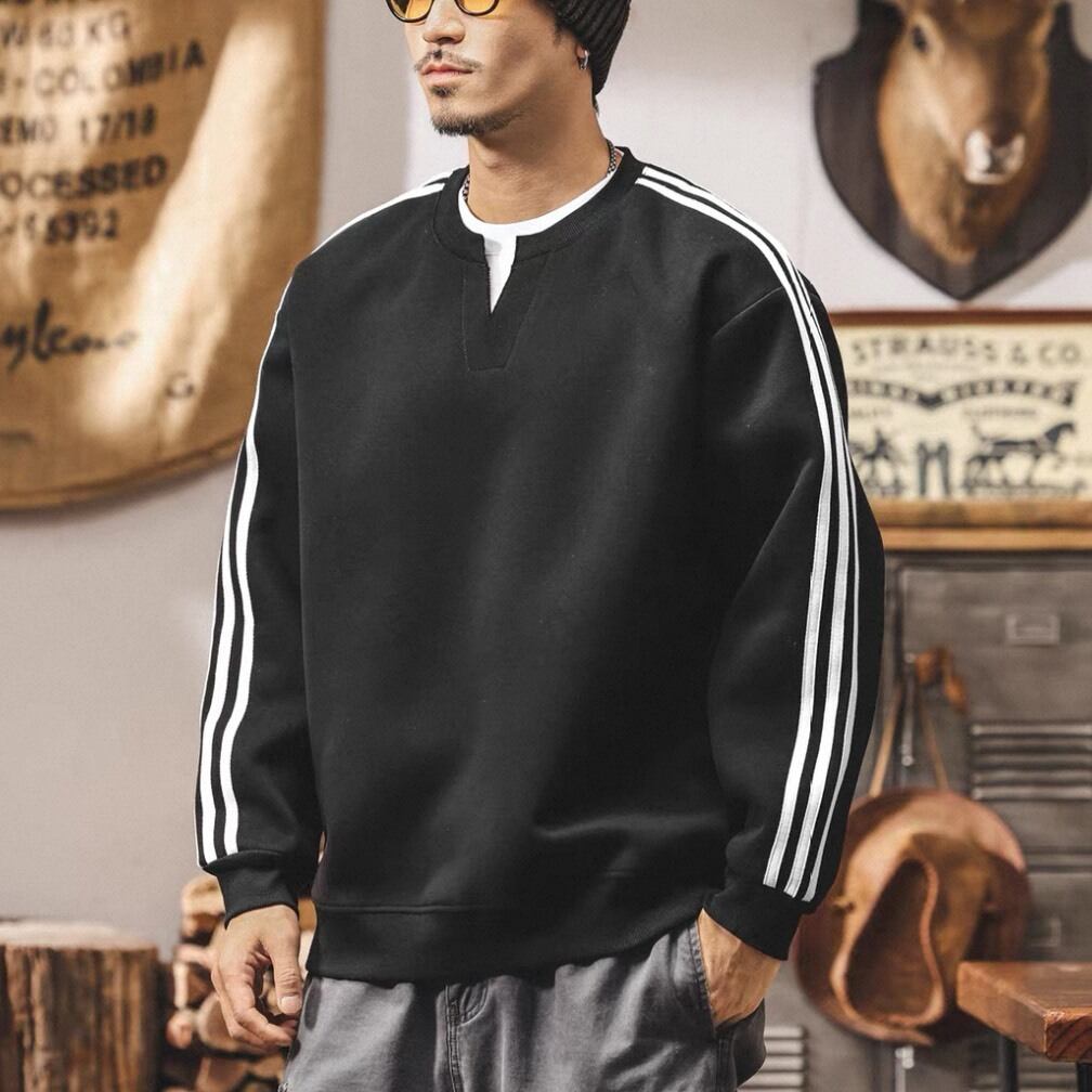 クラシックなスポーツテイストを取り入れたライン入りスウェット。