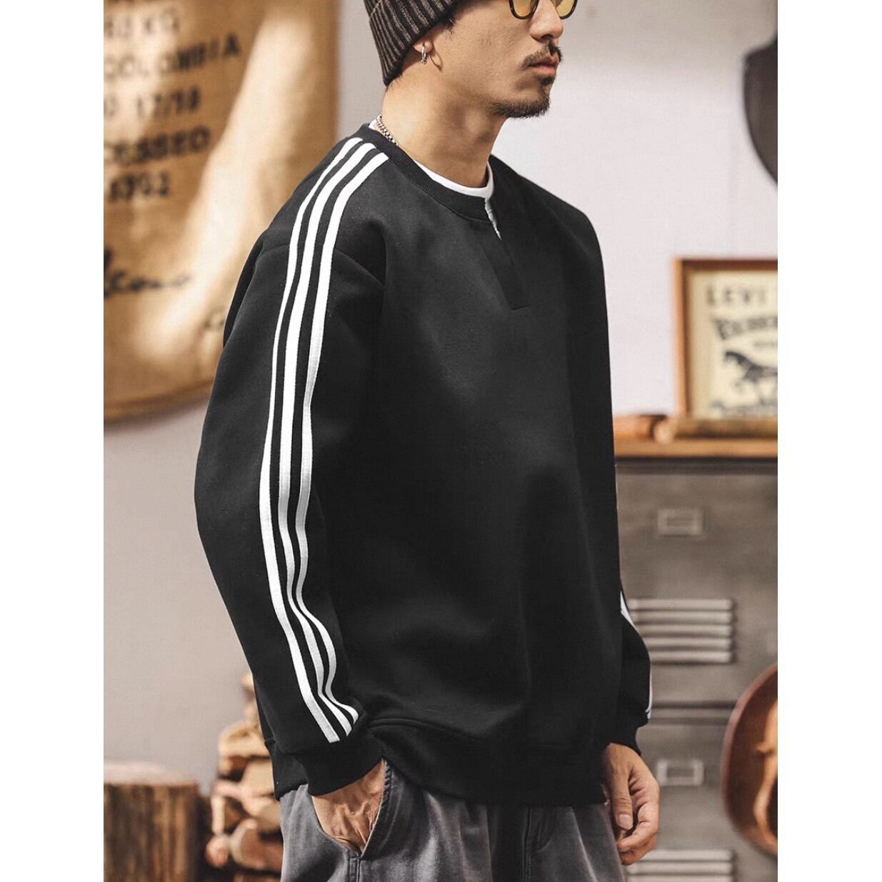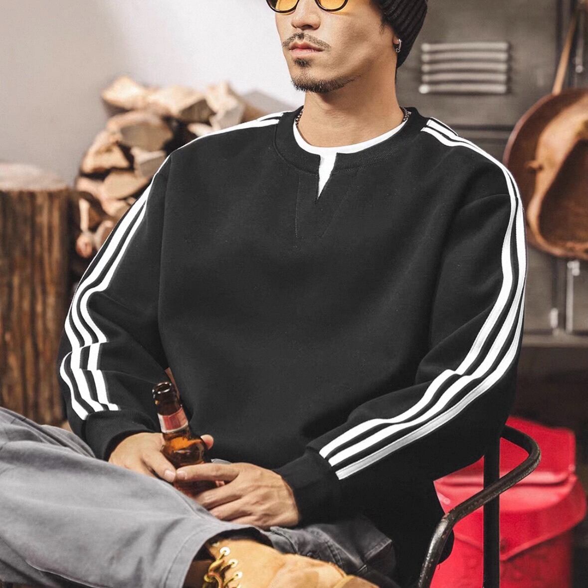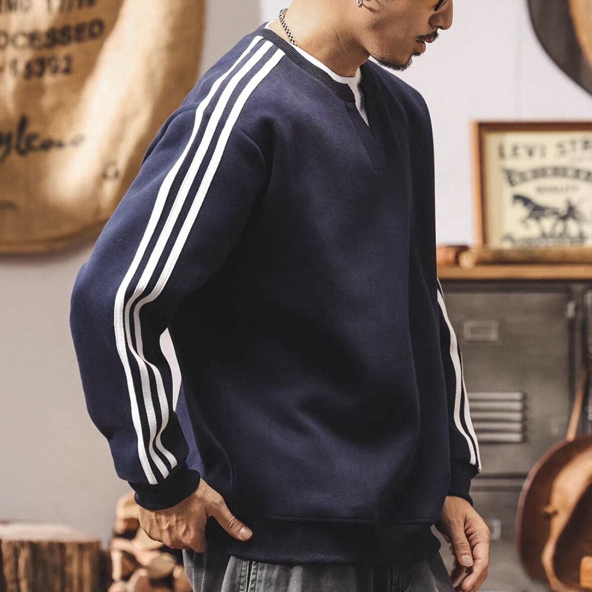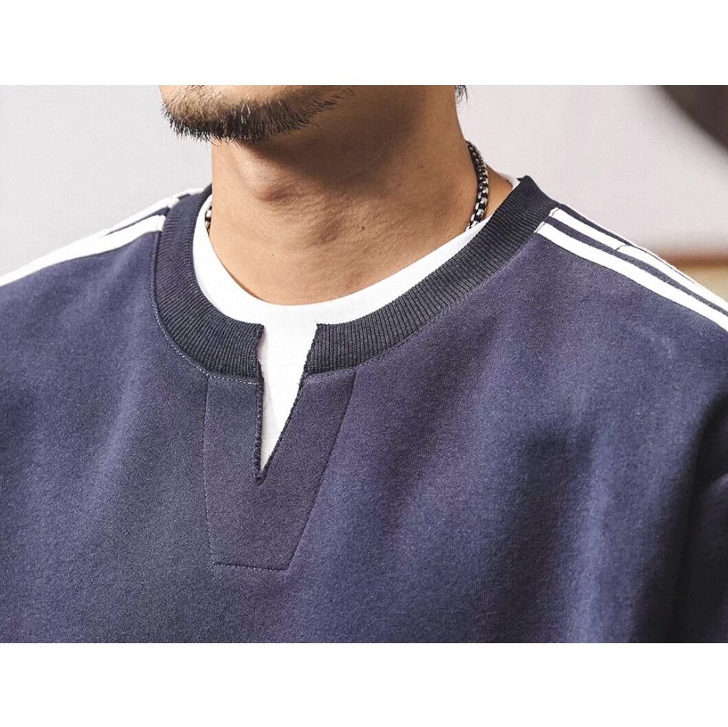 クラシックなスポーツテイストを取り入れたライン入りスウェット。