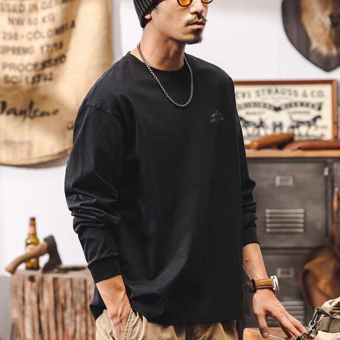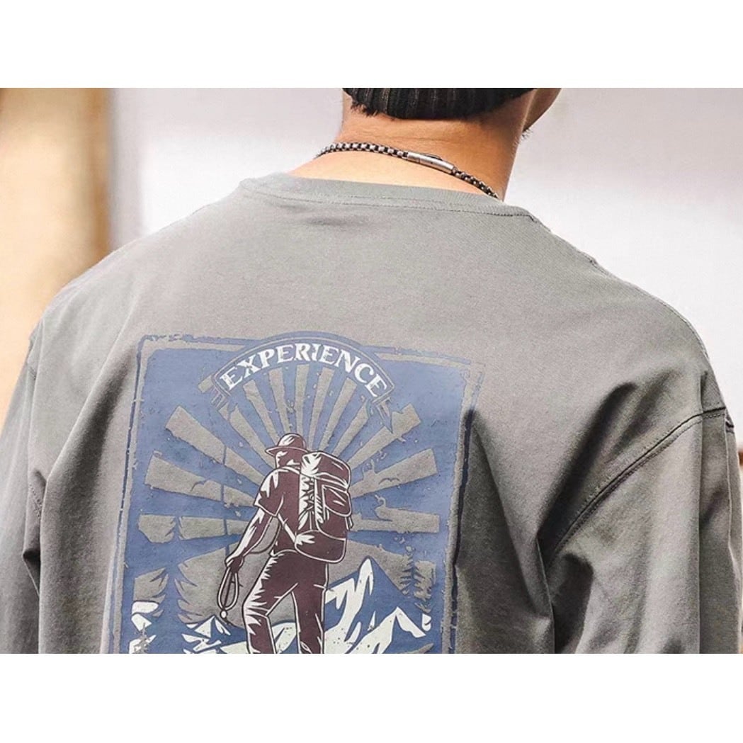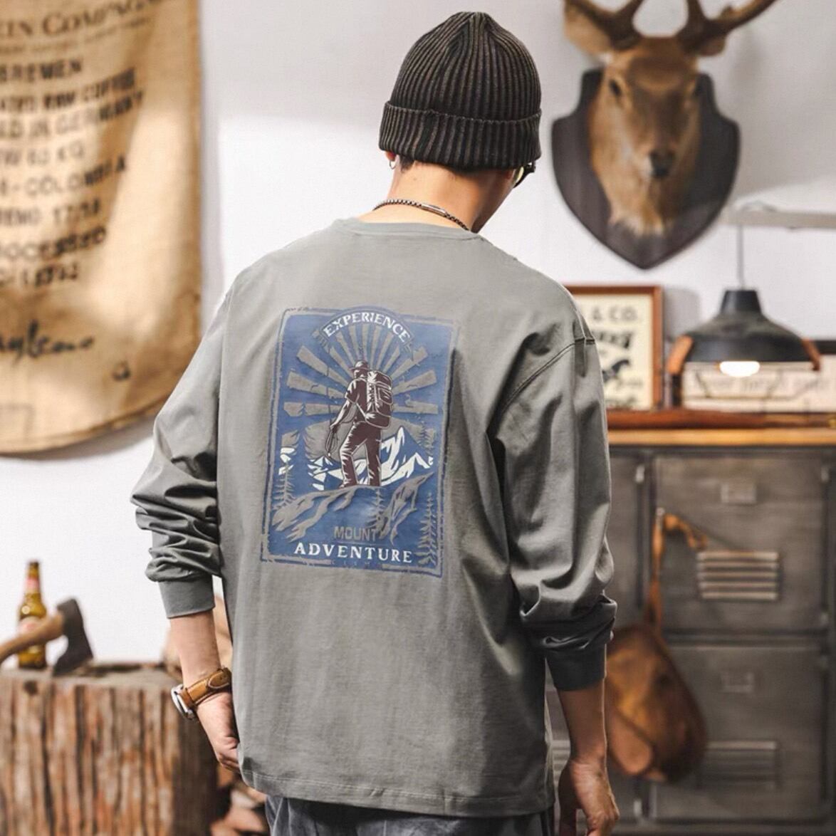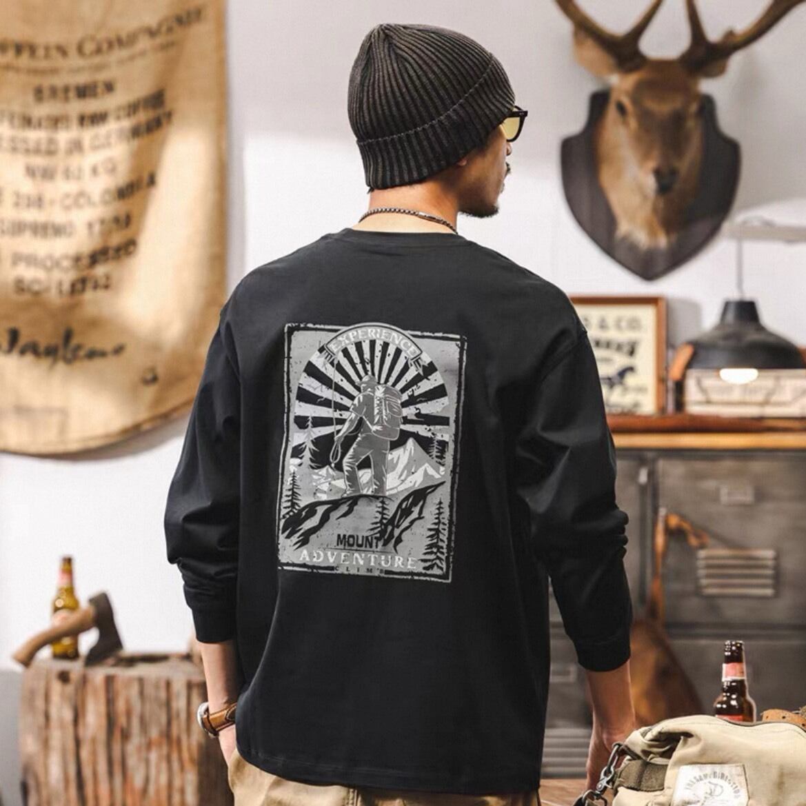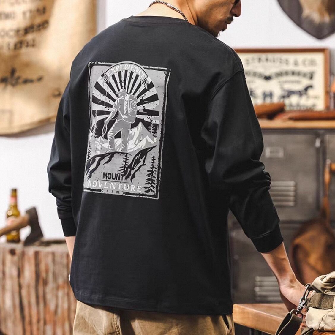 バックのグラフィックが目を引くロングスリーブトップス。