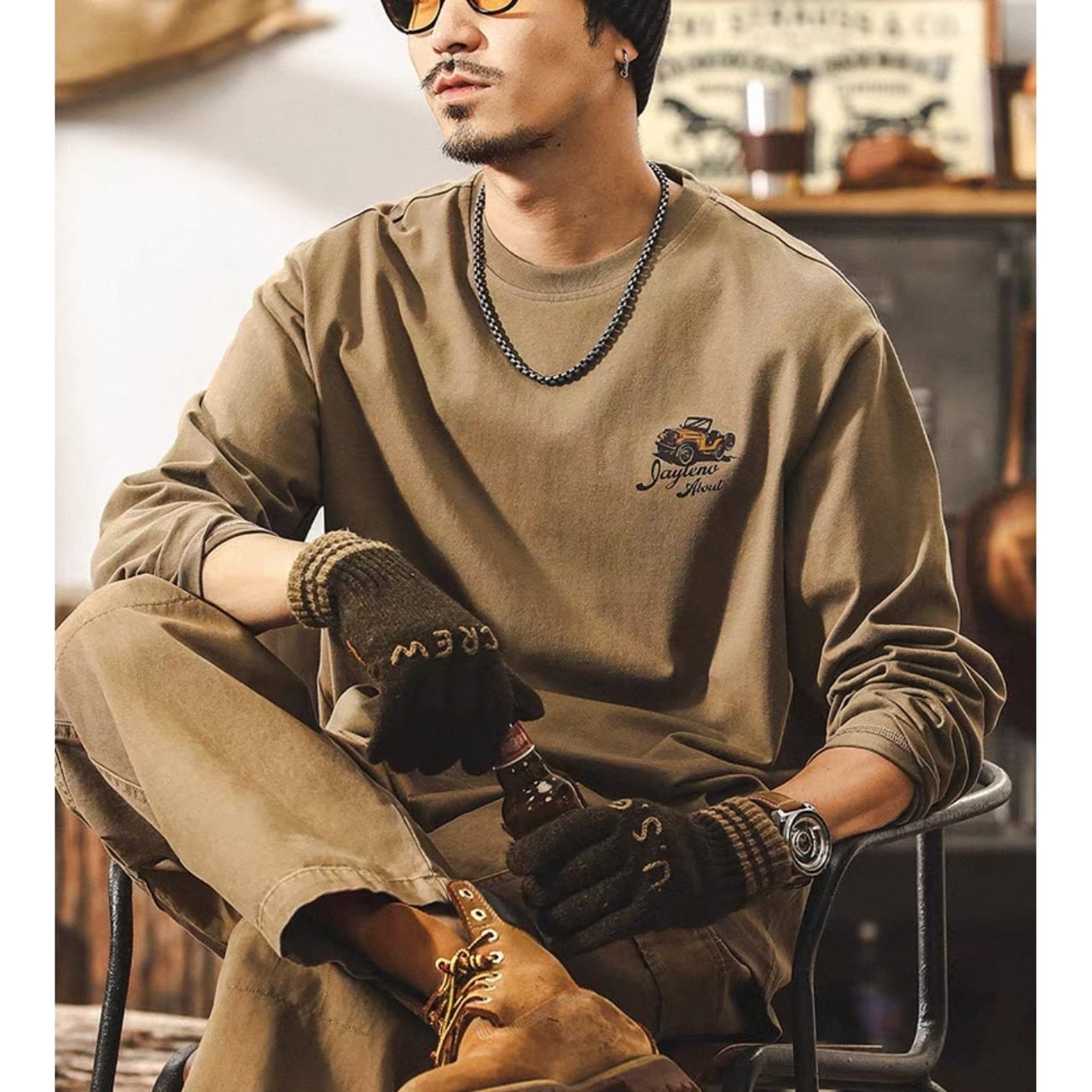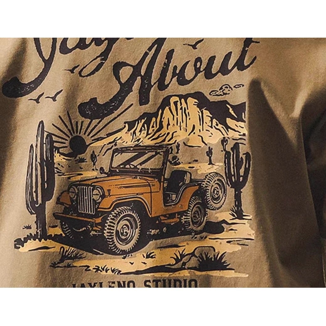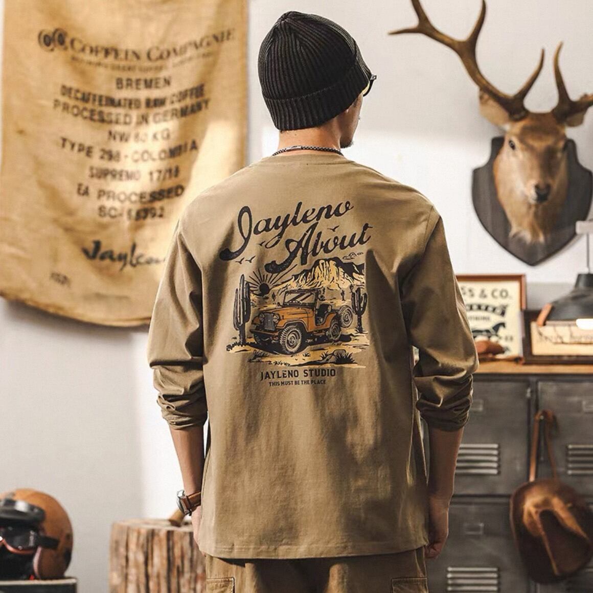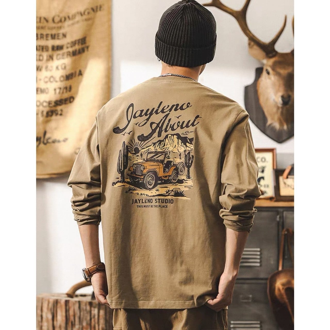 ヴィンテージポスターを思わせるデザインが目を引く一着。