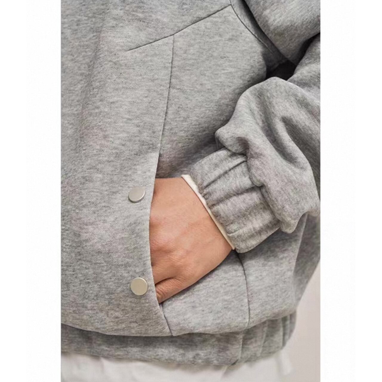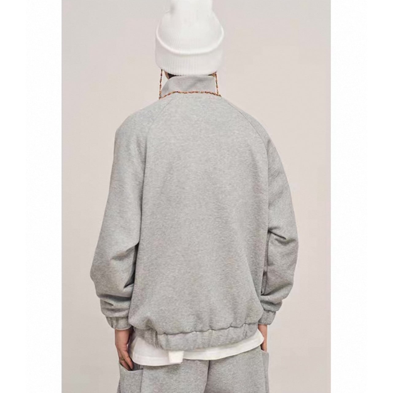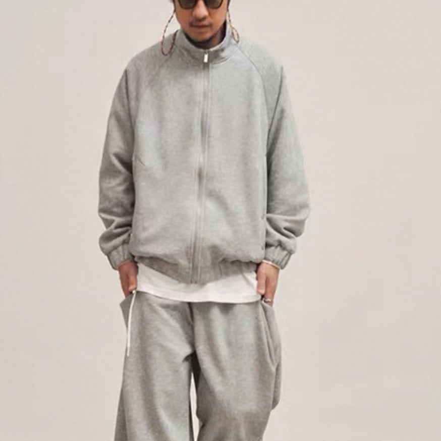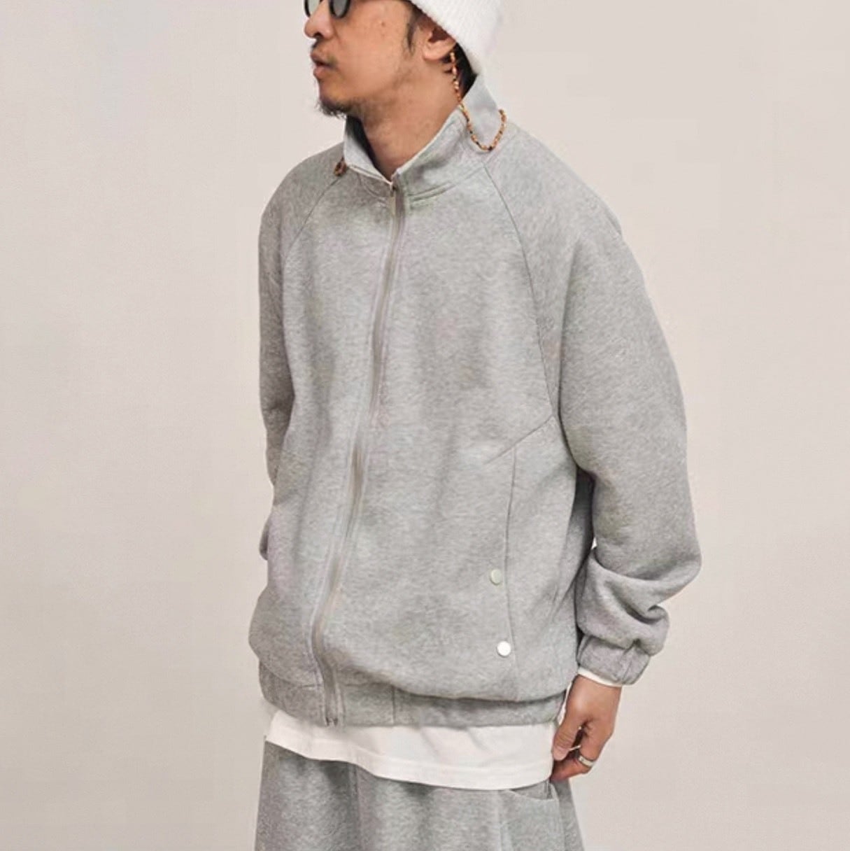 スタンドネック仕様で首元に立体感をプラスしたジップアップトップス。