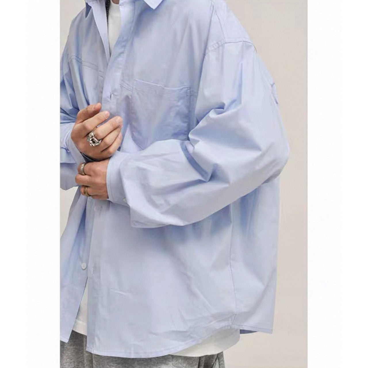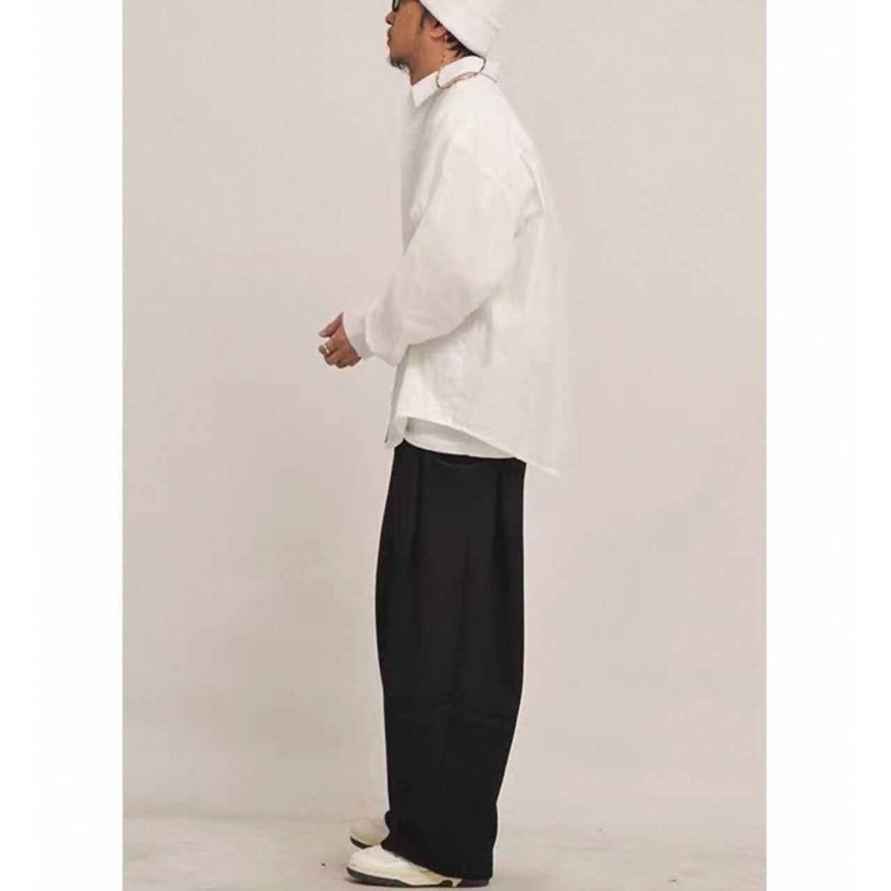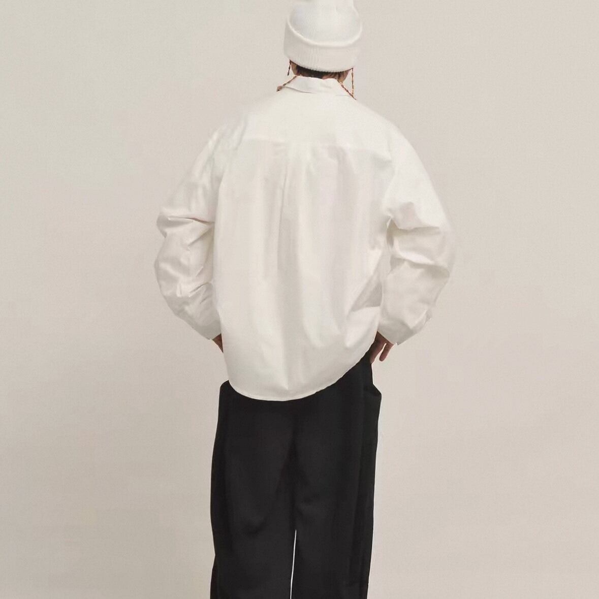 ゆとりを持たせたシルエットが特徴のオーバーサイズシャツ。