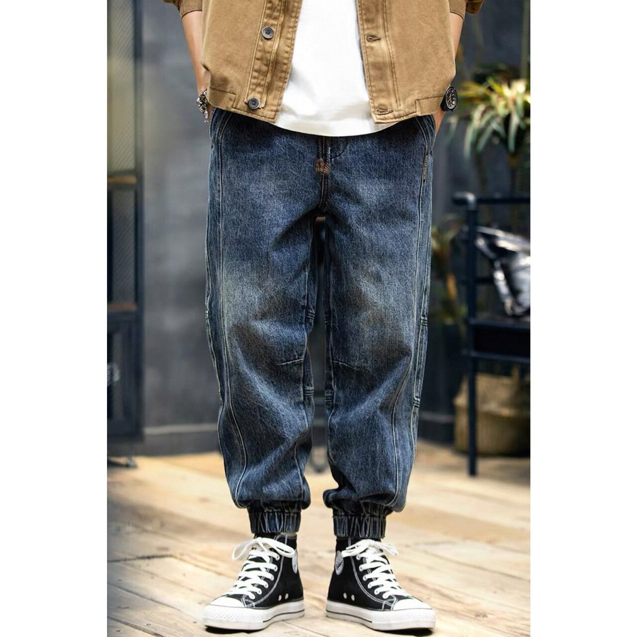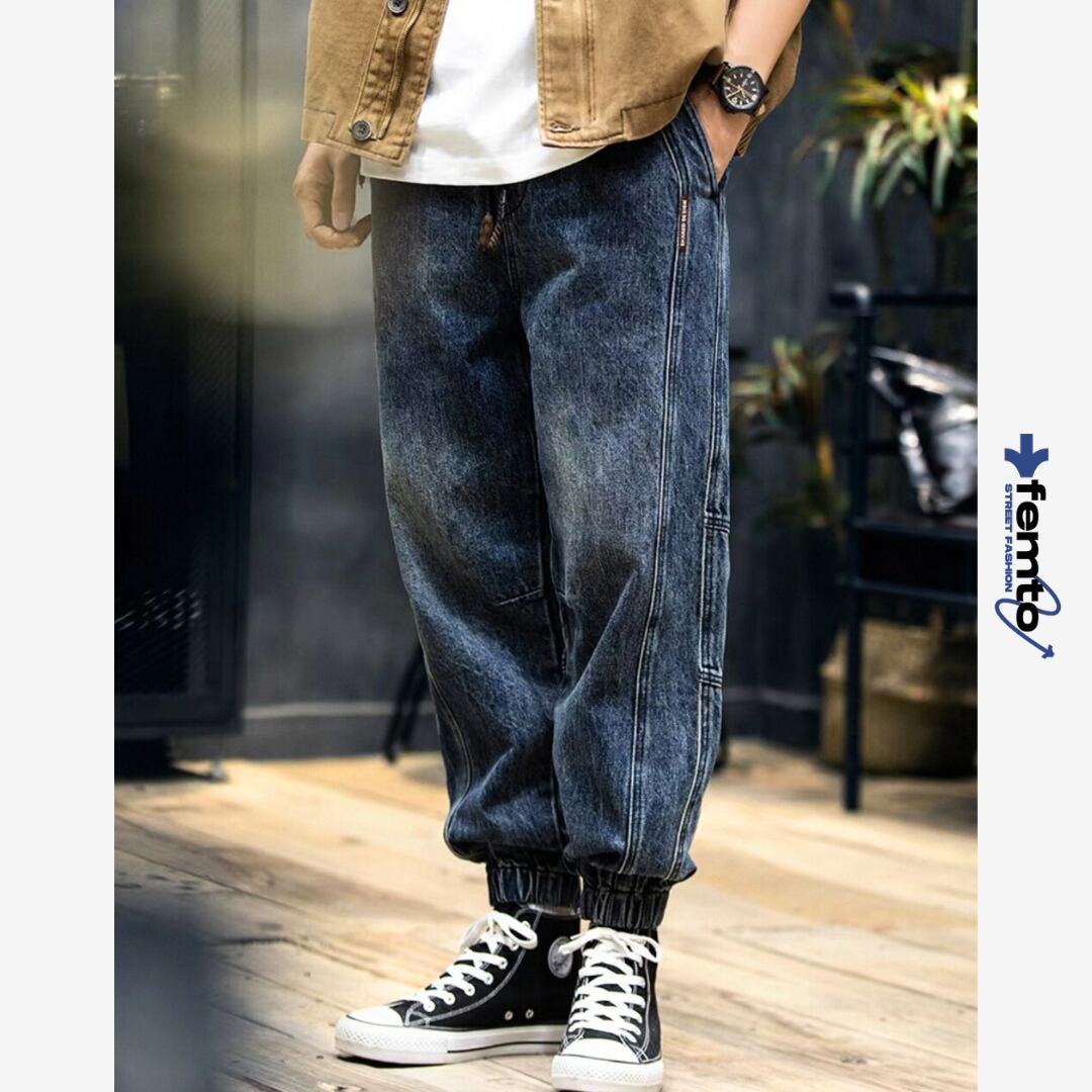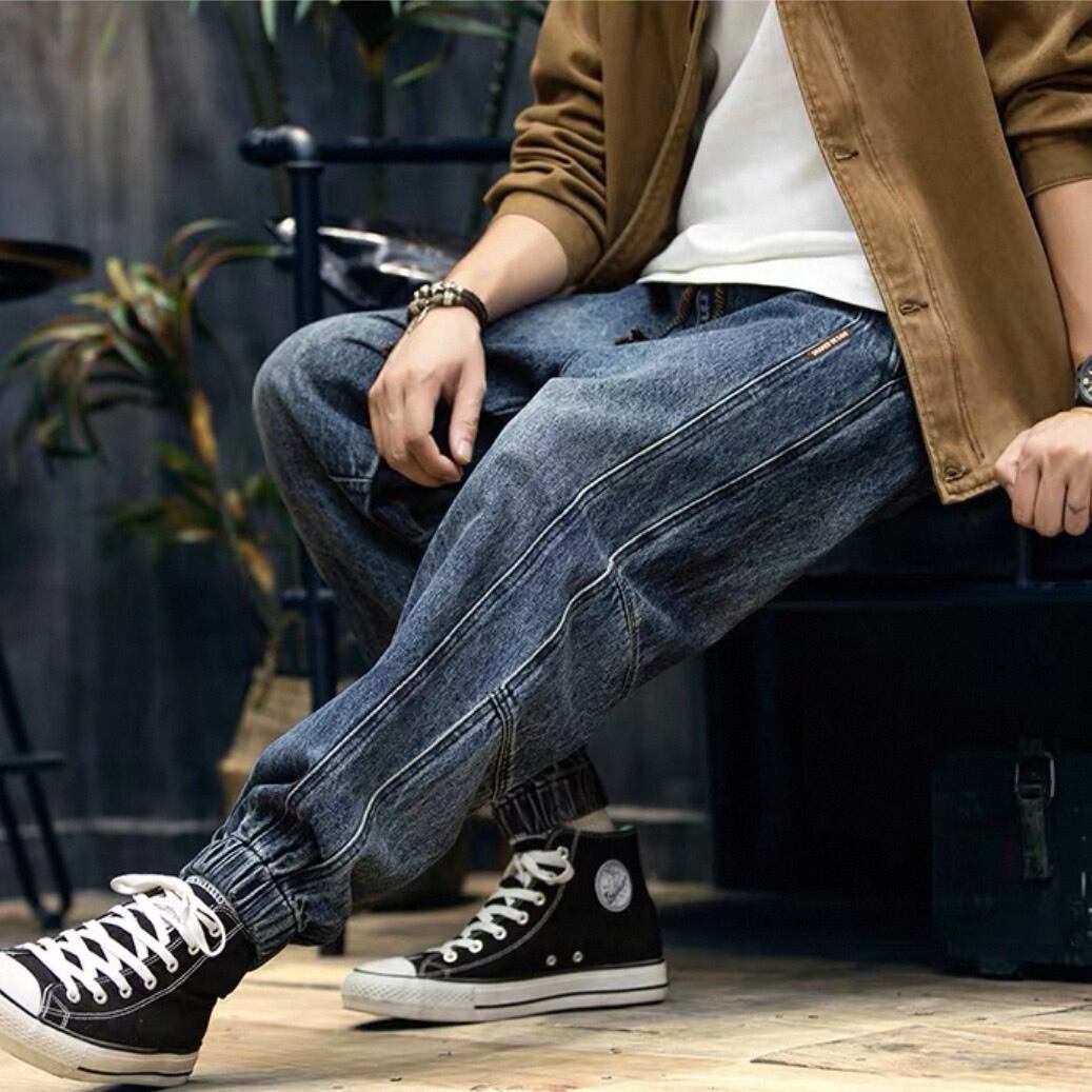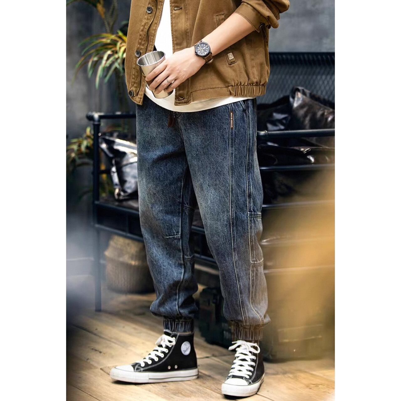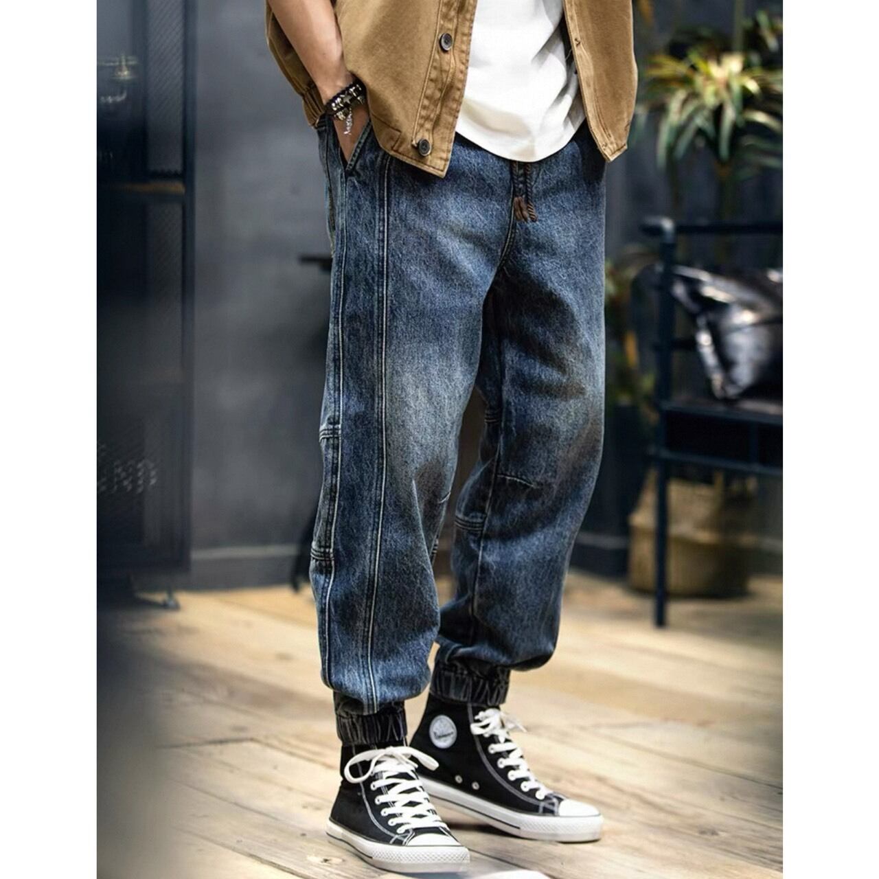 裾をリブ仕様で仕上げたジョガータイプのデニムパンツ。
