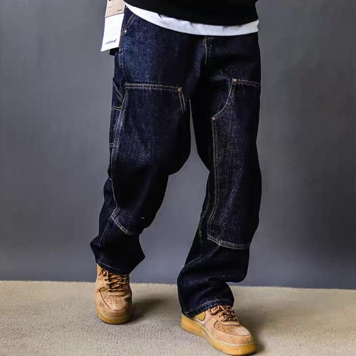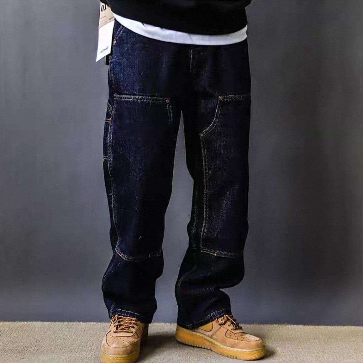 存在感のあるビッグパッチポケットが視線を引きつけるワイドデニム。