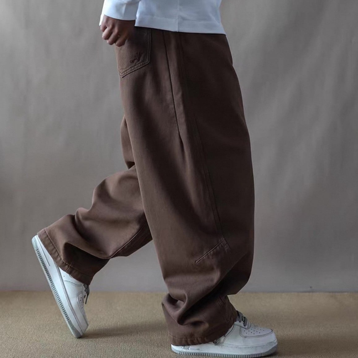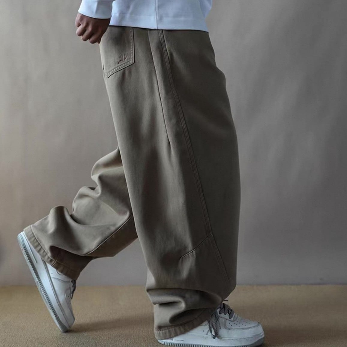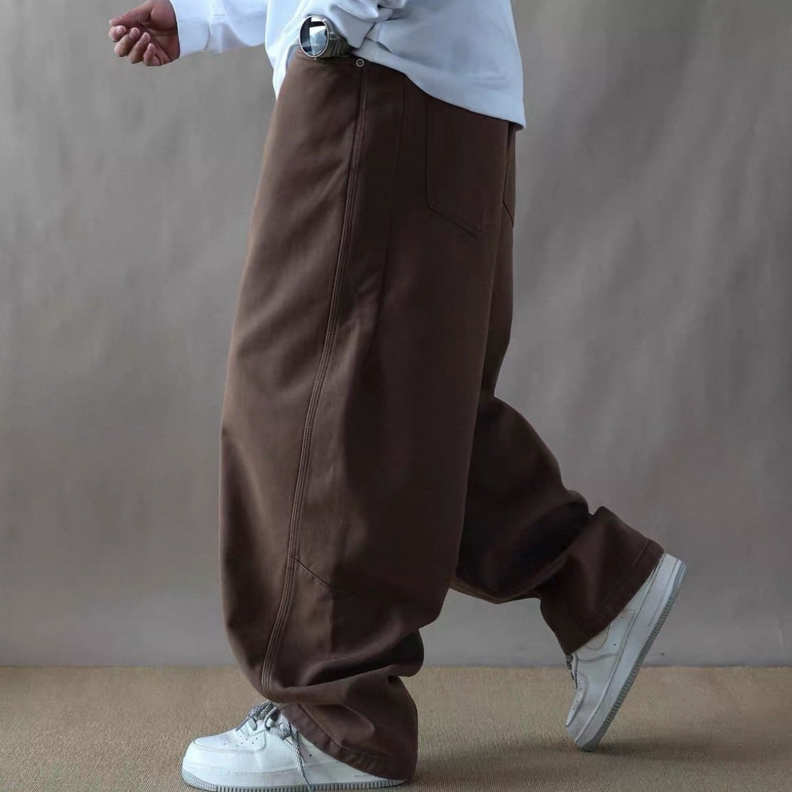 裾に向かって自然に落ちるラインが動きにニュアンスを加え、スニーカーとの相性も抜群。