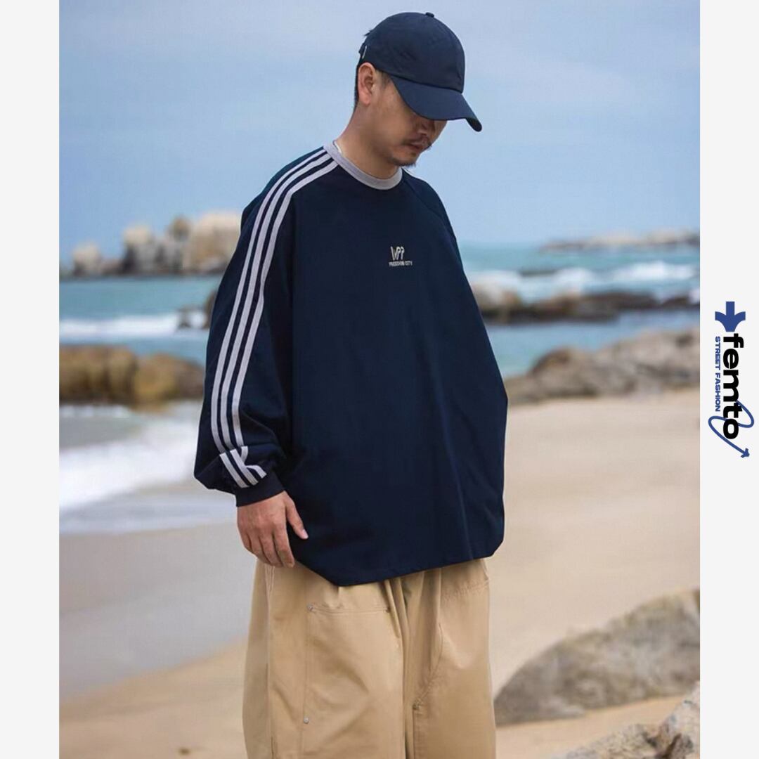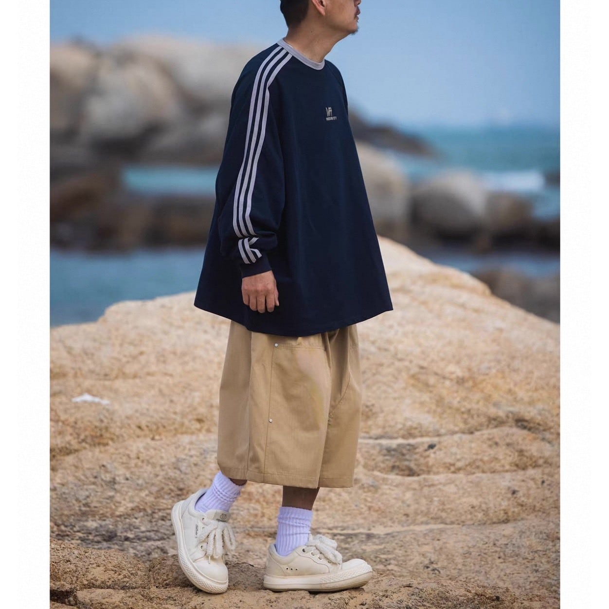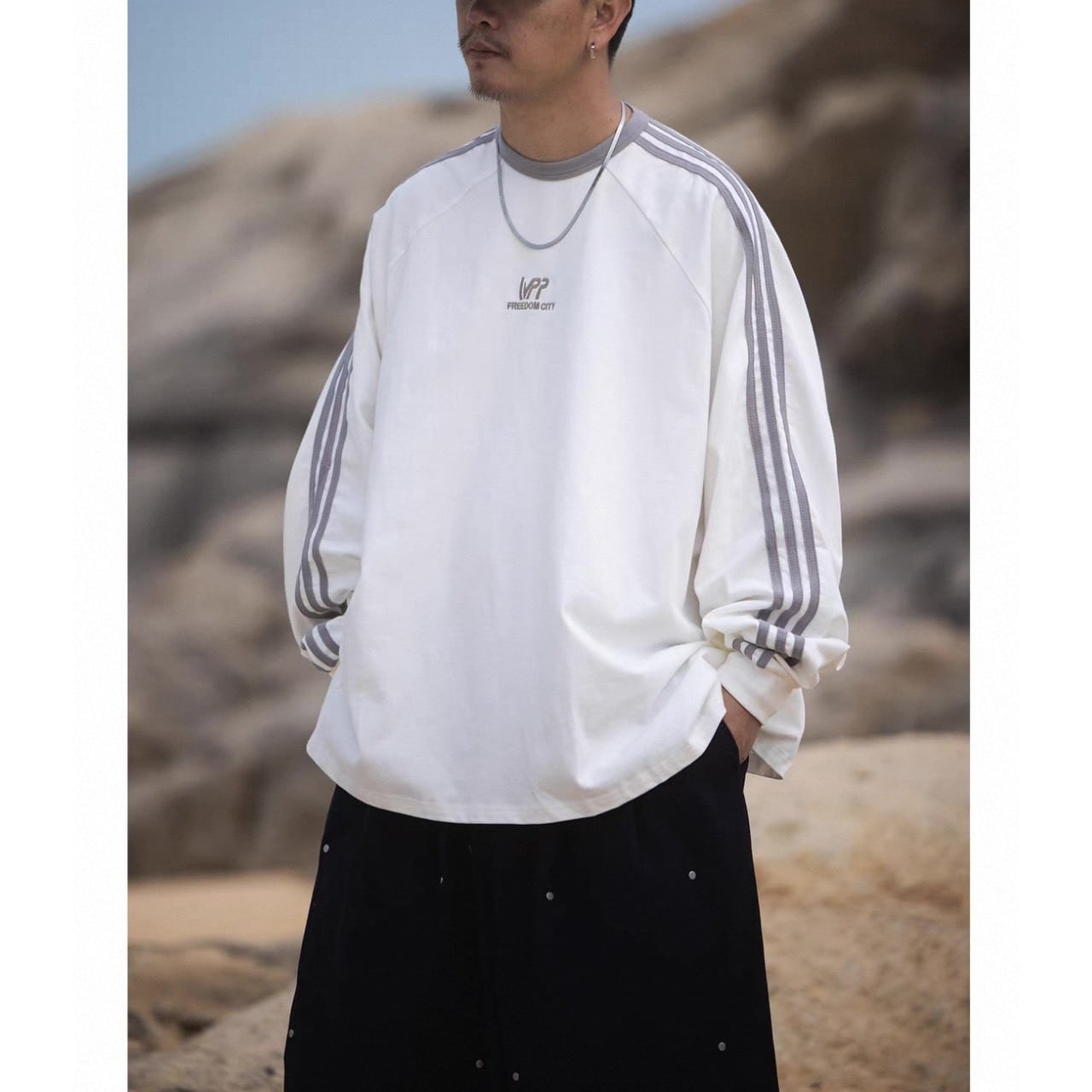 袖に施されたラインデザインが印象的なロングスリーブトップス。