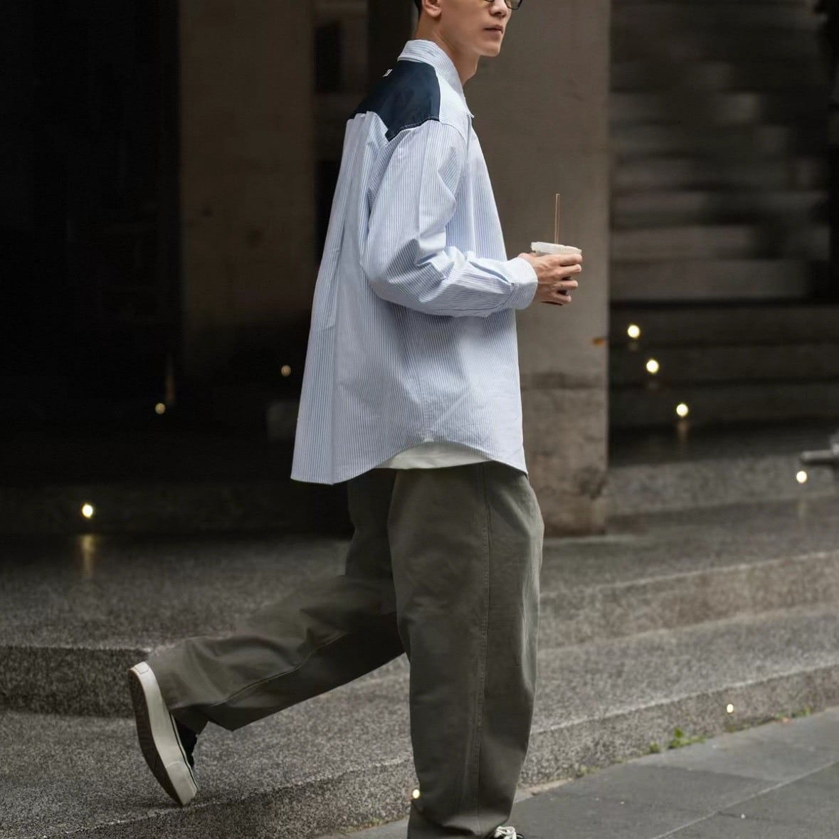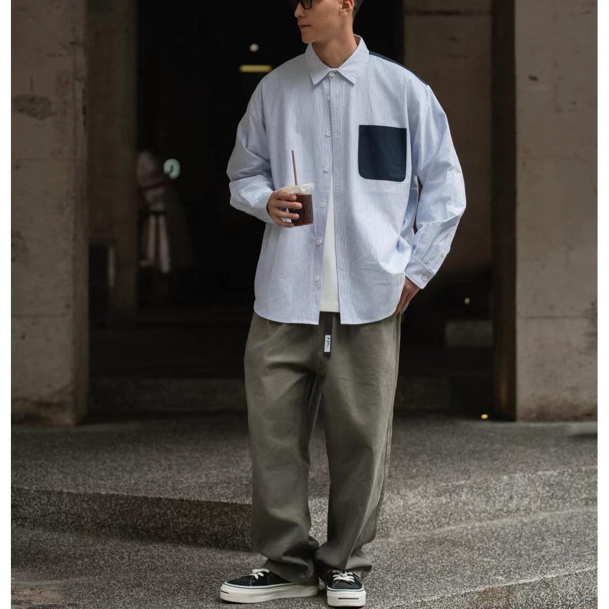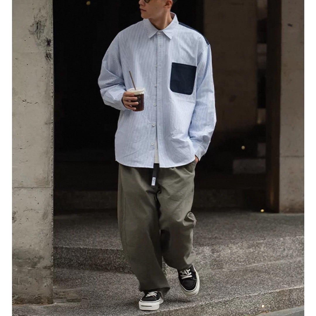 ボタンの開け閉めで印象を変えられるため、トップスとしても羽織りとしても取り入れやすいアイテムです。