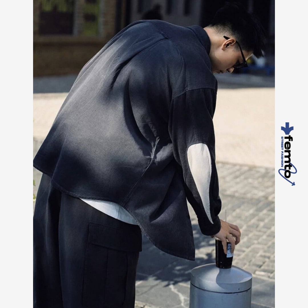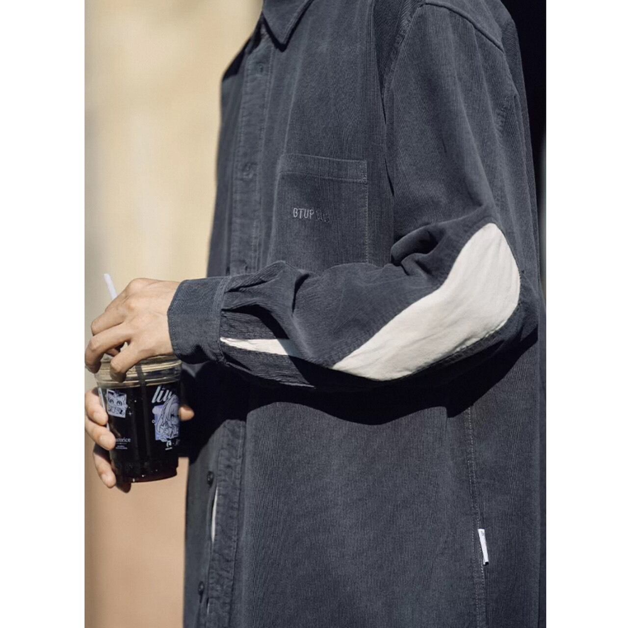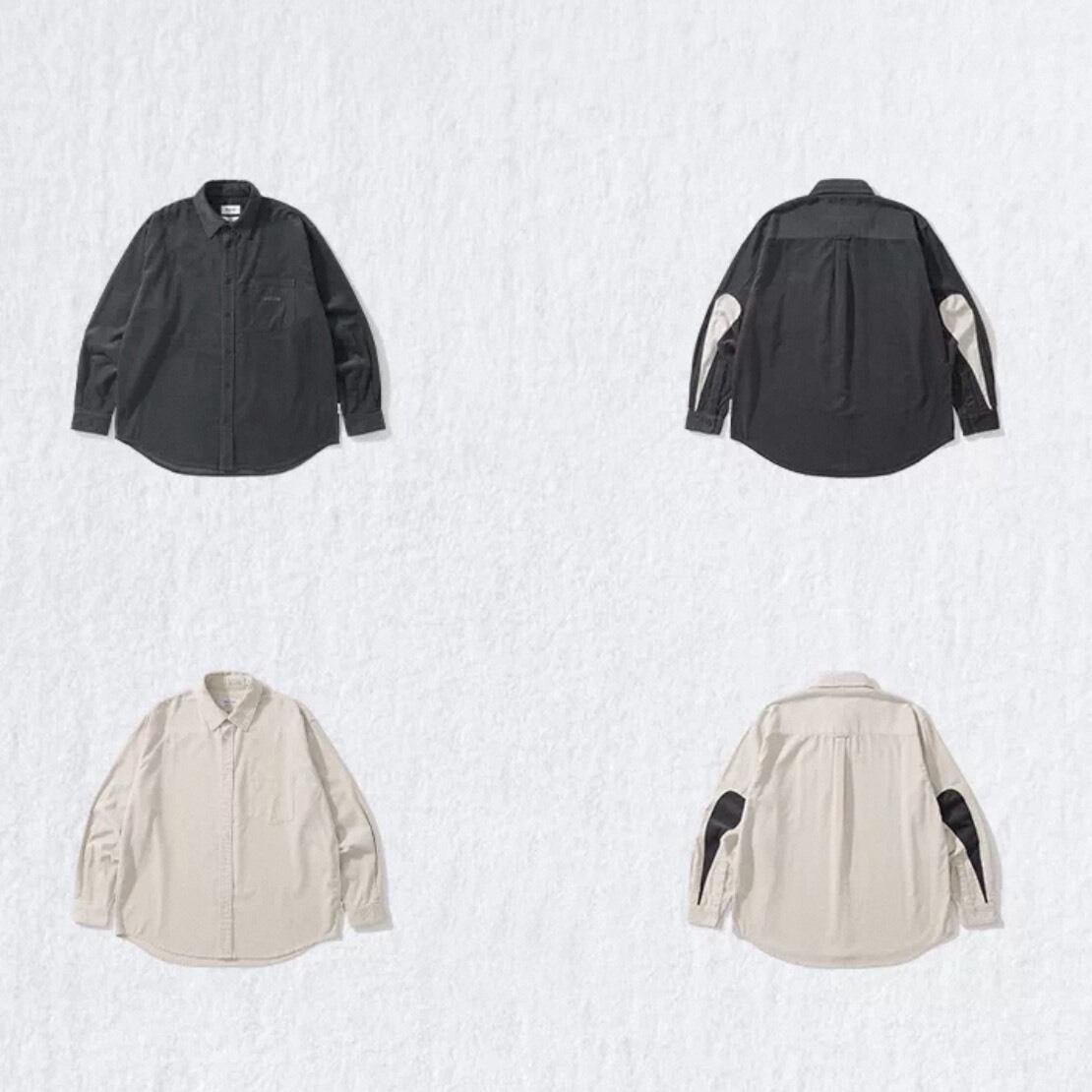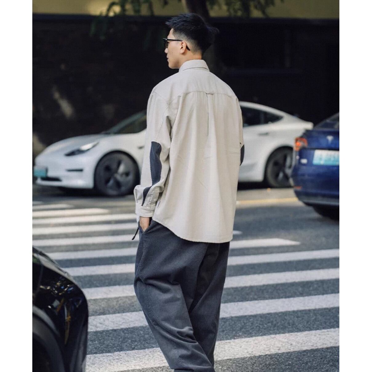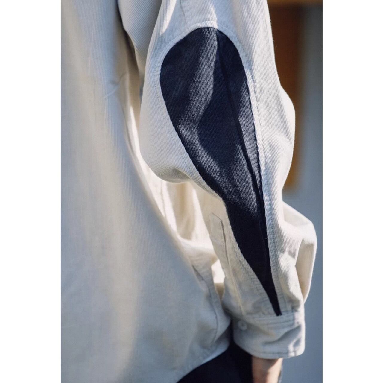 シンプルなシャツに、肘部分の切り替えデザインがアクセントとして映える一着。