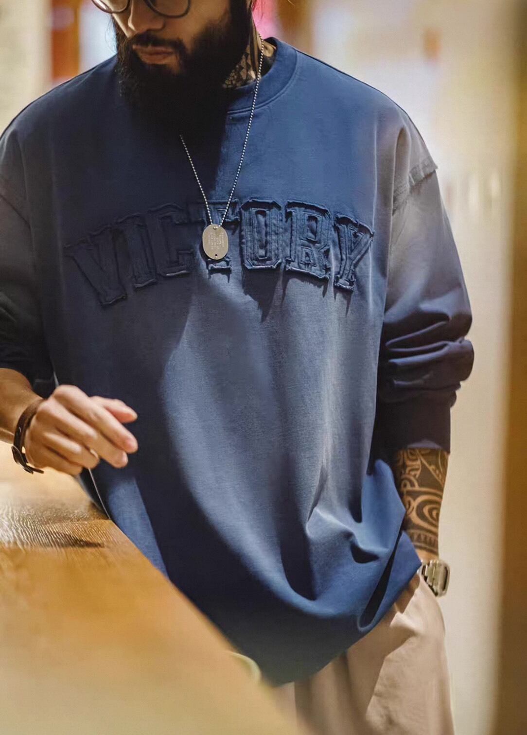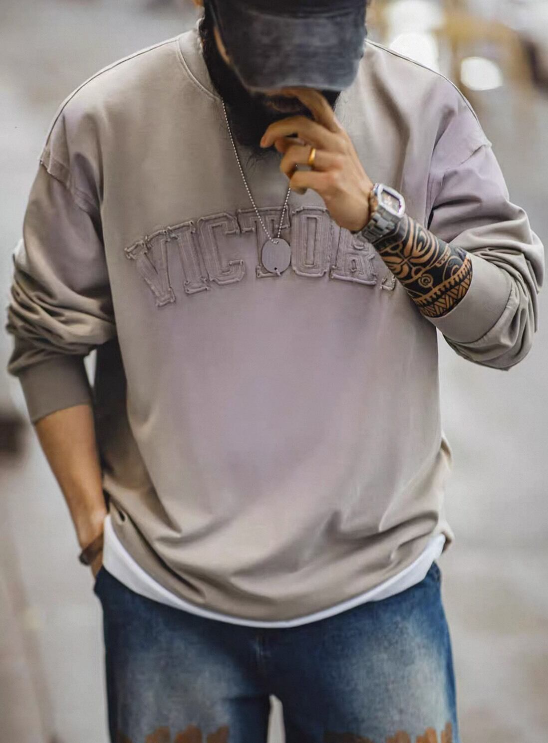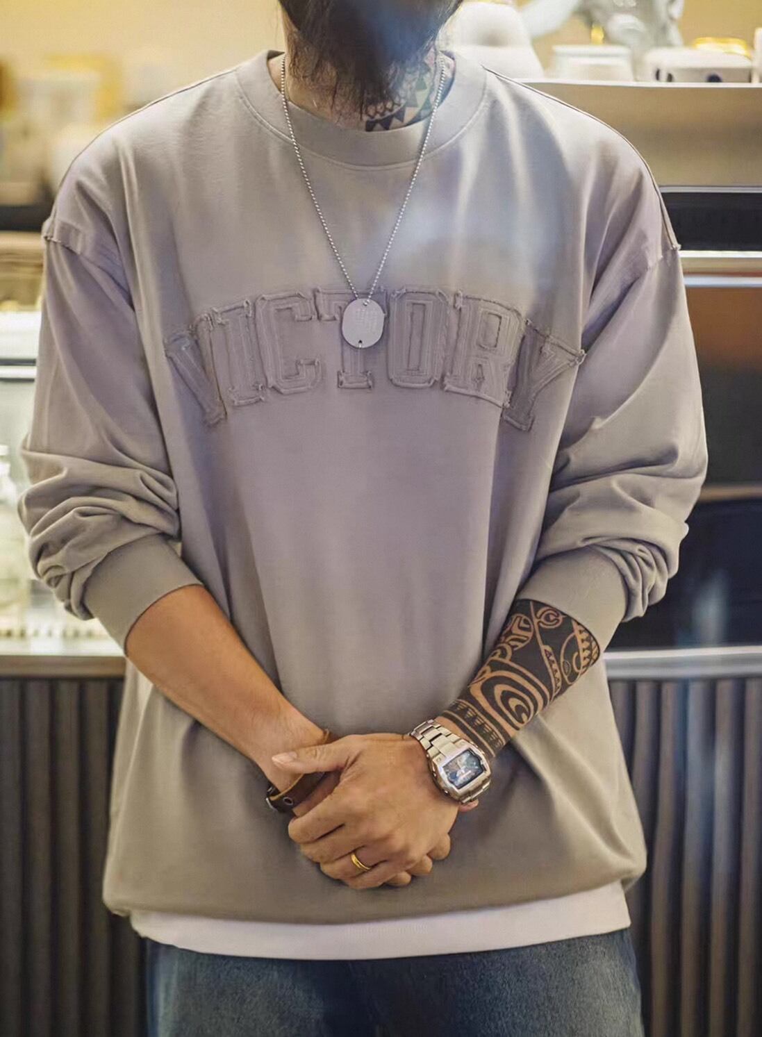 キャップやネックレスなどの小物とも相性が良く、デイリーコーデに自然と馴染むデザインです。