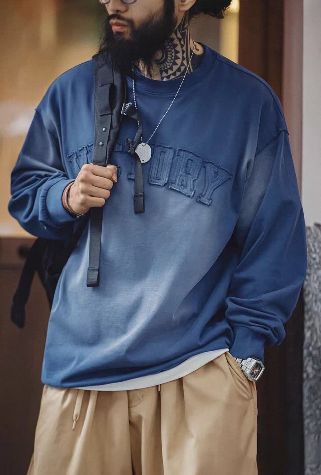 シンプルなデザインながら存在感があり、ストリートスタイルからカジュアルコーデまで幅広く活躍します。