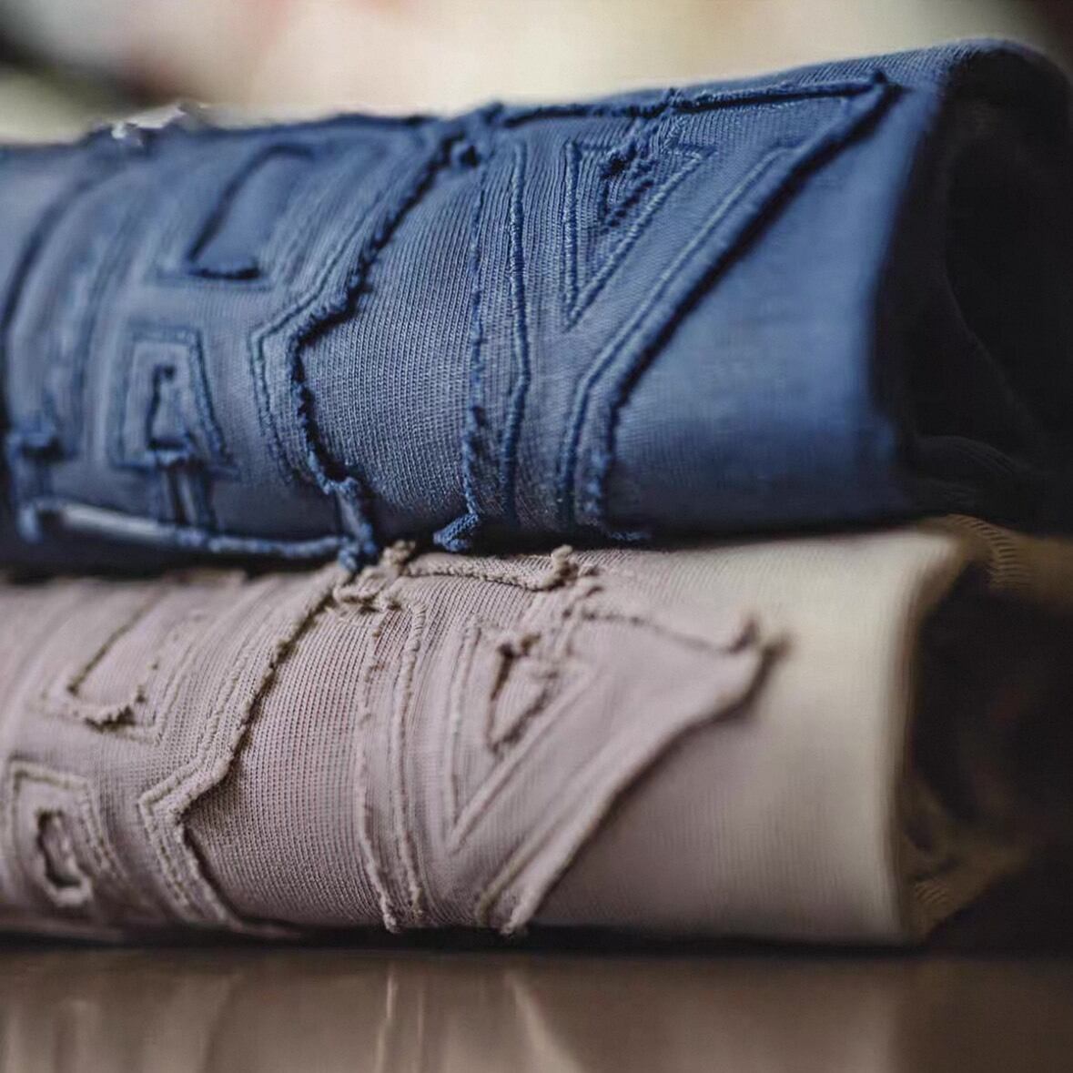 フロントに施された立体感のあるアーチロゴが、コーディネートの主役になる一着。