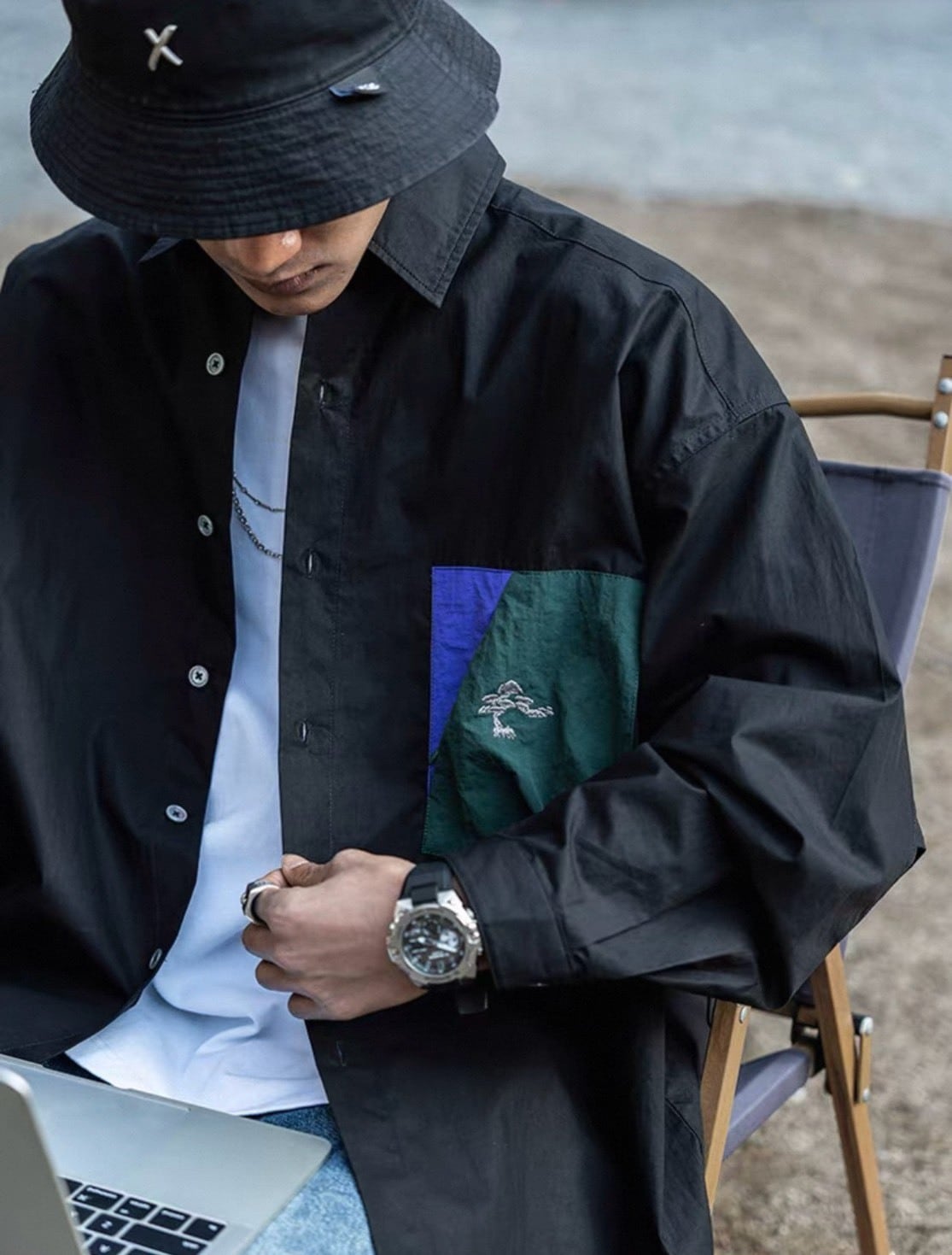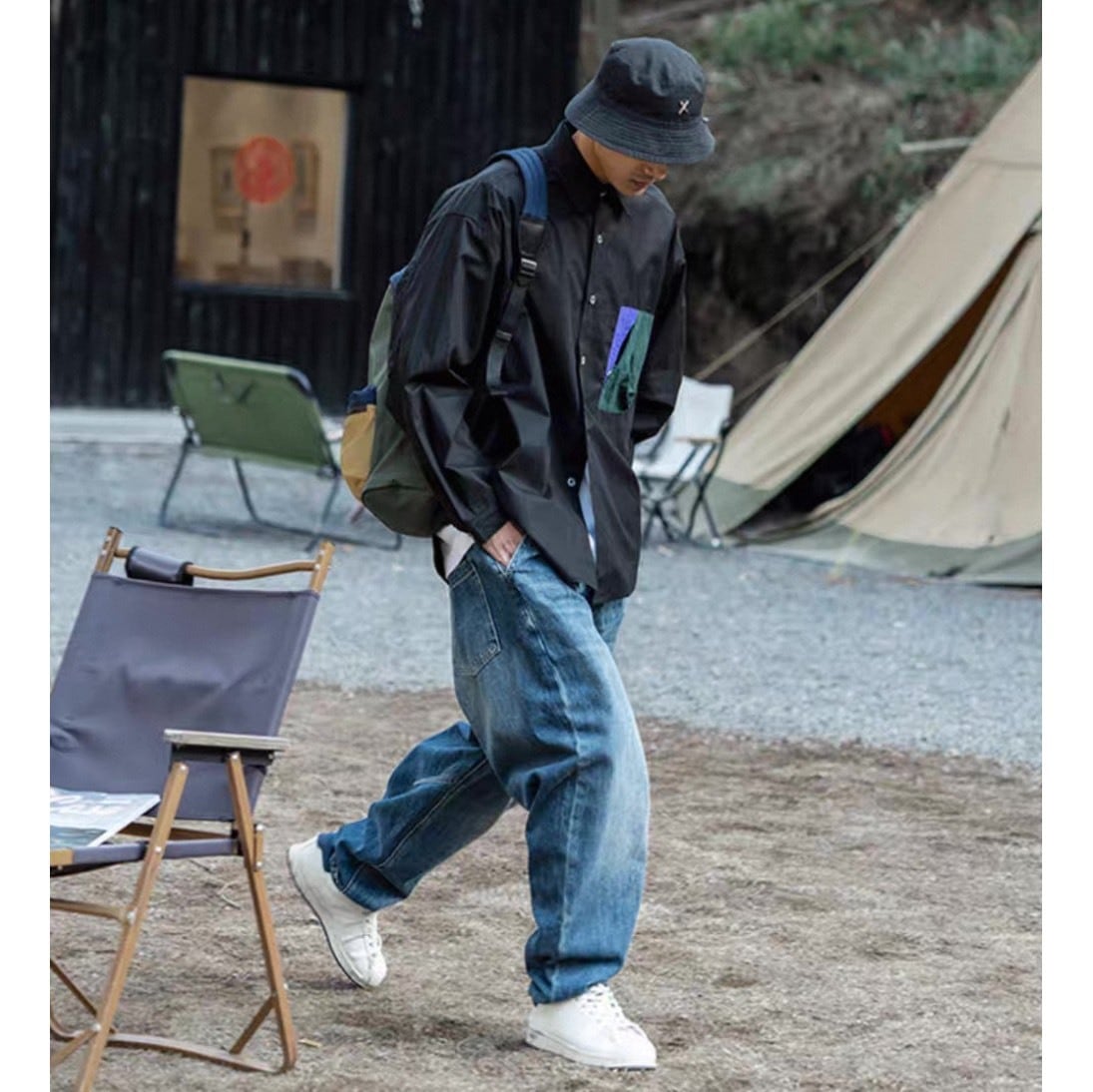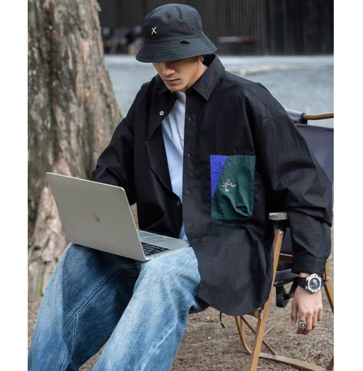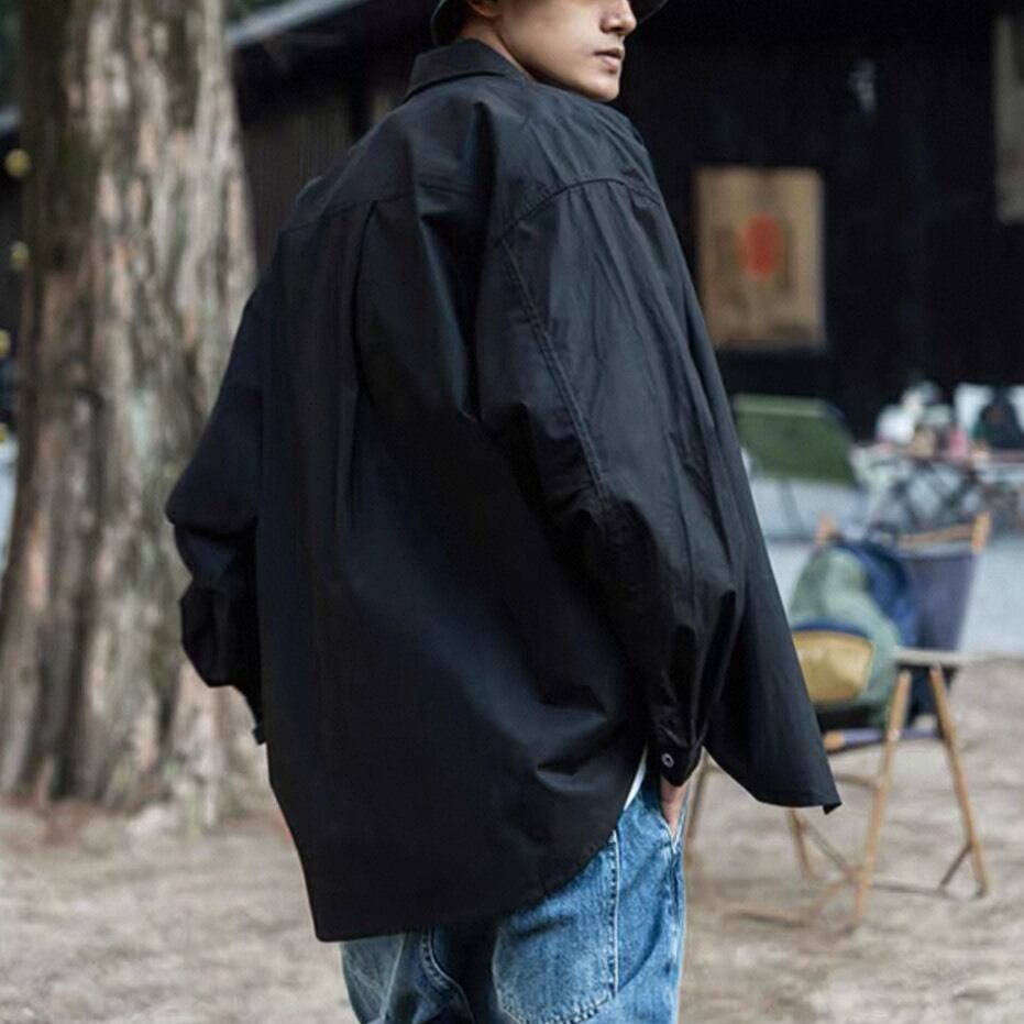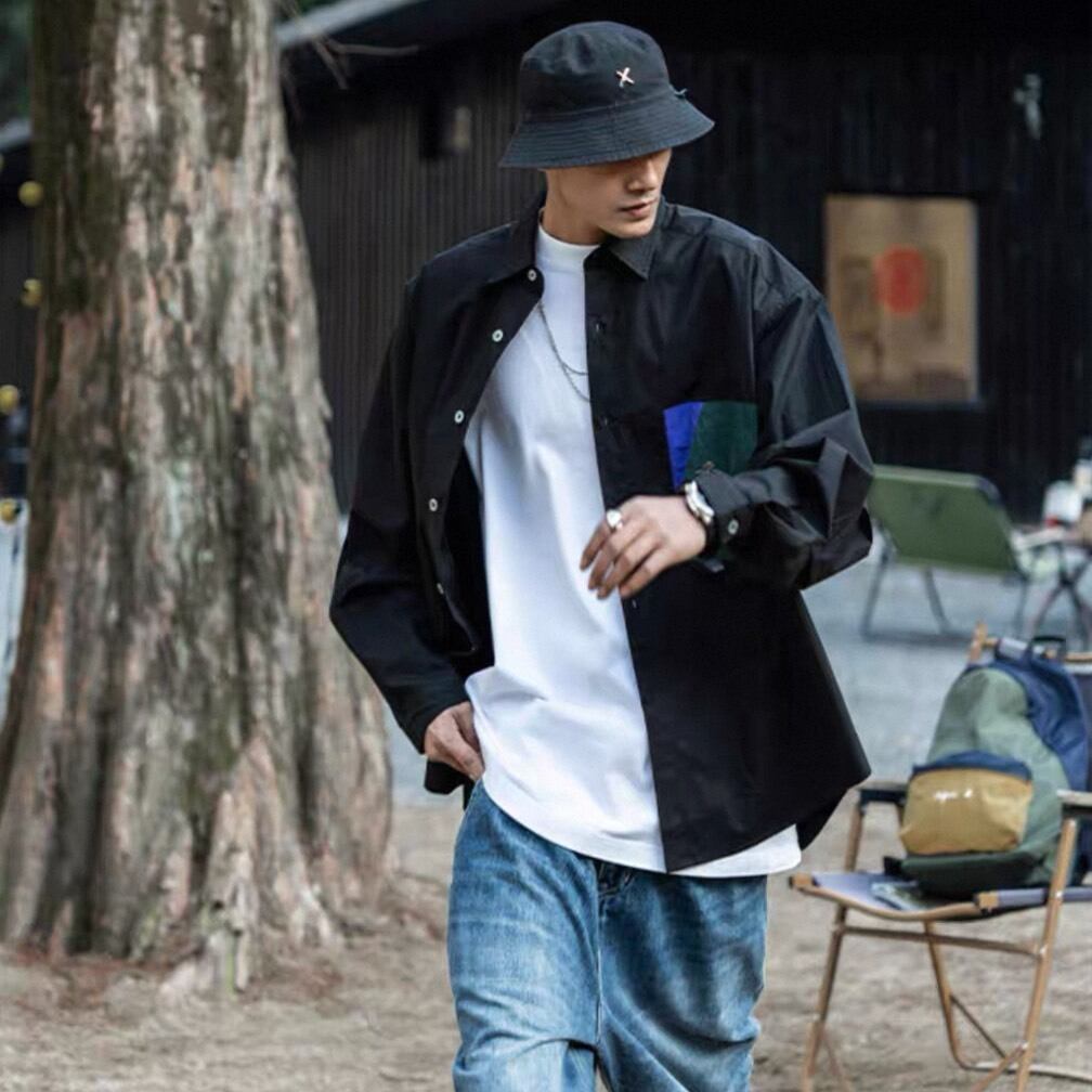 デニムやワイドパンツ、カーゴパンツなどさまざまなボトムと合わせやすく、カジュアルからストリートスタイルまで幅広く対応。ボタンを開けて羽織りとして取り入れることで、レイヤードスタイルも楽しめます。