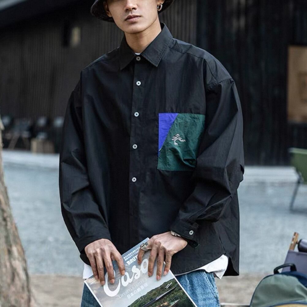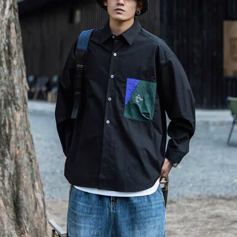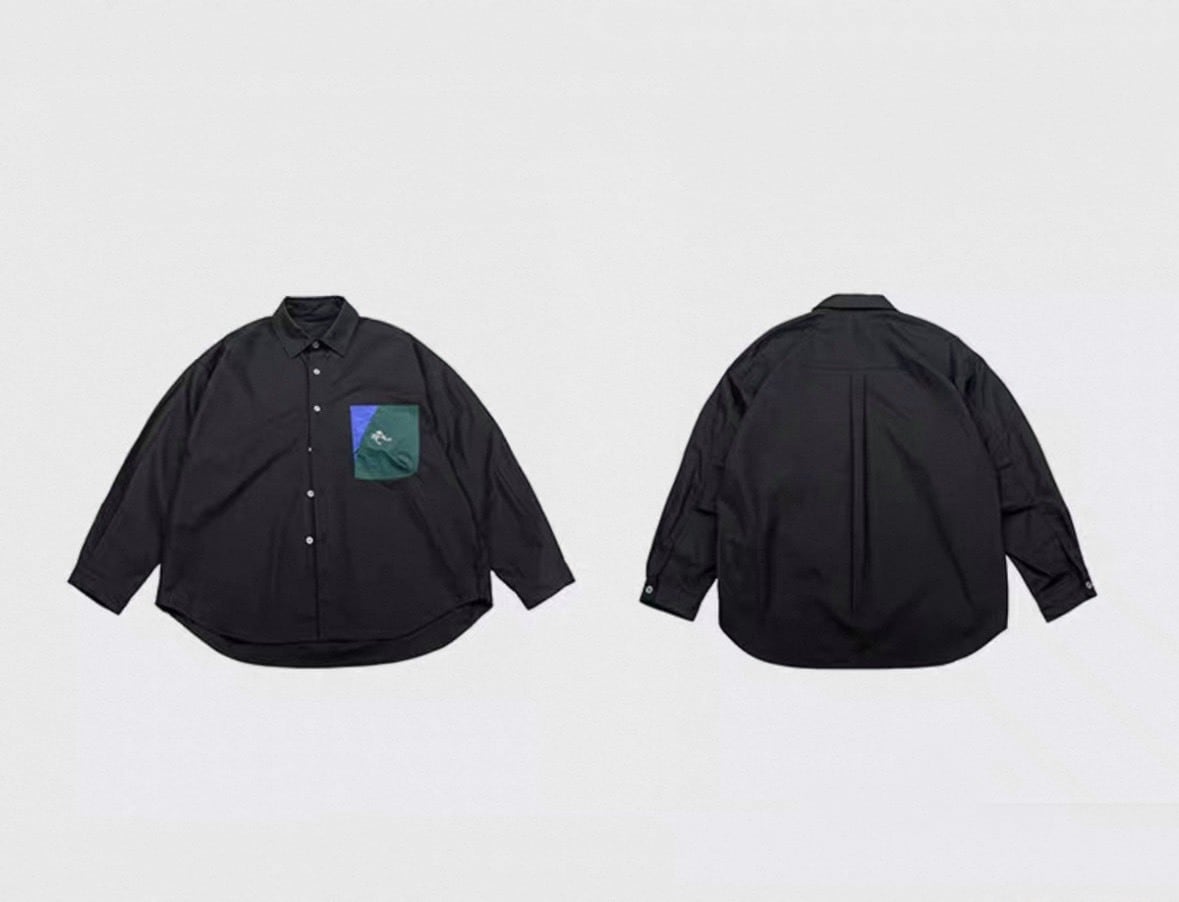 フロントに施されたデザインポケットが印象的なシャツ。
