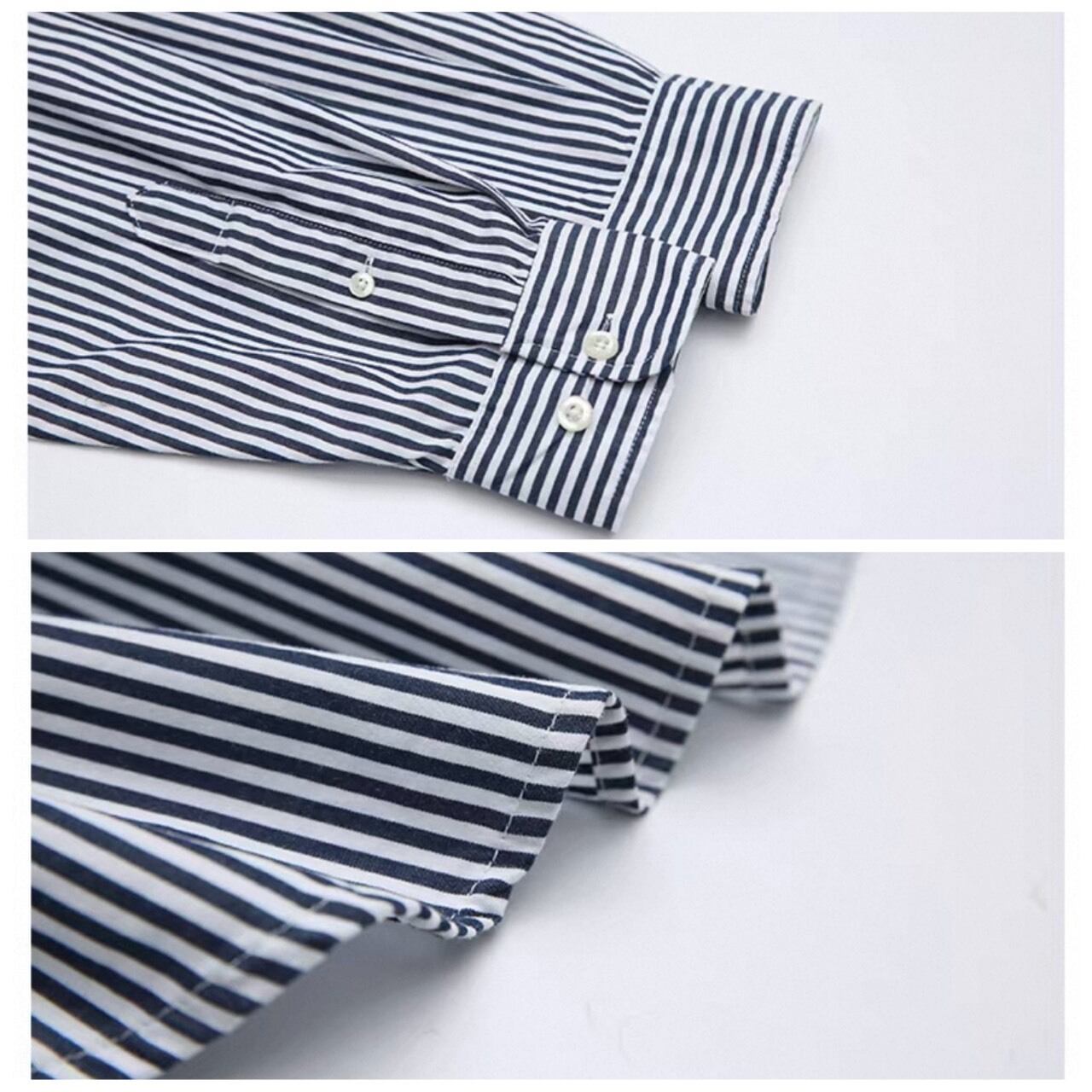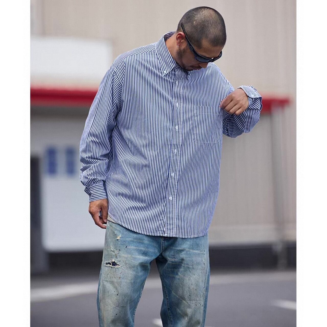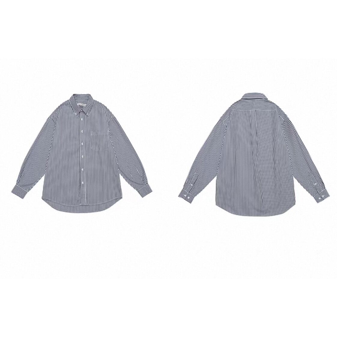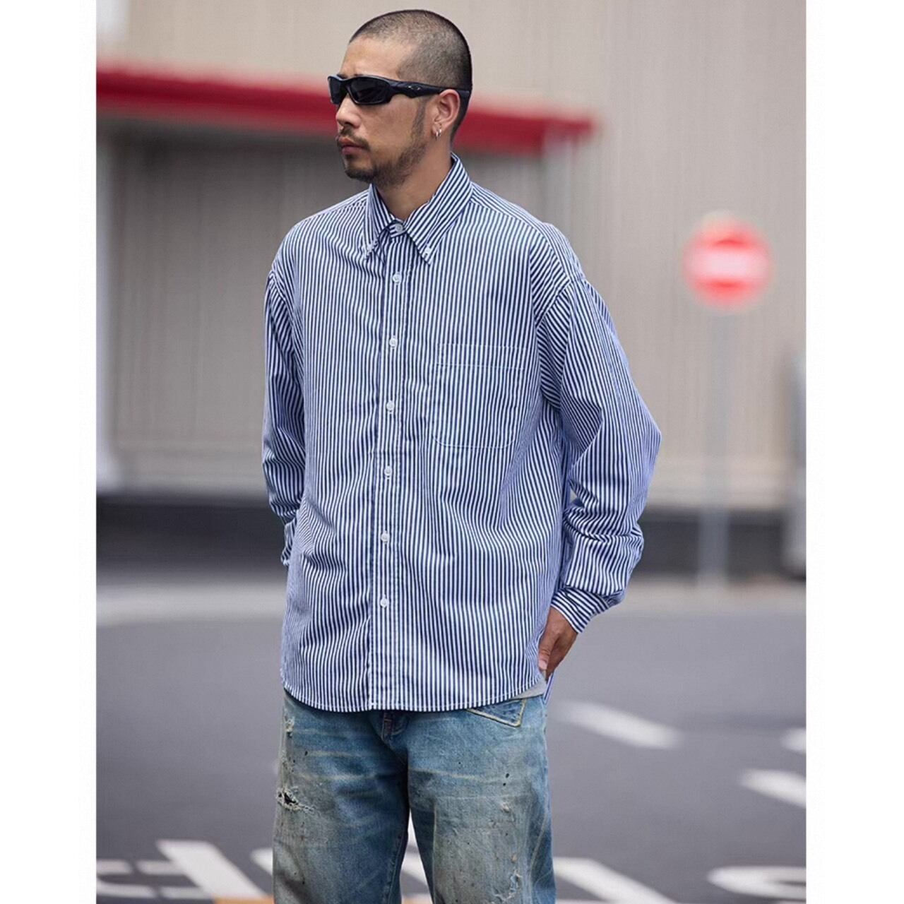 縦のストライプ柄が印象的なシャツ。