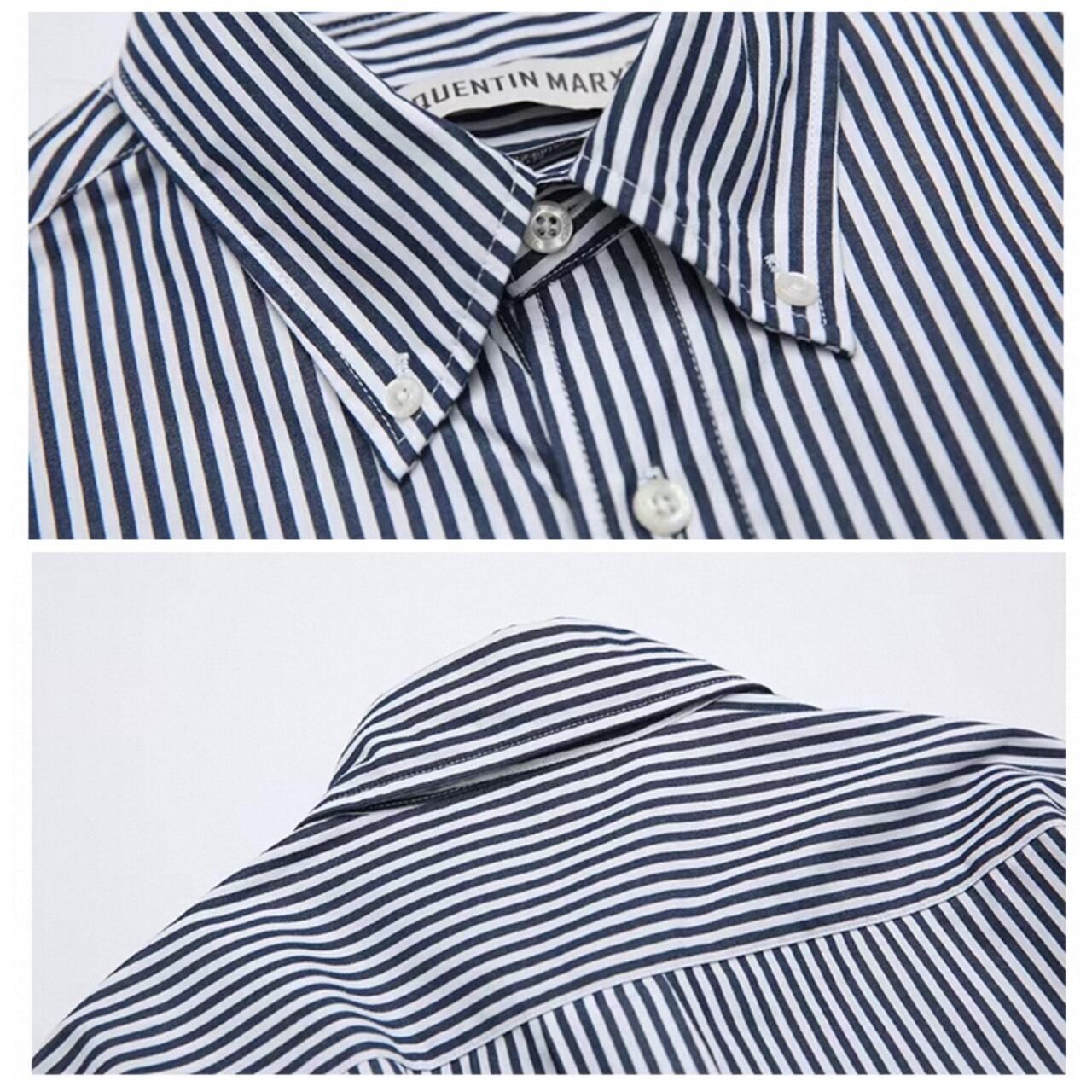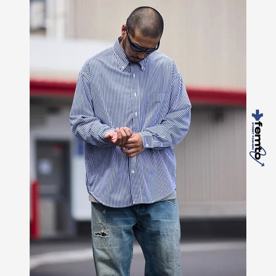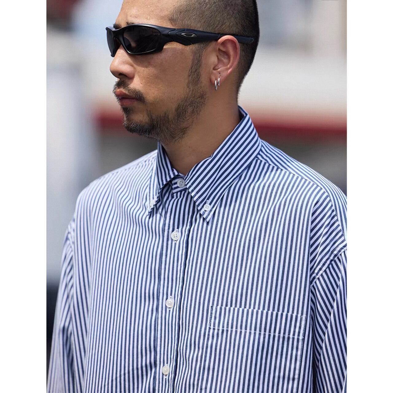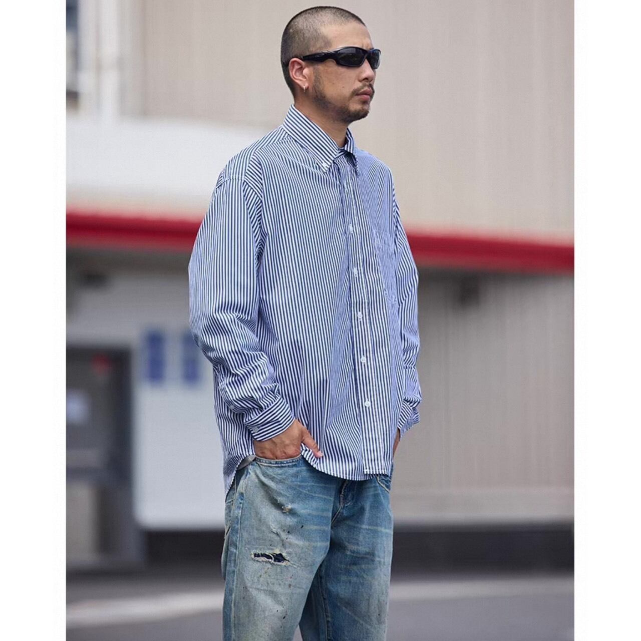 縦のストライプ柄が印象的なシャツ。