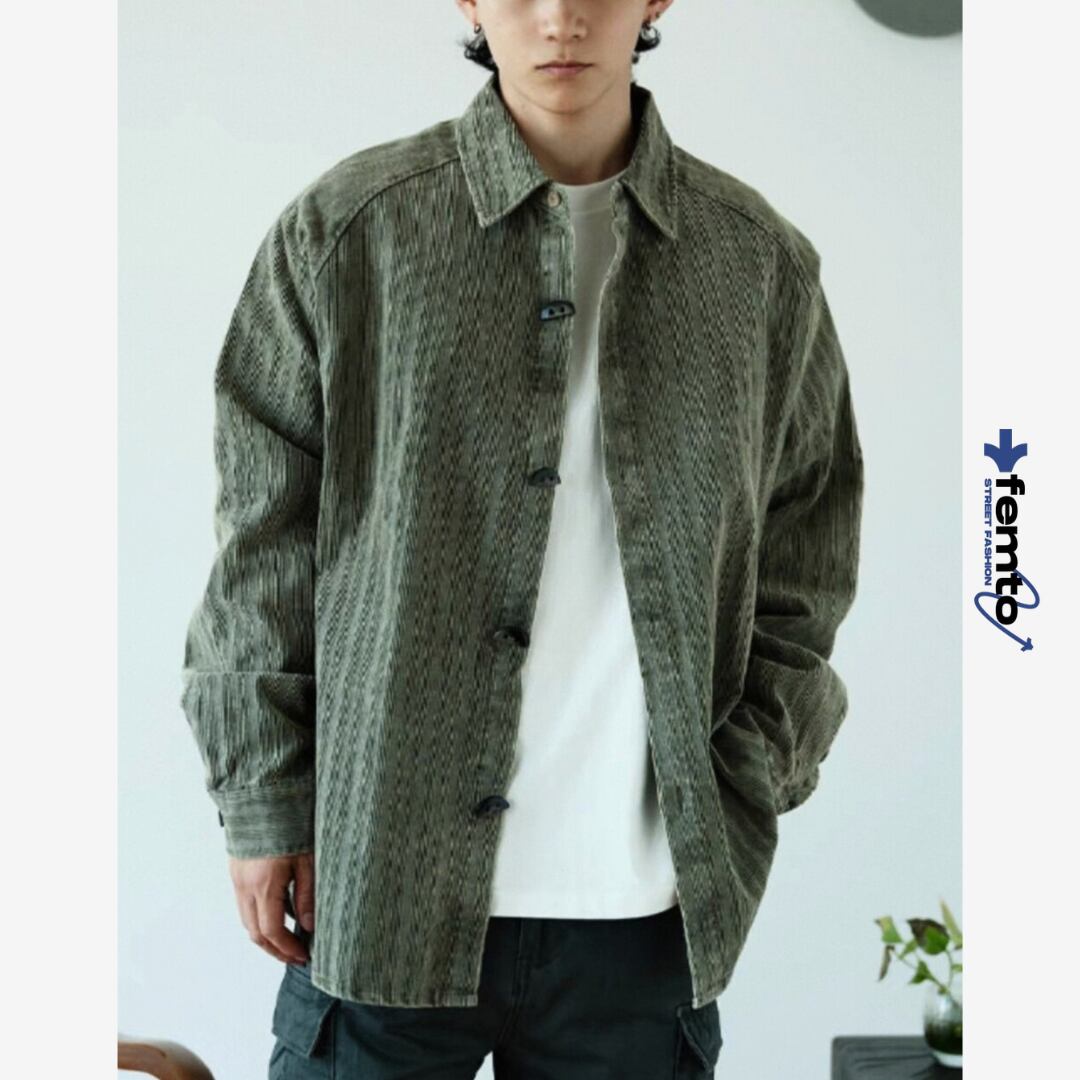 スタイリングにさりげない個性を加える柄デザインのカジュアルシャツ。