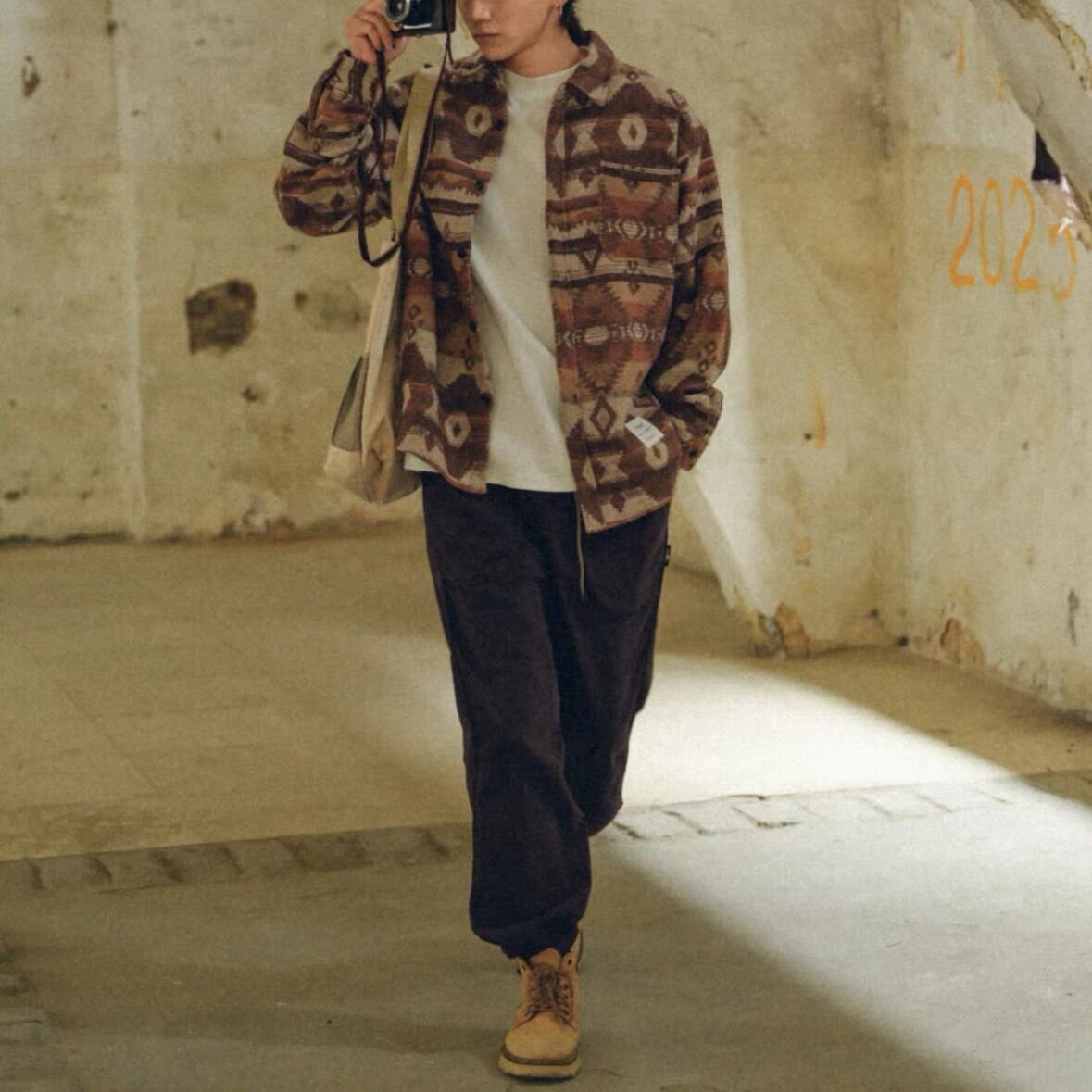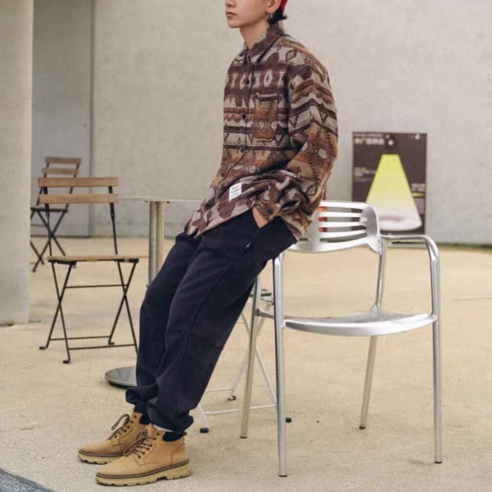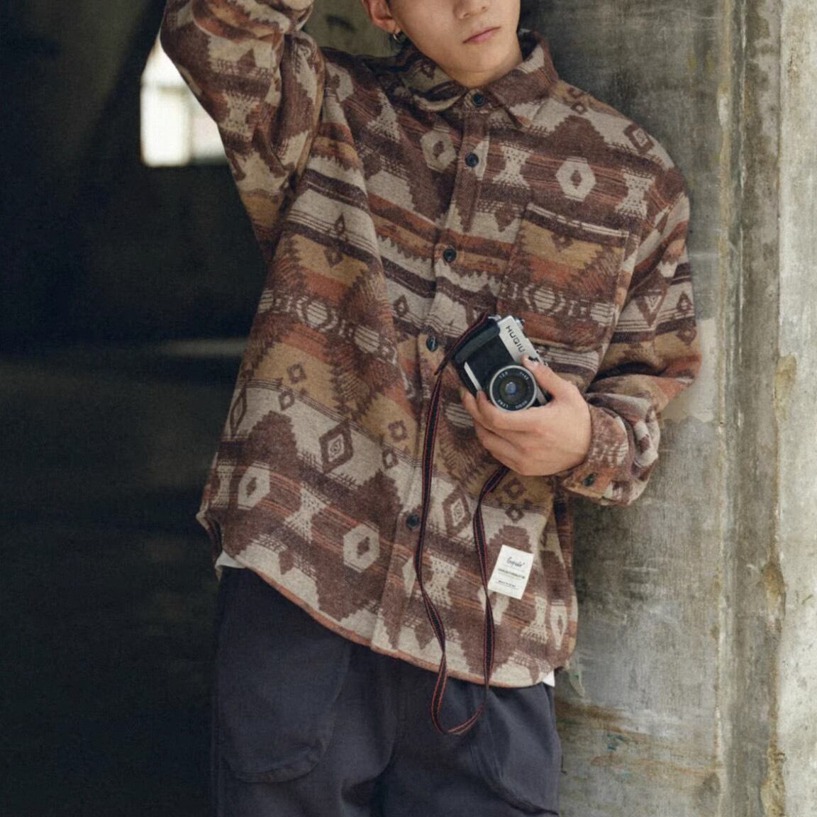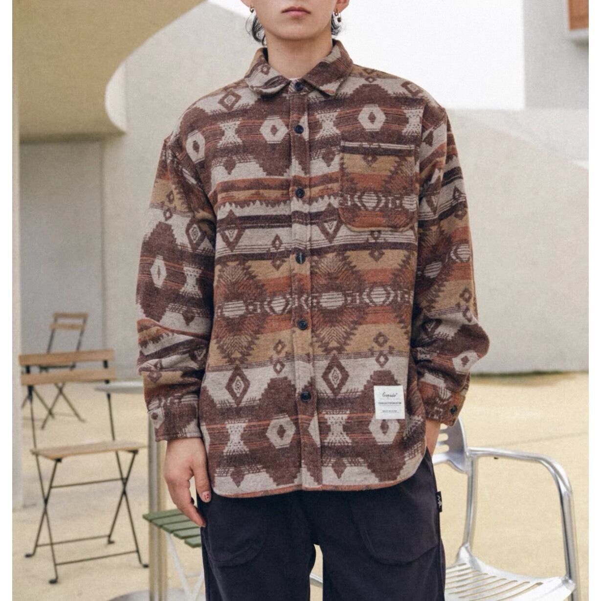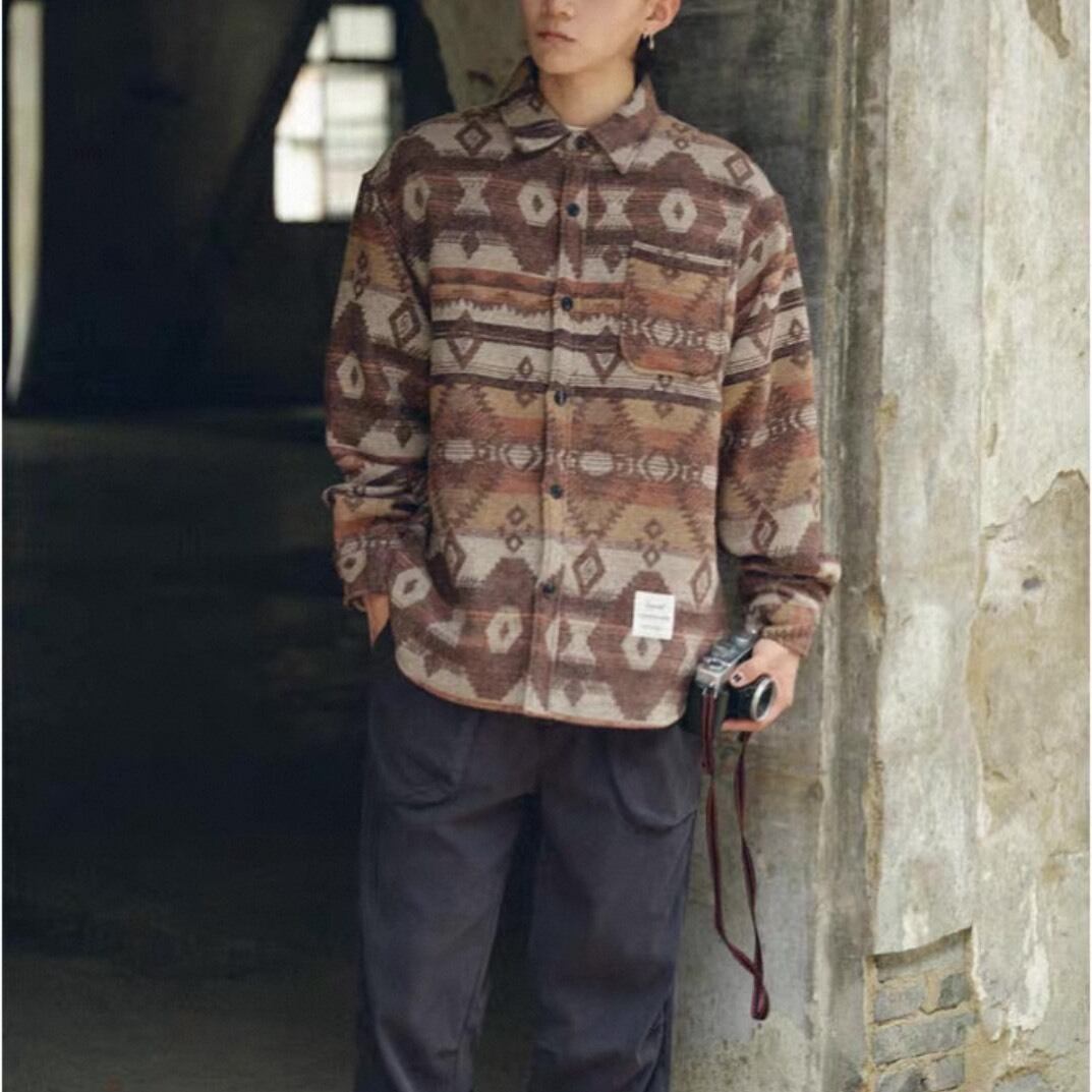 個性的な柄がスタイリングに立体感を生み出し、シンプルな着こなしでも存在感のあるスタイルを演出します。