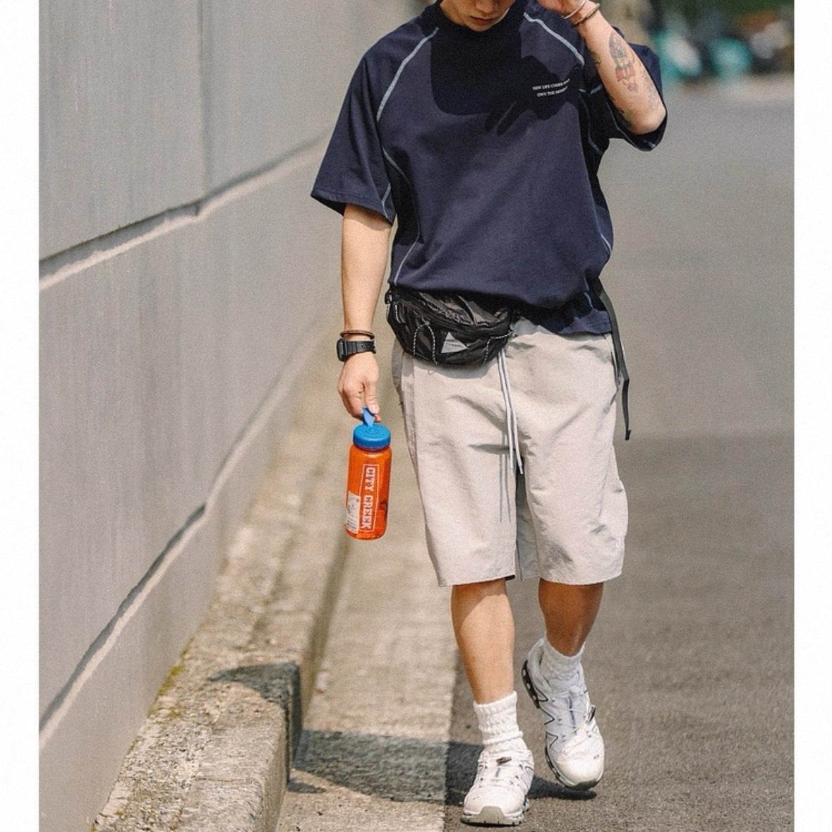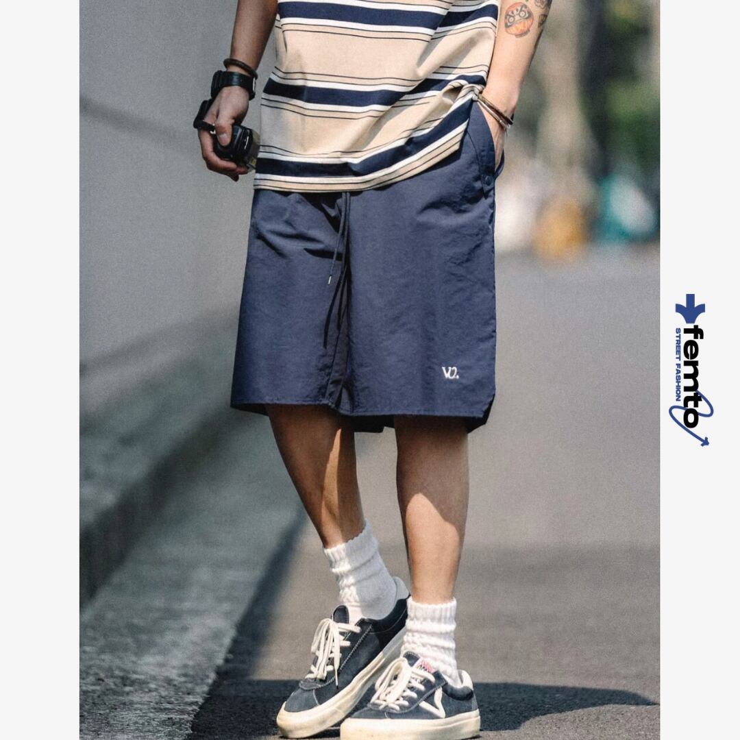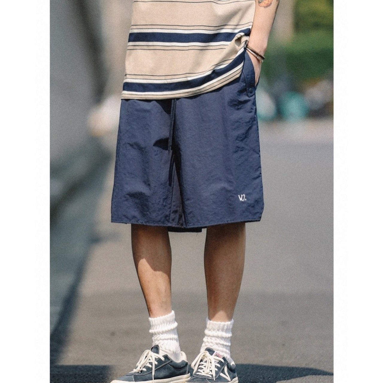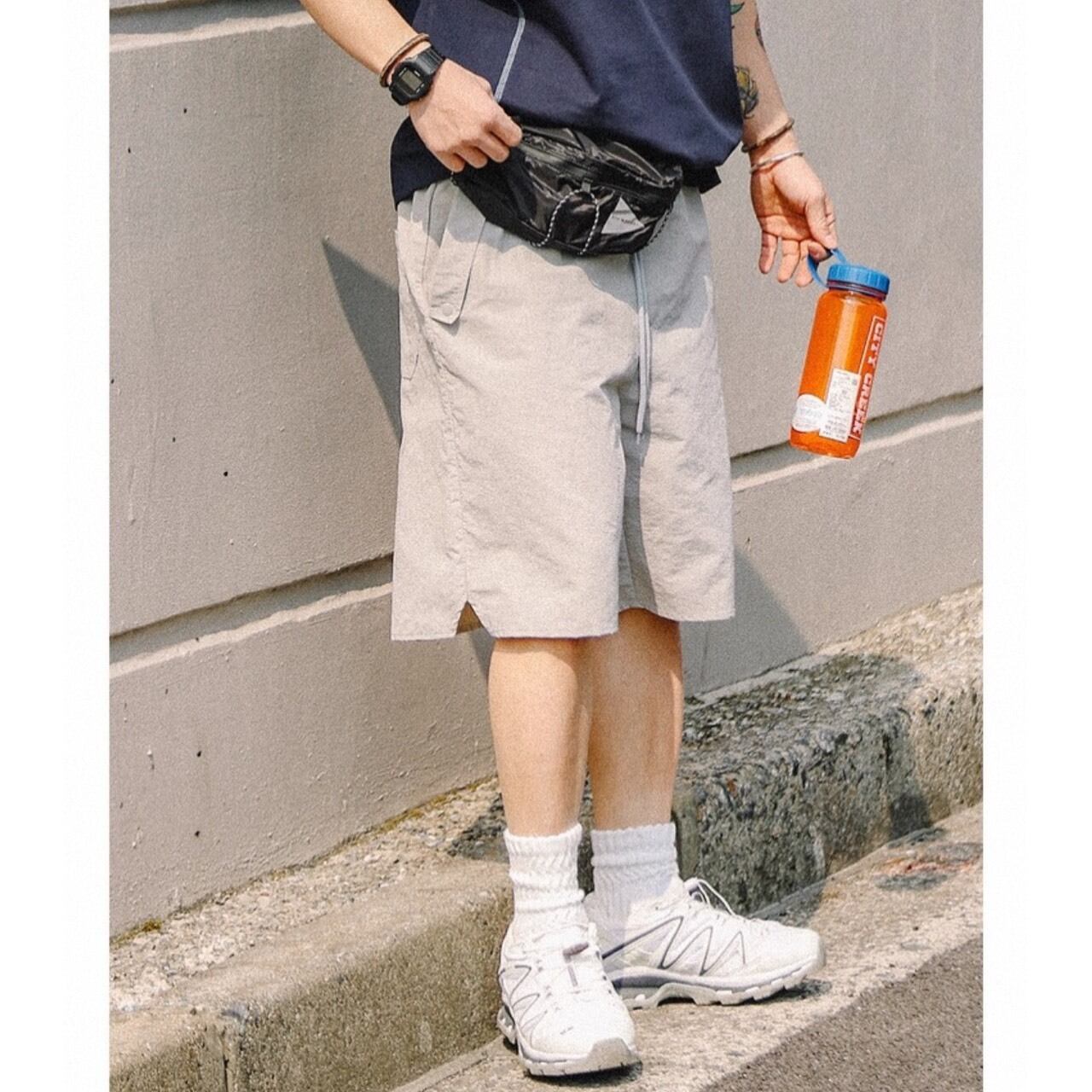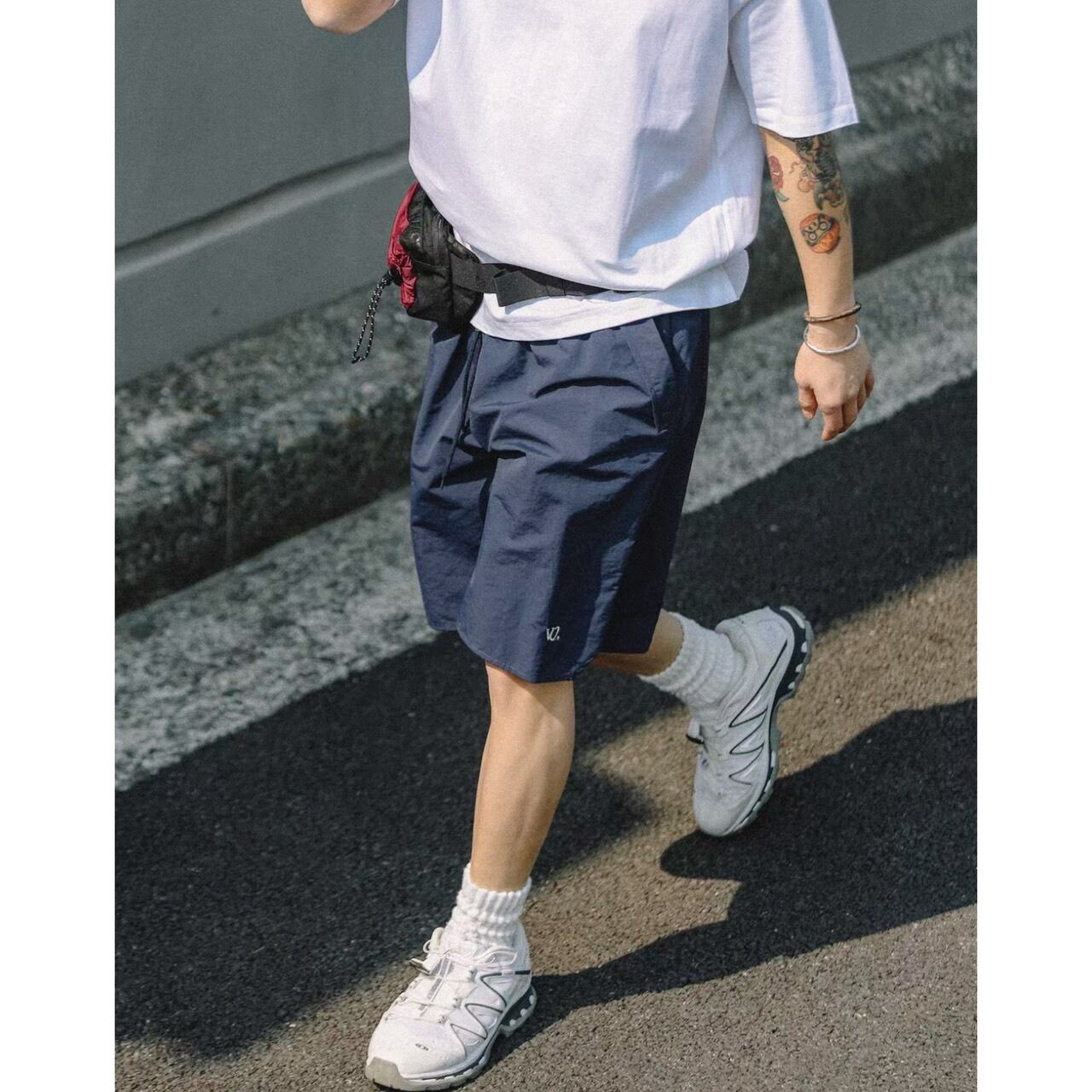 さりげなく配置されたワンポイントロゴが、シンプルな中に程よいアクセントを加えるミドル丈ショーツ。