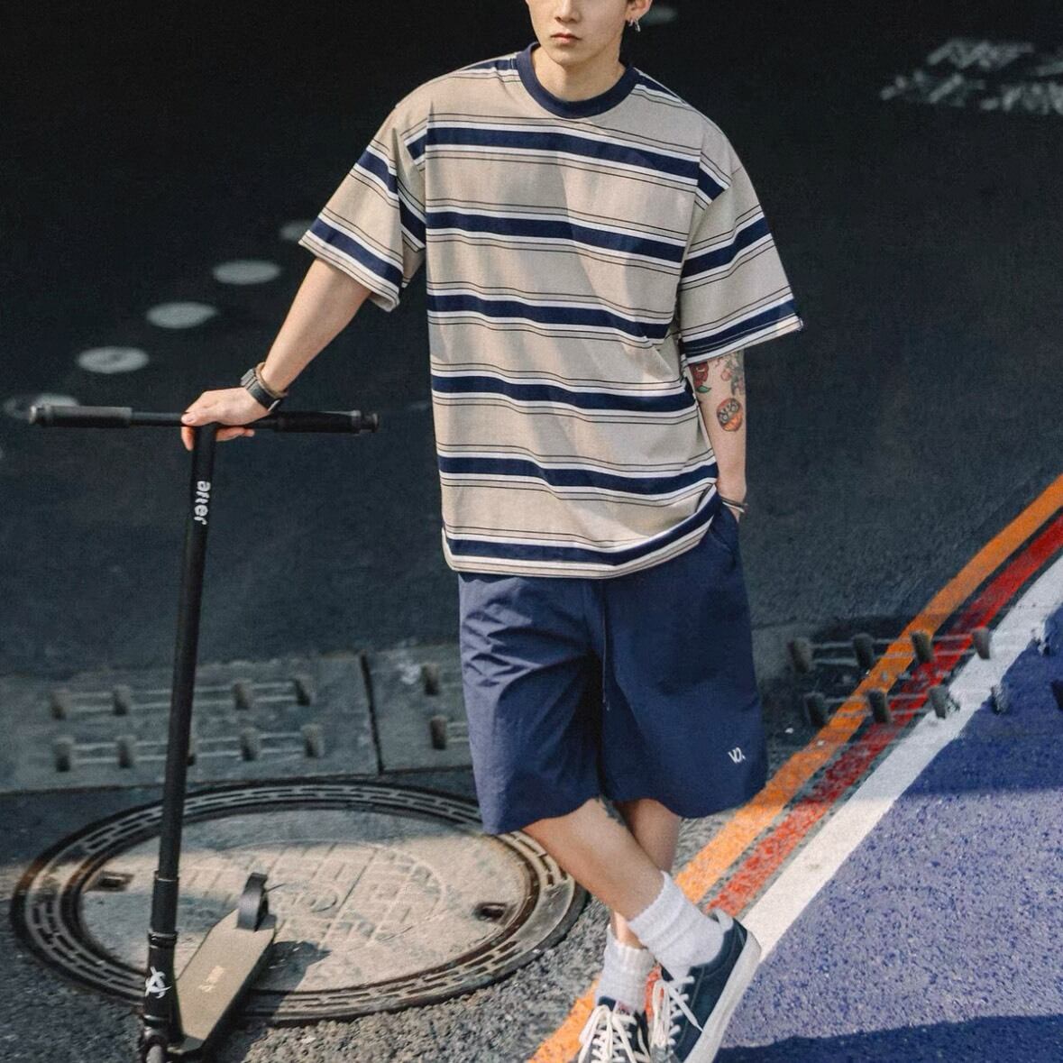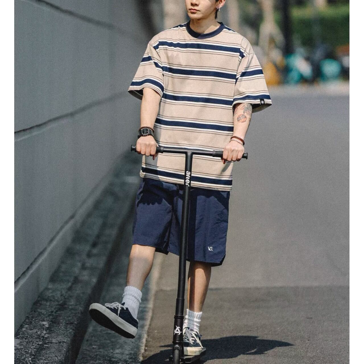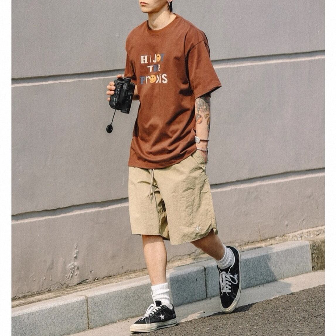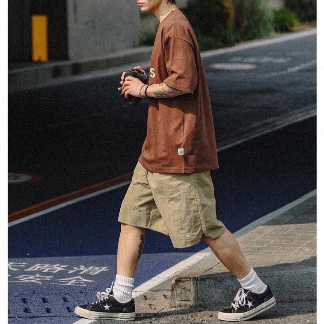 さりげなく配置されたワンポイントロゴが、シンプルな中に程よいアクセントを加えるミドル丈ショーツ。