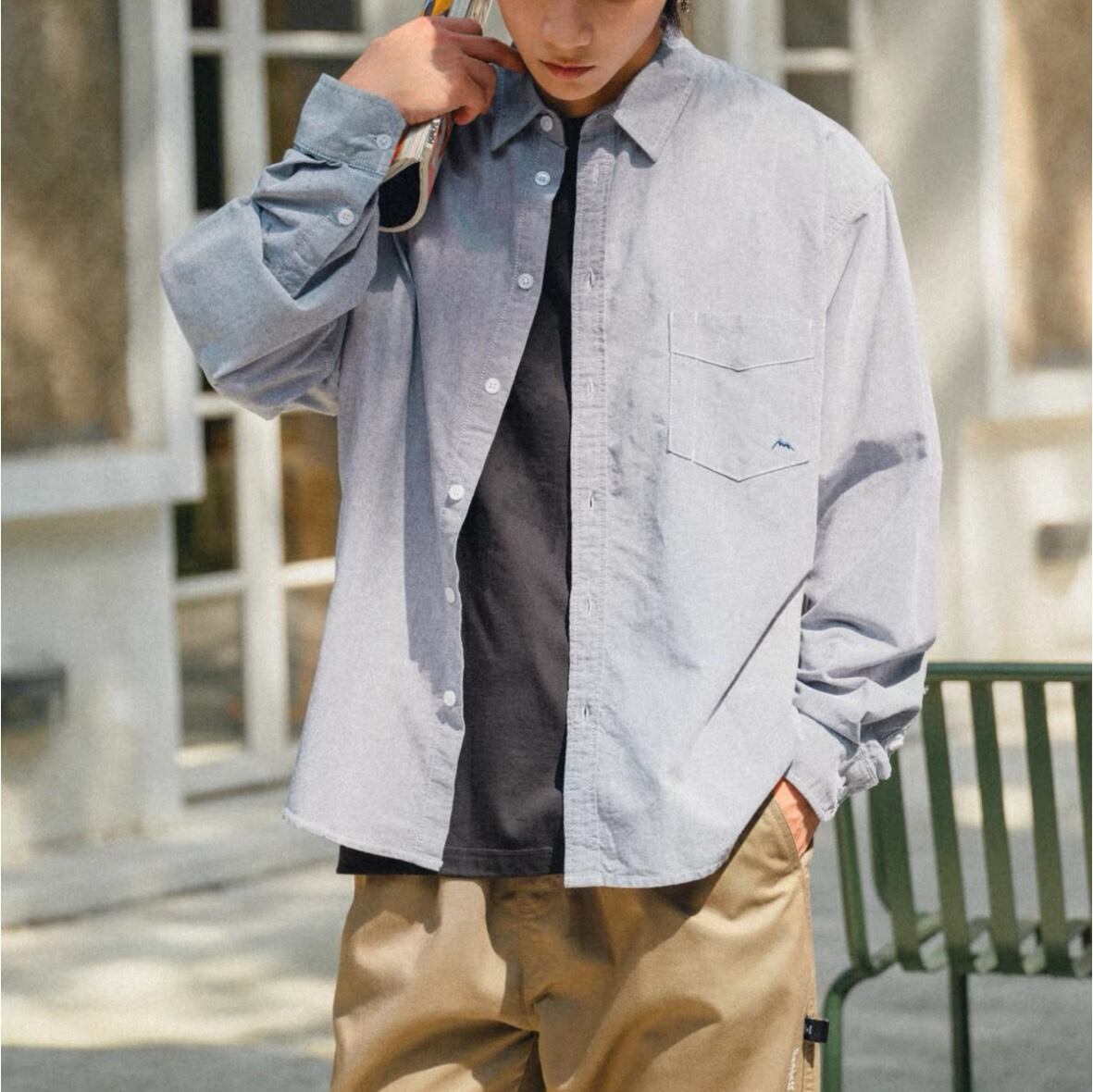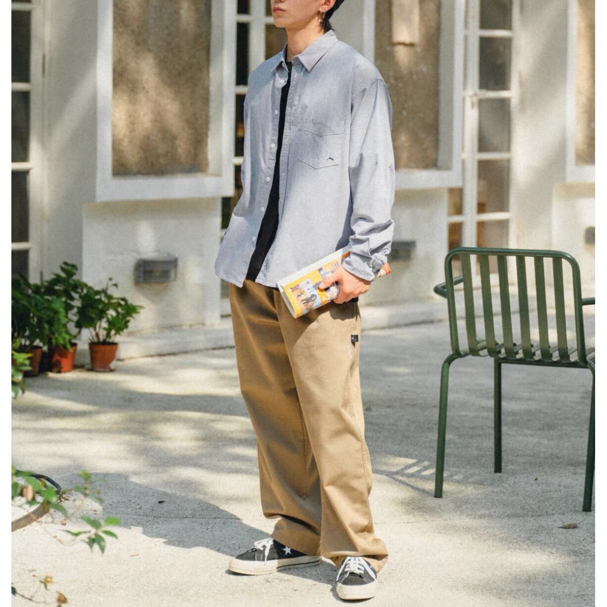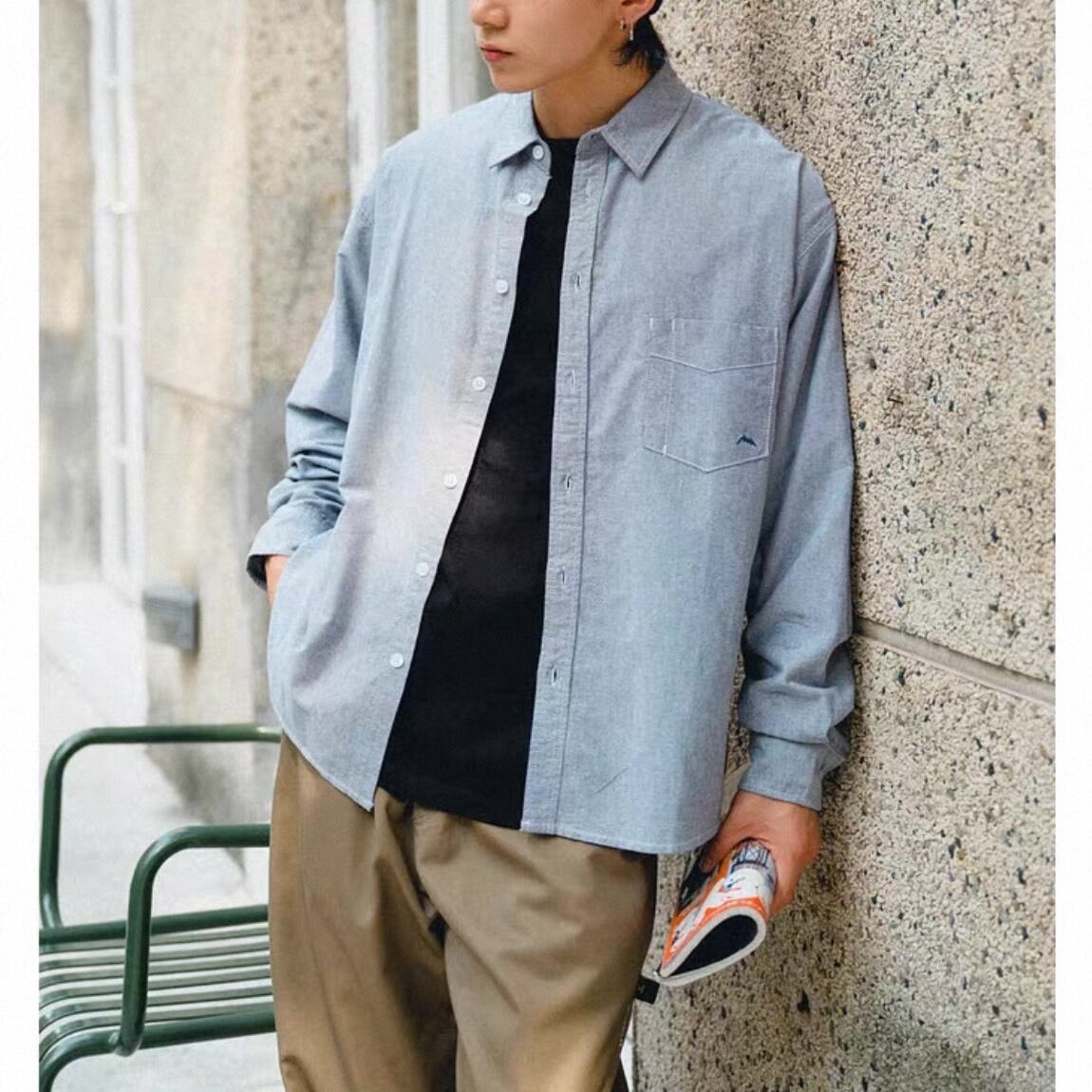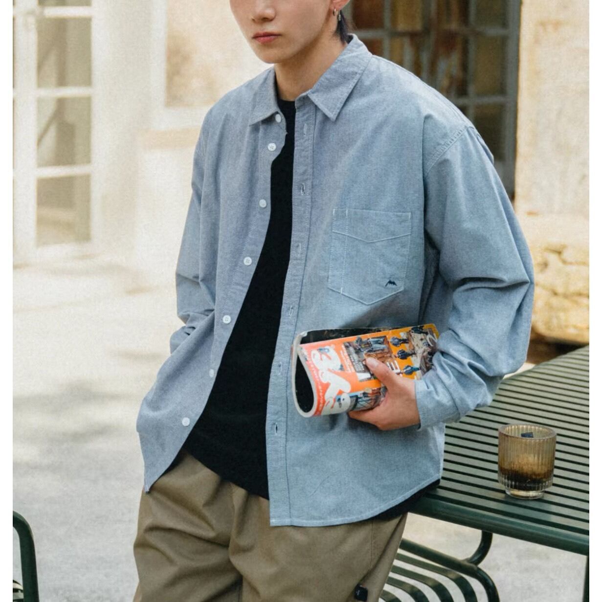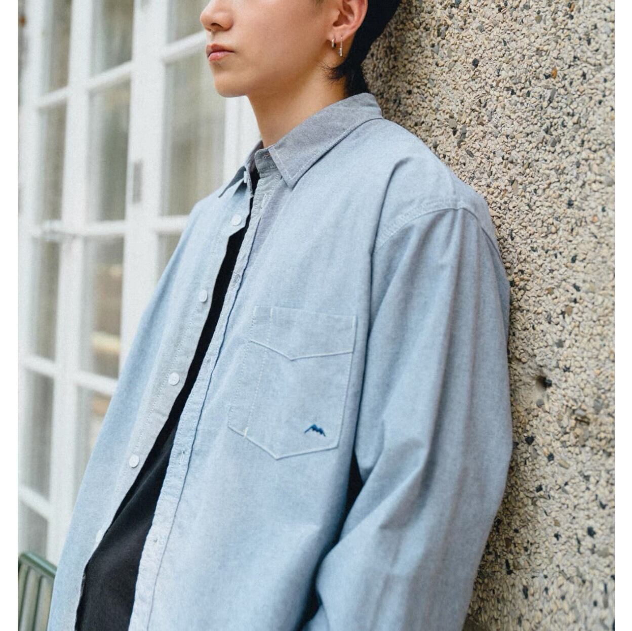 胸ポケットのワンポイント刺繍が、さりげない存在感を放つシャツ。