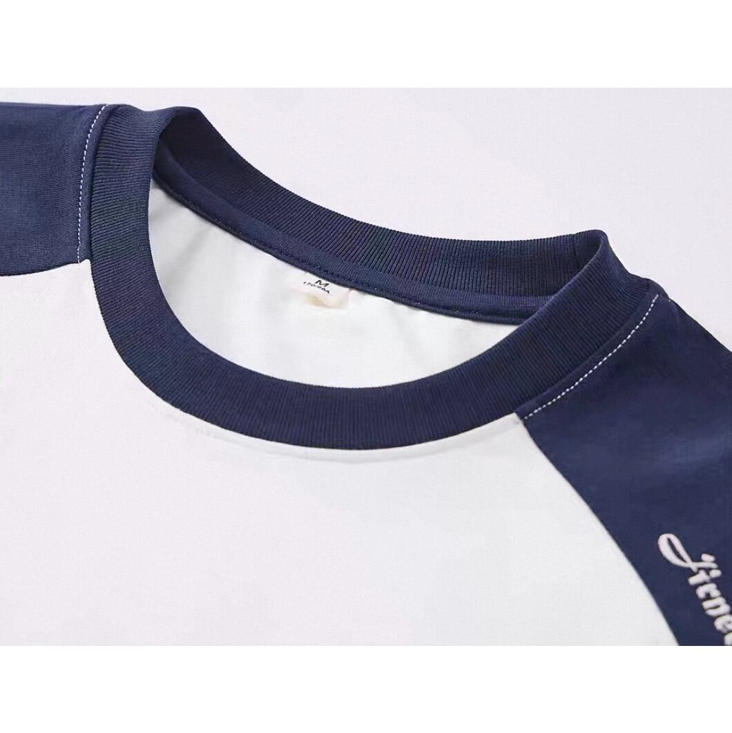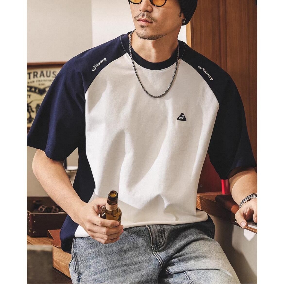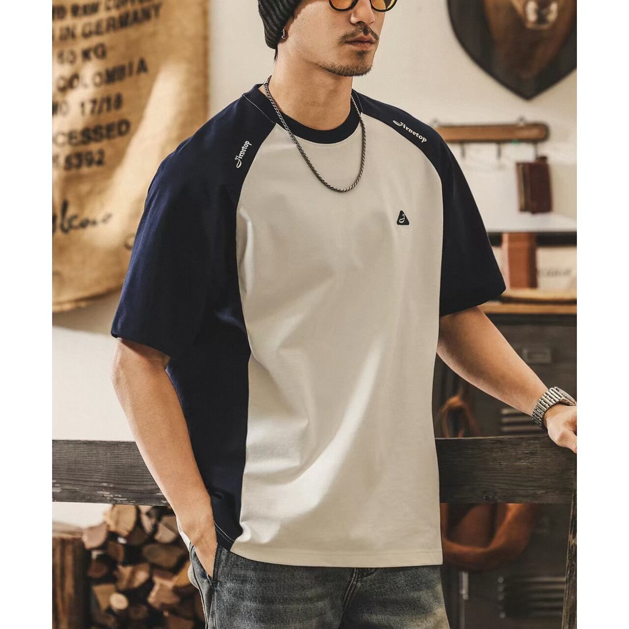 シンプルな中に切替デザインが映えるラグランスリーブTシャツ。