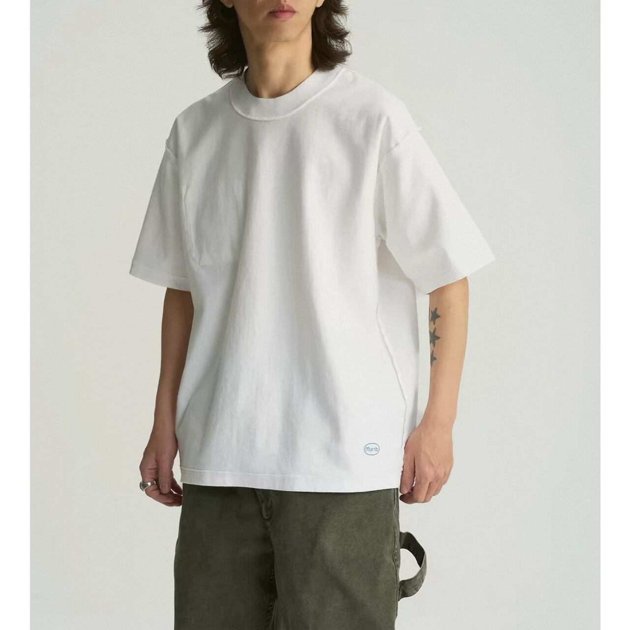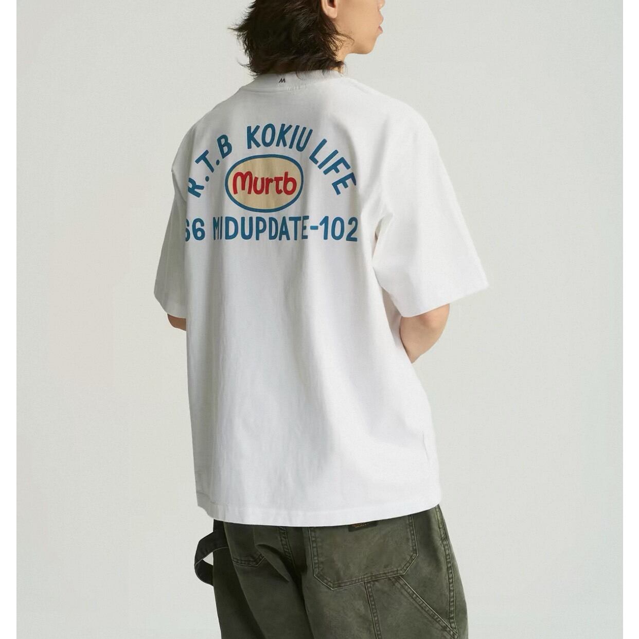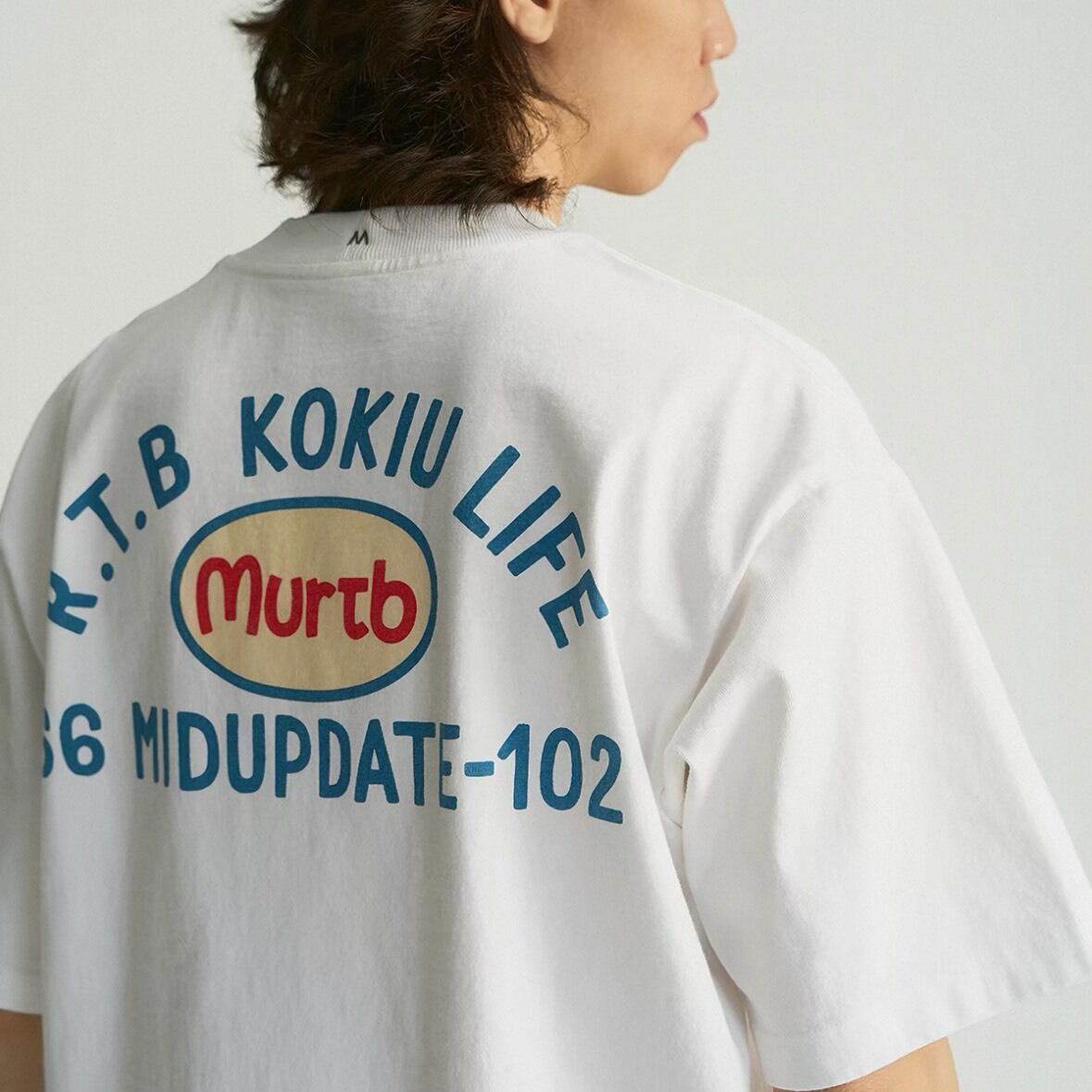 大胆なバックロゴが印象的なグラフィックTシャツ。