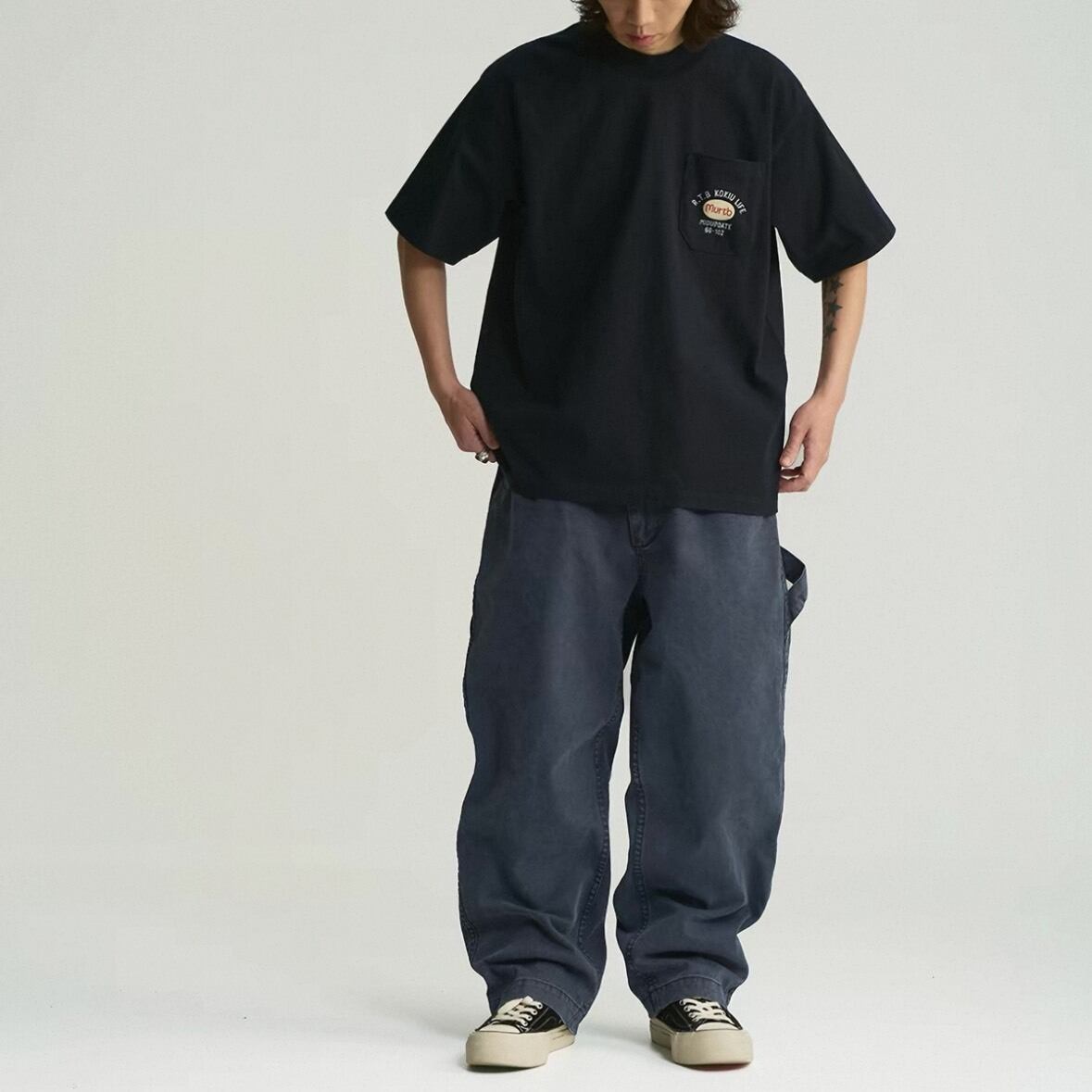 フロントは控えめなワンポイントでバランスを取りつつ、背面でしっかり主張できる一枚。