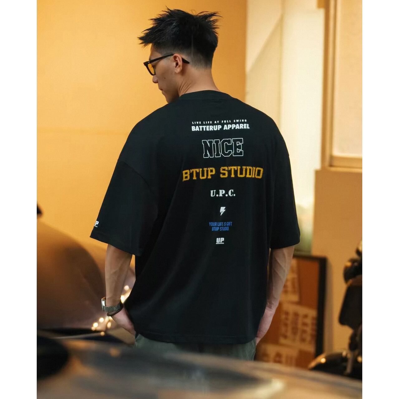 視線を惹きつけるバックプリントが、シンプルな着こなしでもしっかりと個性を演出します。