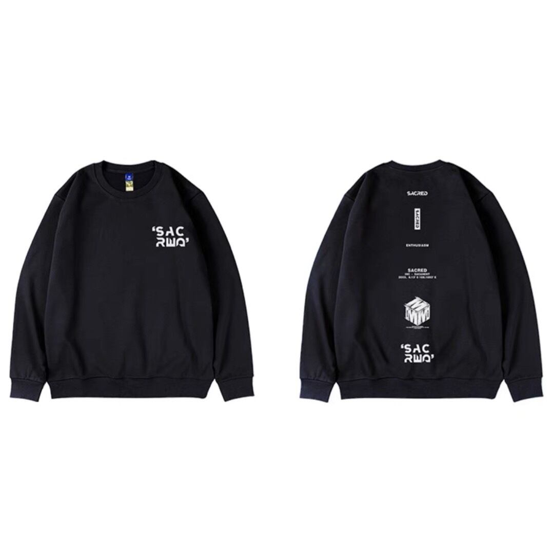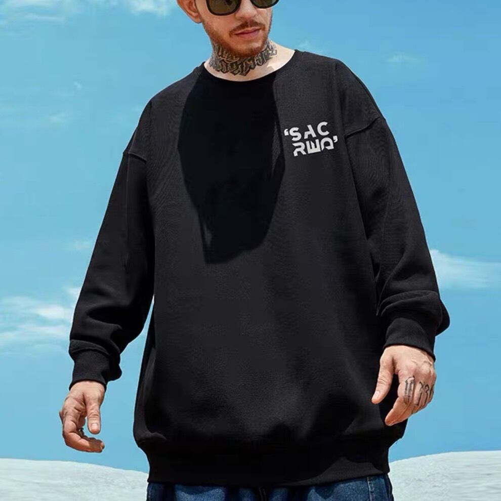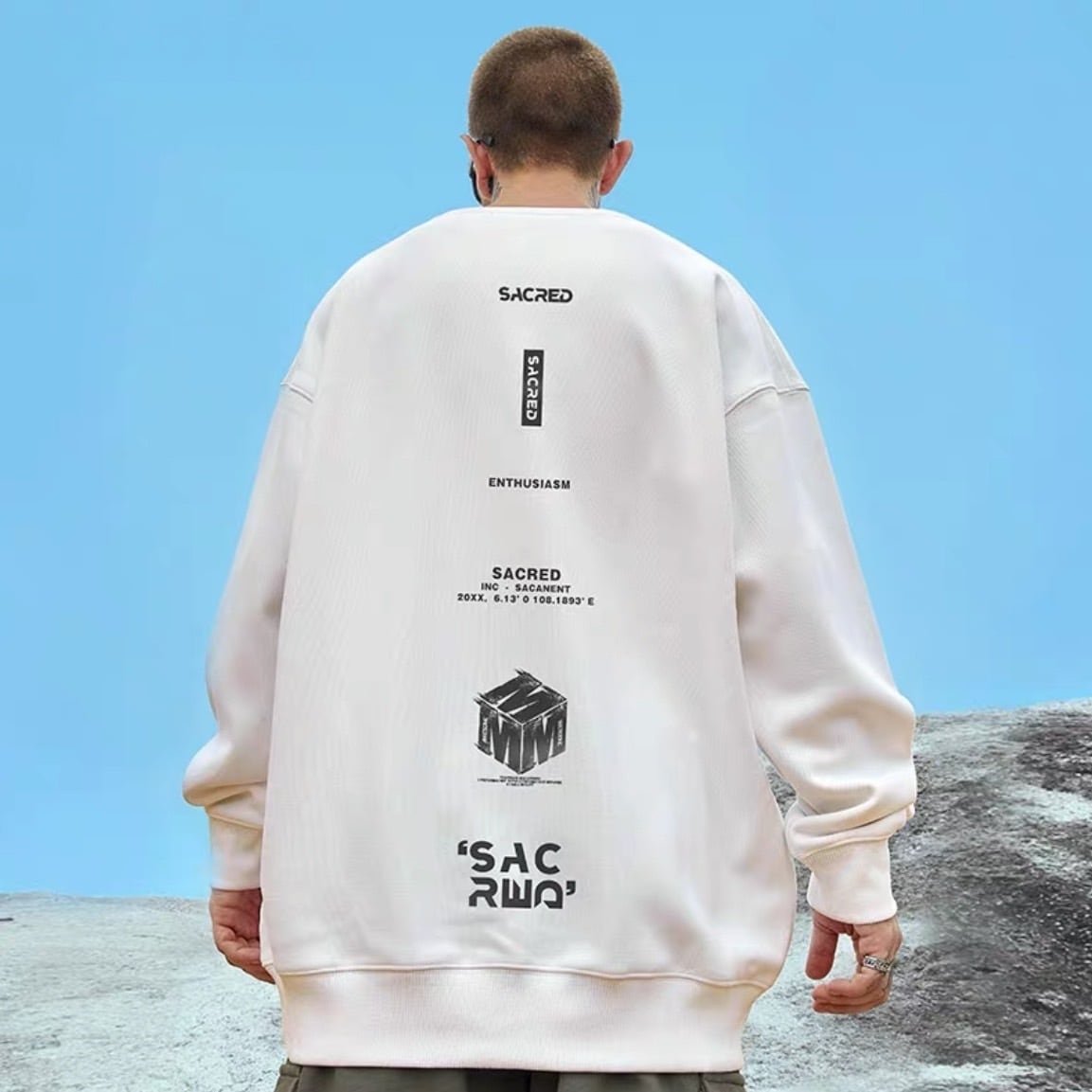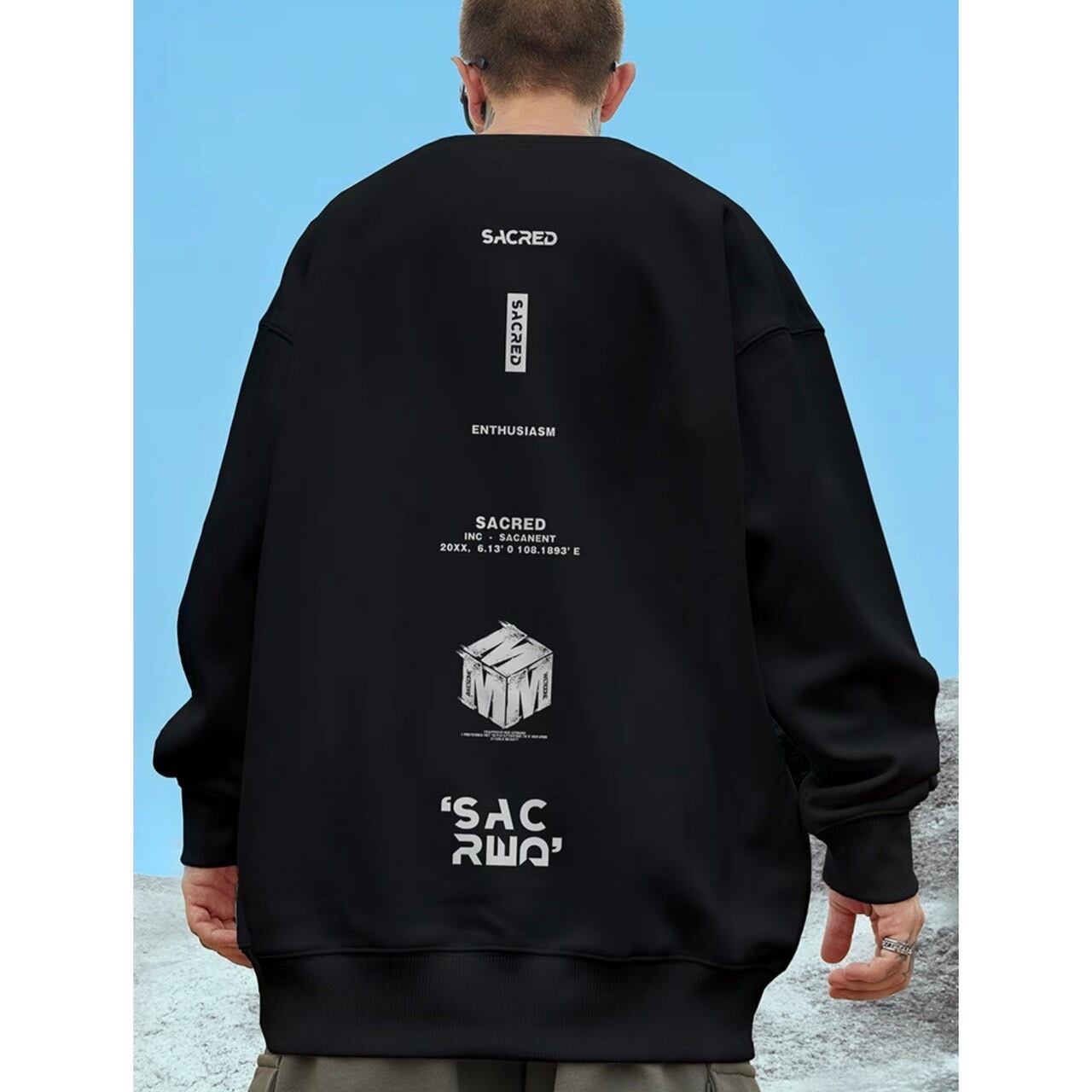 大胆なバックプリントが印象的なオーバーサイズスウェット。