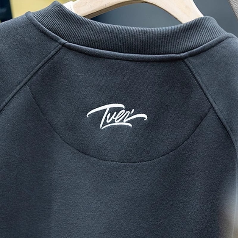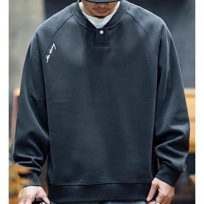 スナップボタン付きのモックネックデザインが印象的なスウェットプルオーバー。