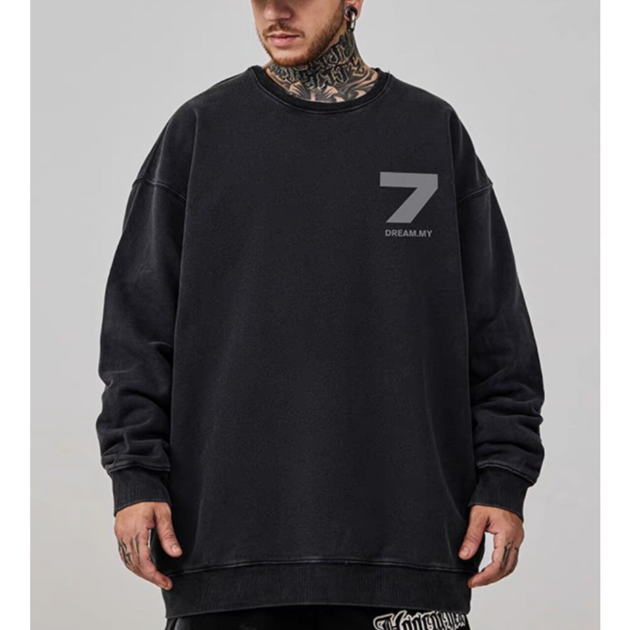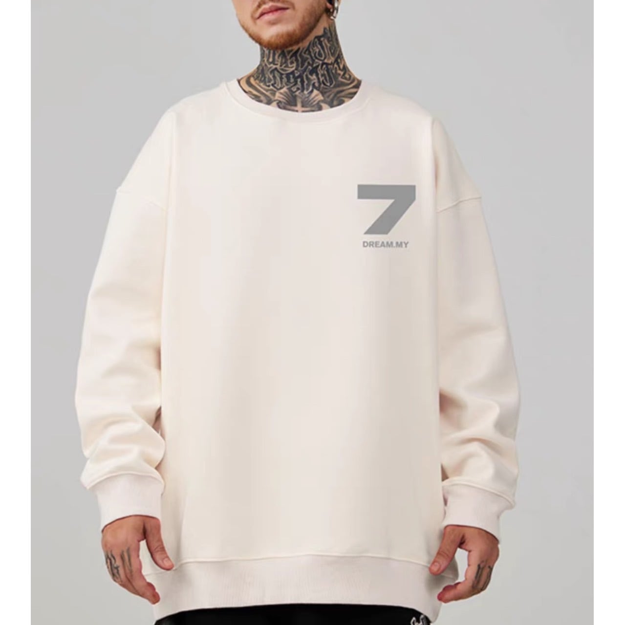 大きなナンバー「7」とロゴが印象的なバックプリントスウェット。